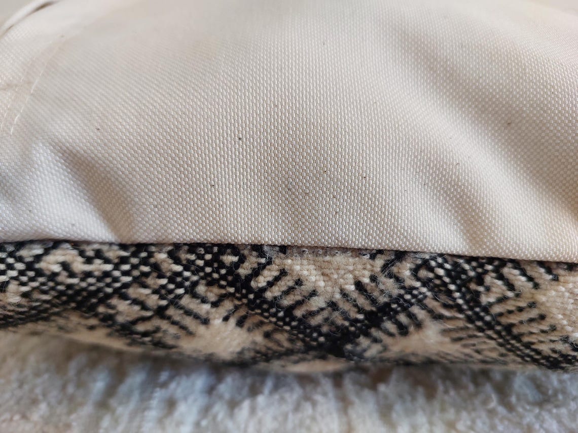 Vintage Moroccan Kilim Pillow , Handmade Berber Floor Cushion, Wool Pillow , In Black And White 14x18 Inches