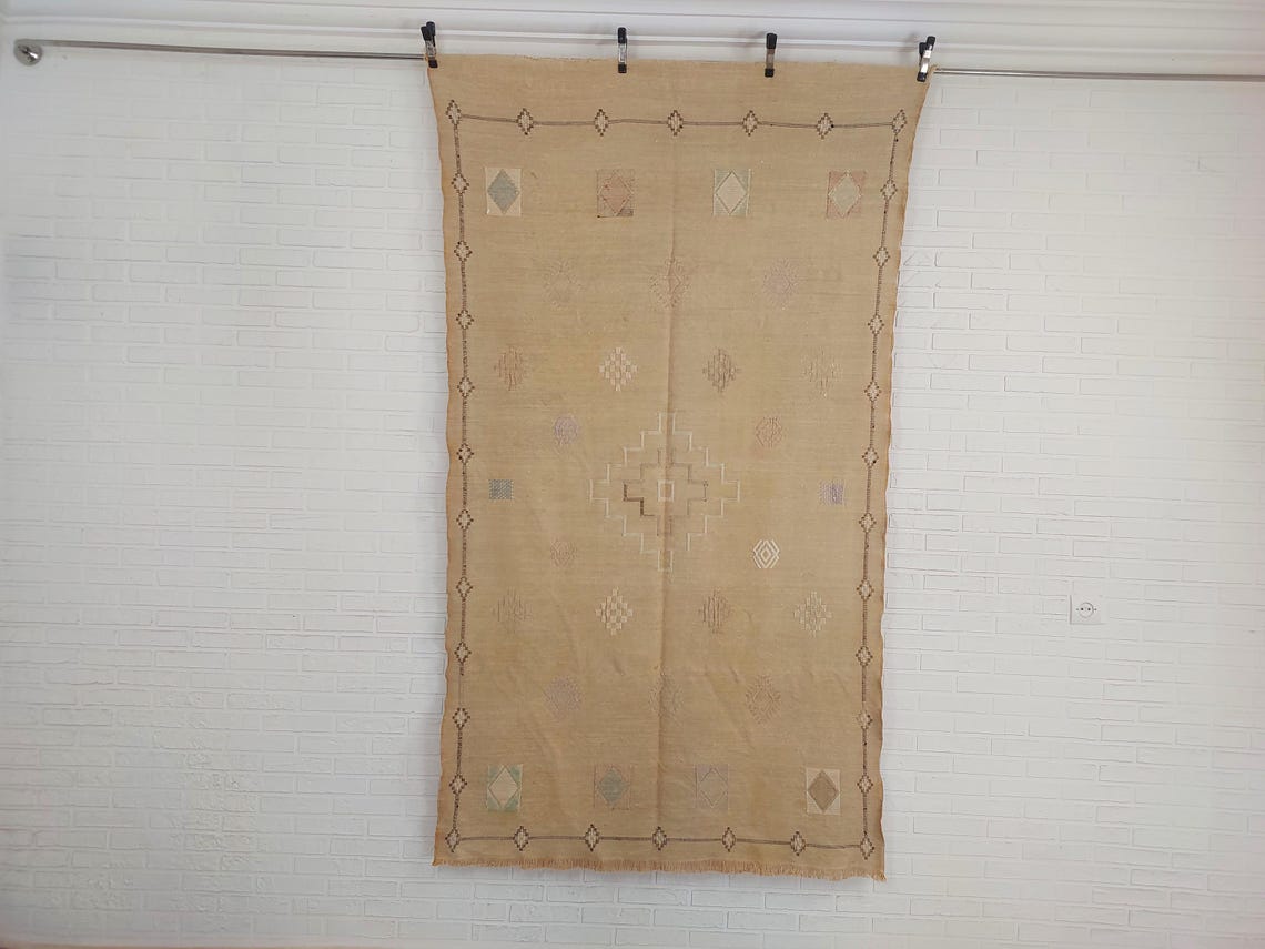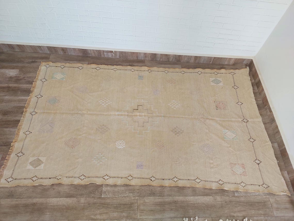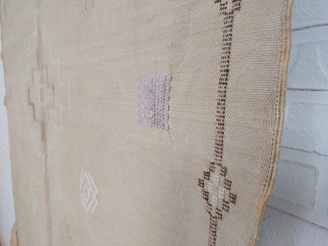 Vintage Moroccan Cactus Silk Rug, Faded Yellow Sabra Rug 4x7 ft, Handmade Boho Carpet, Natural Dye Vintage Textile, Ready to Ship
