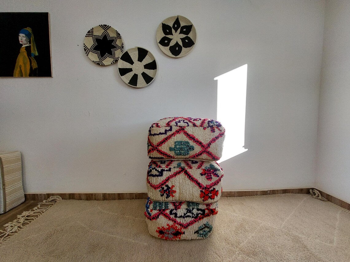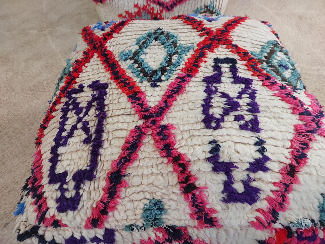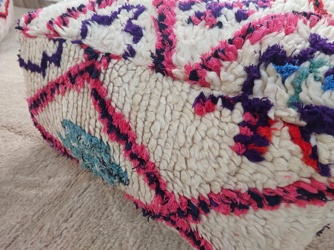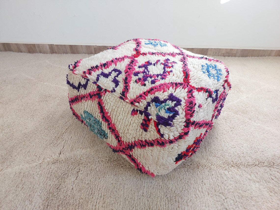 Vintage Moroccan Berber Wool Pouf: Handmade Colorful Floor Cushion Ottoman for Bohemian Decor