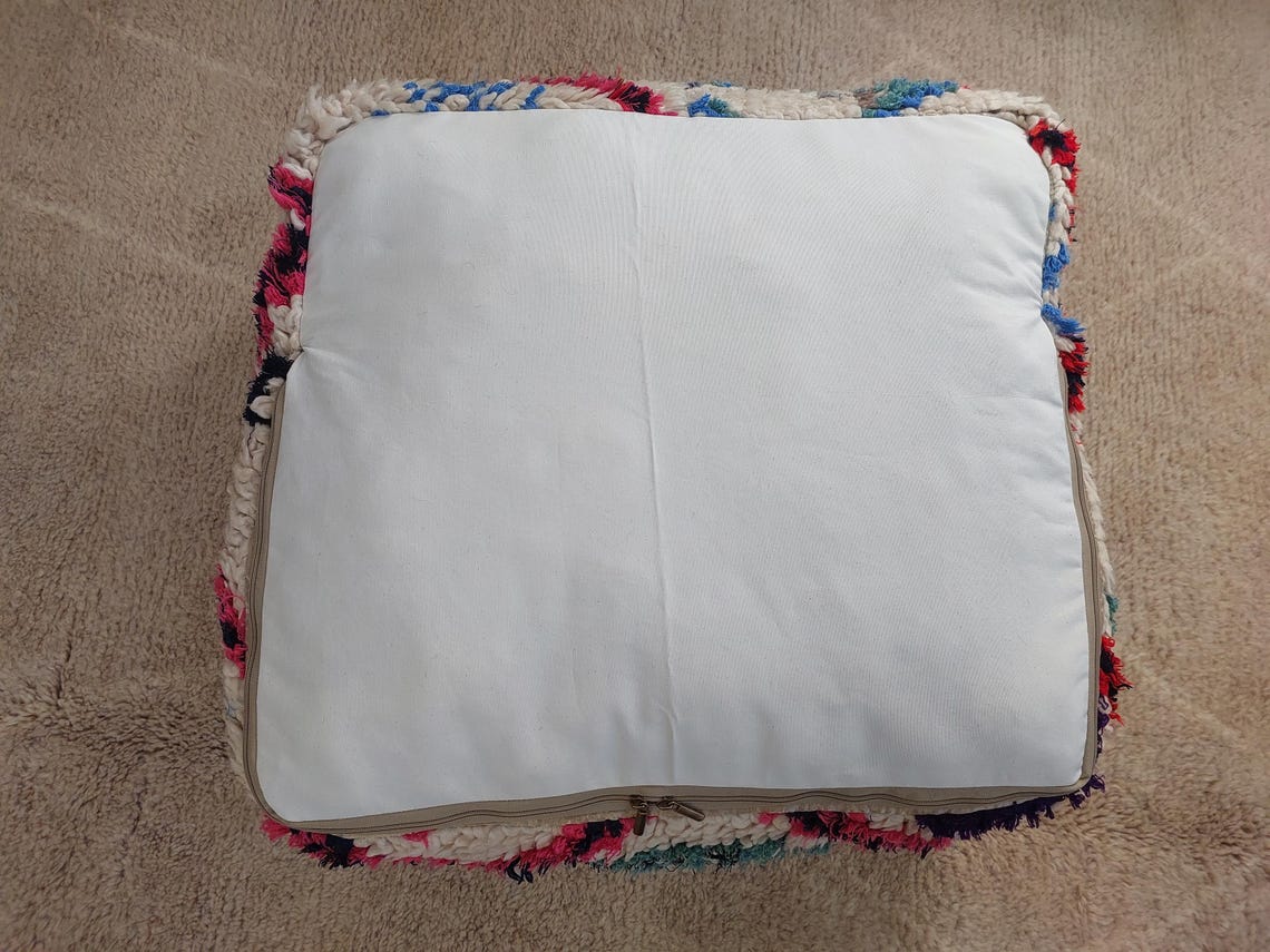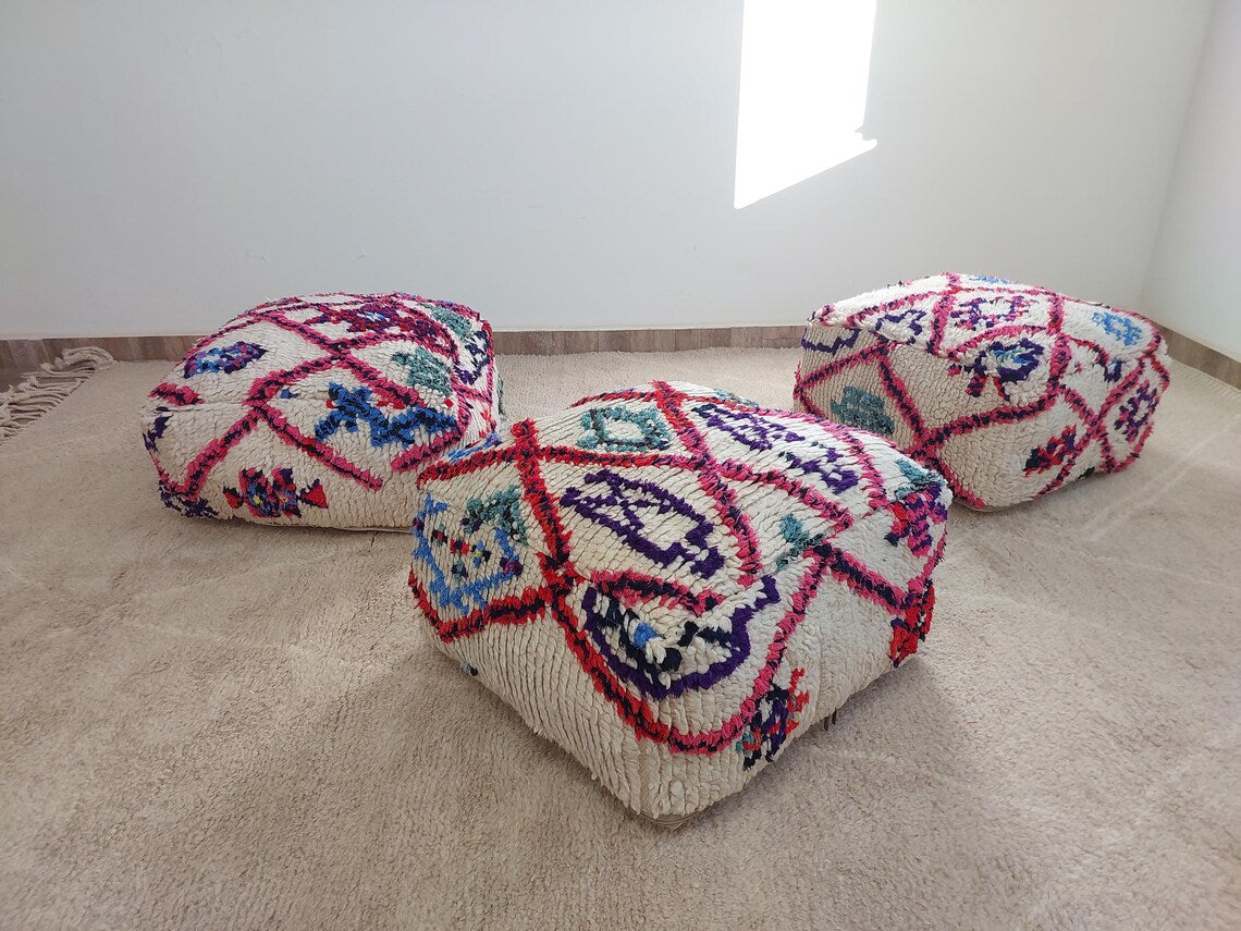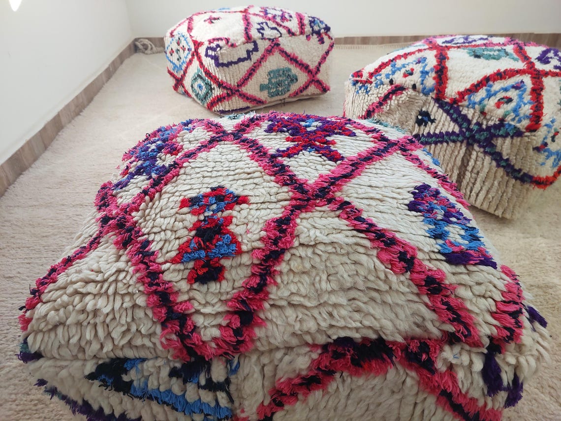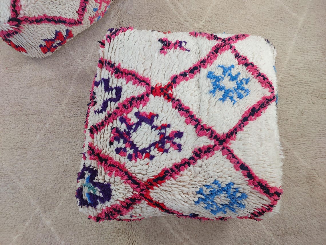 Vintage Moroccan Berber Wool Pouf: Handmade Colorful Floor Cushion Ottoman for Bohemian Decor
