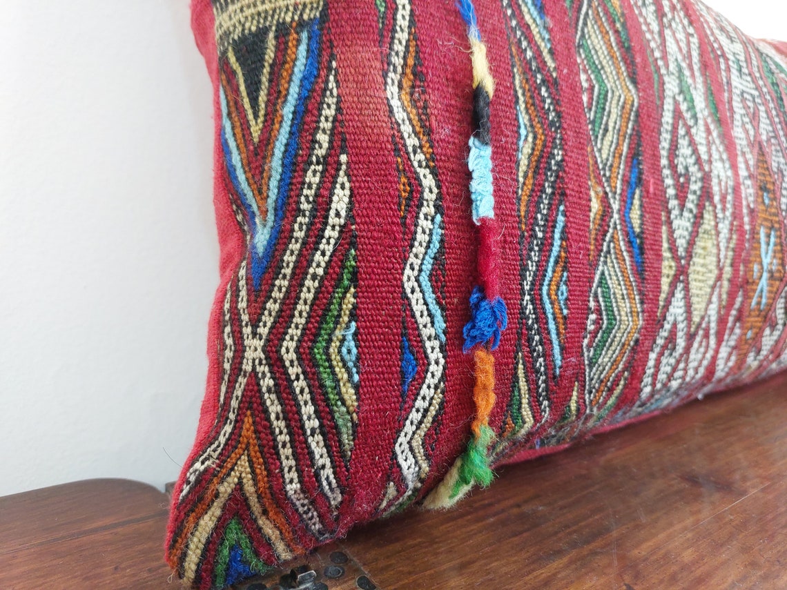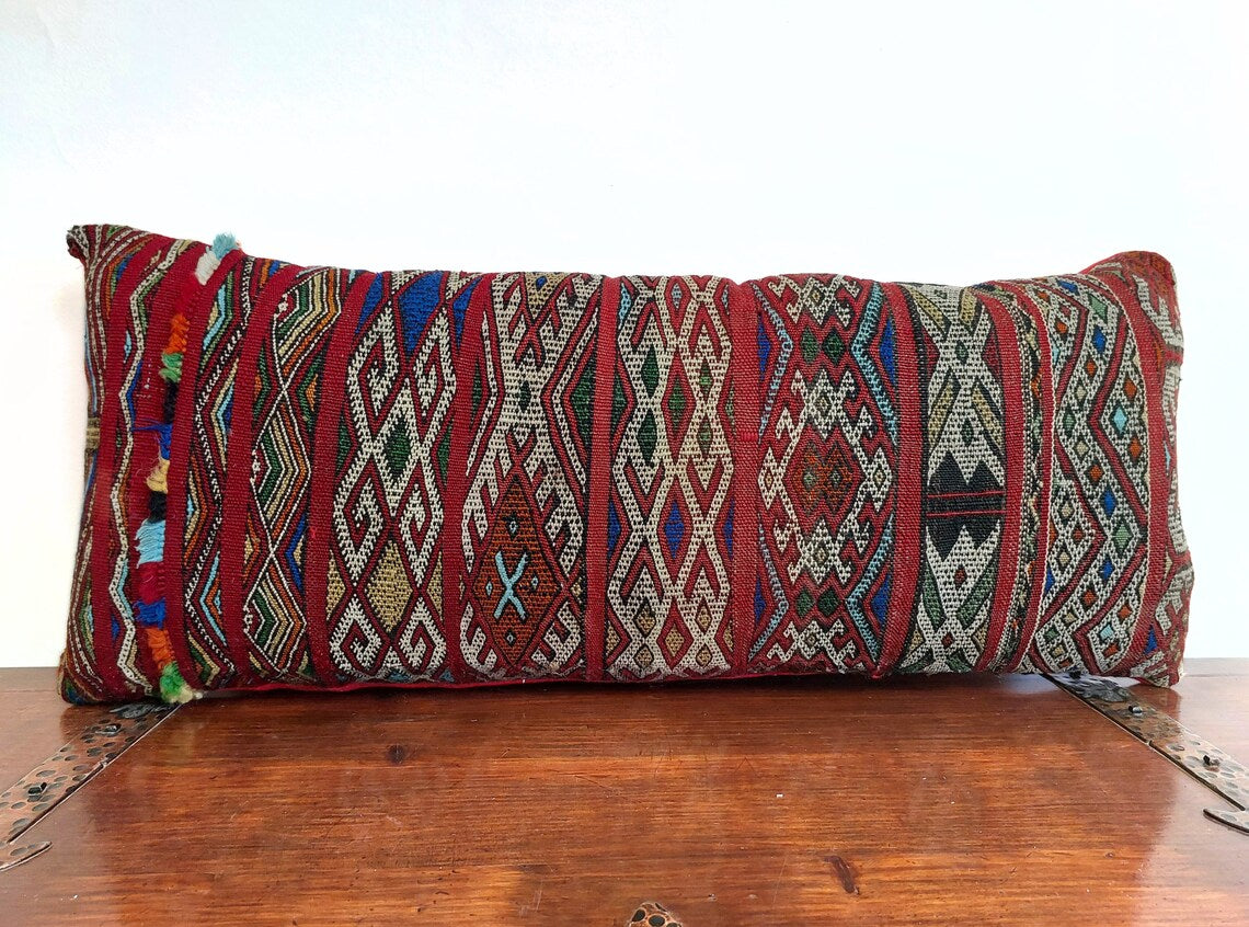 Authentic 13x31 Moroccan Kilim Lumbar Cushion - Vintage Berber Pillow Case