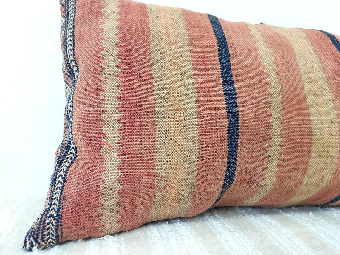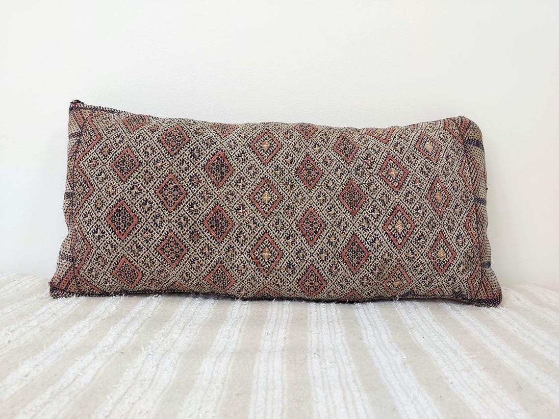Authentic Vintage Zayan Pillow | Moroccan Pillow, Handmade Rectangular Cushion, Berber Pillow Case 1950s