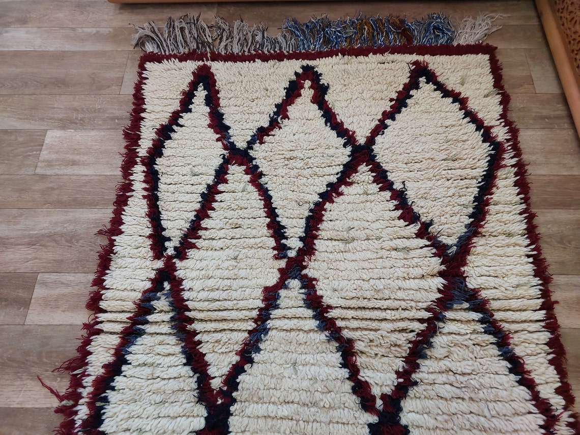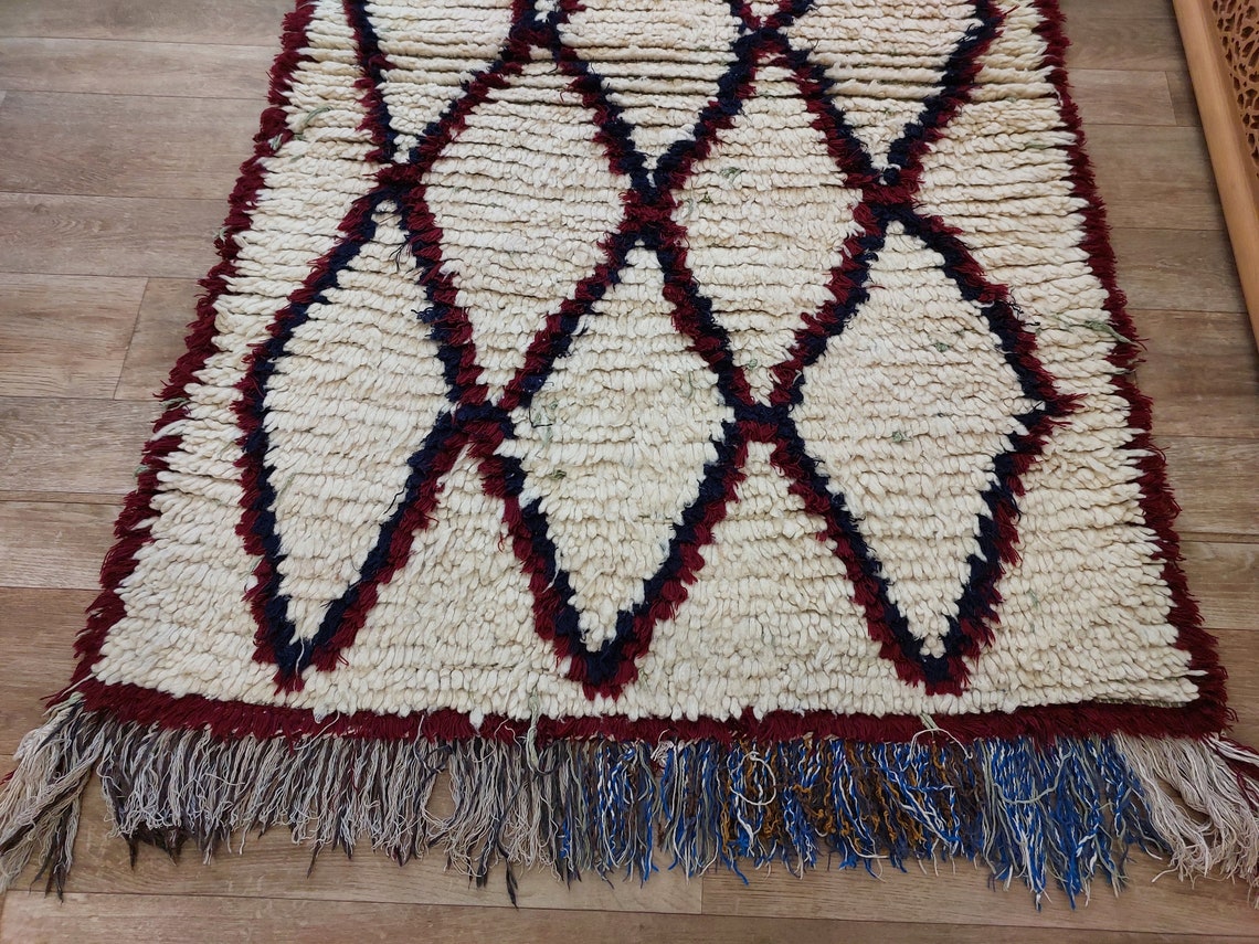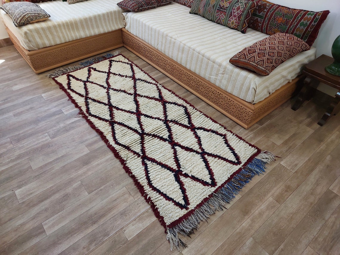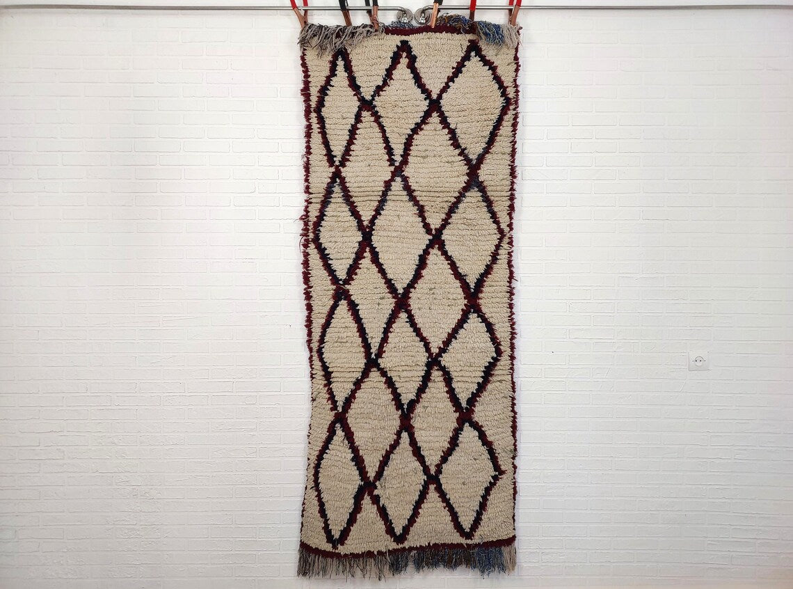 Small Moroccan Rug - Vintage Azilal Runner Rug - Handknotted Bedside Rug - Used Berber Rug .