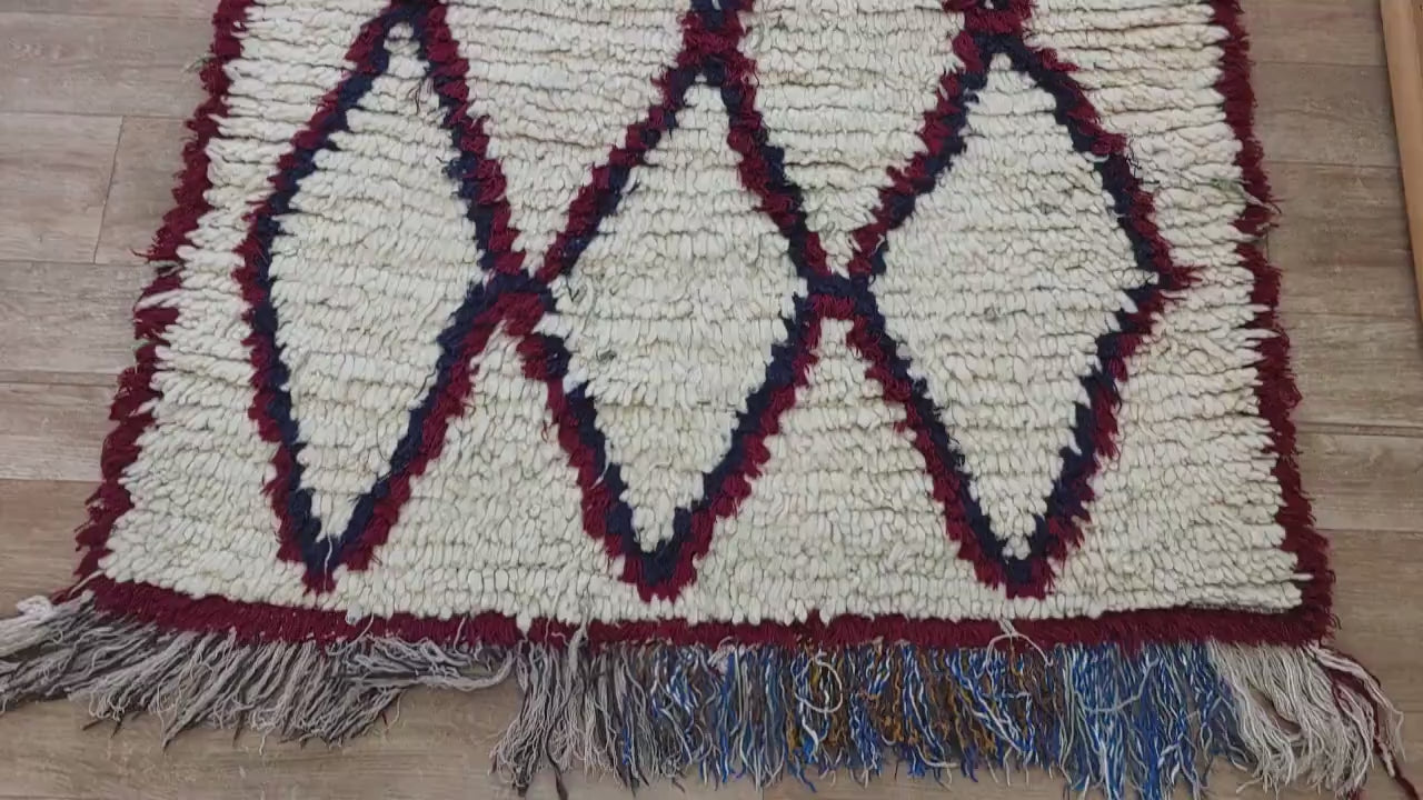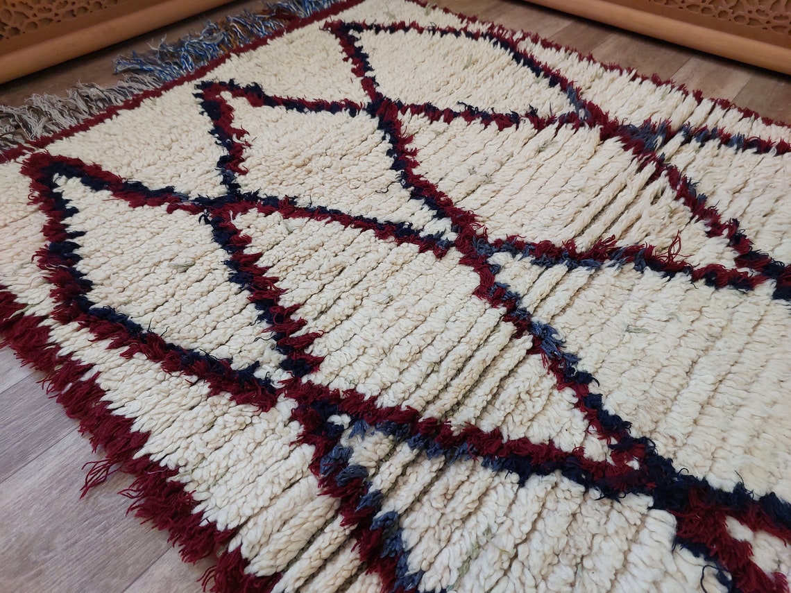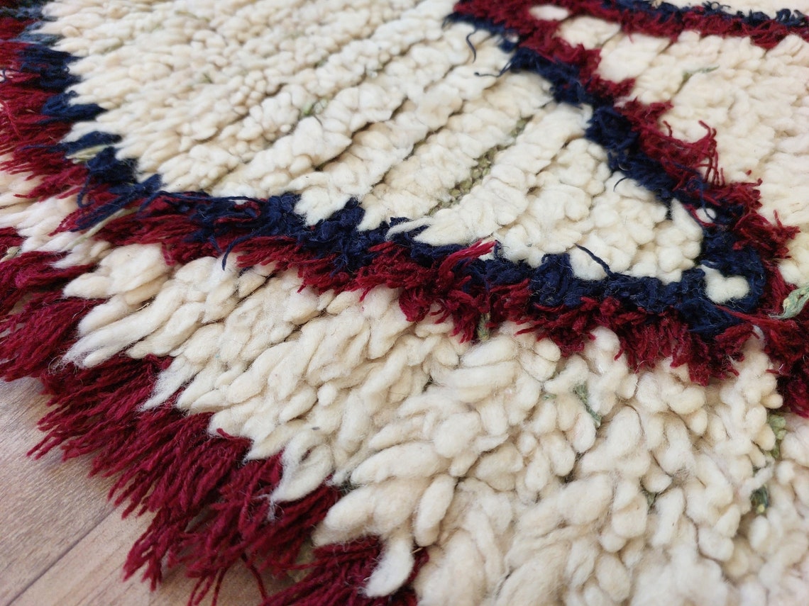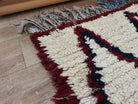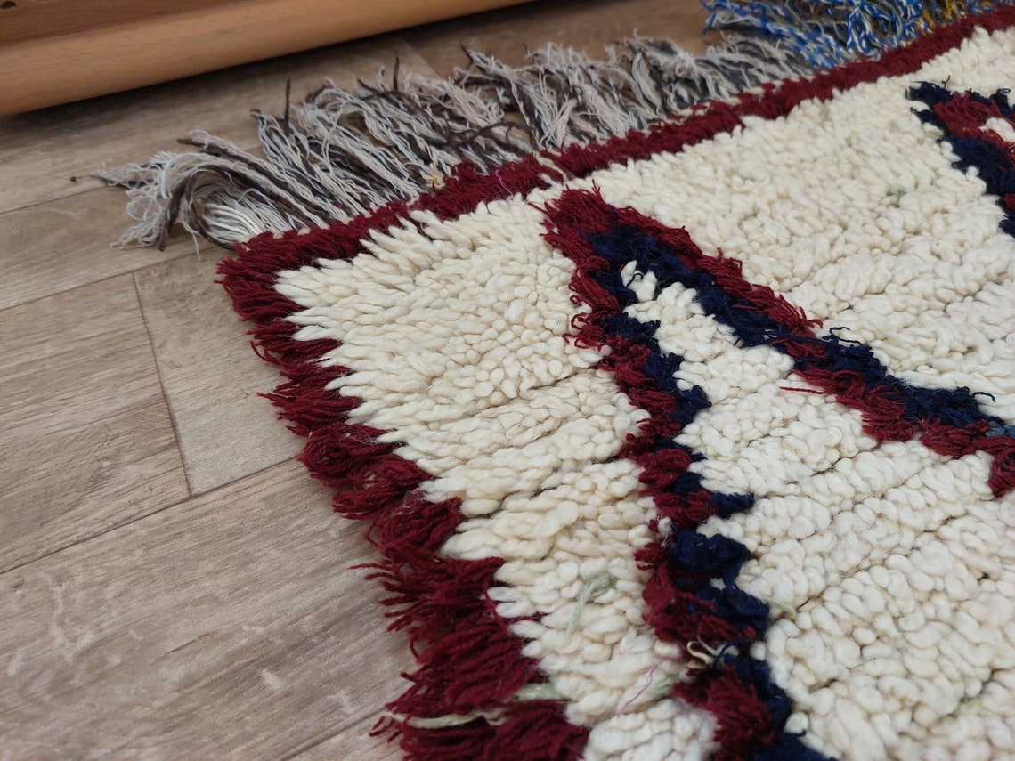 Small Moroccan Rug - Vintage Azilal Runner Rug - Handknotted Bedside Rug - Used Berber Rug .