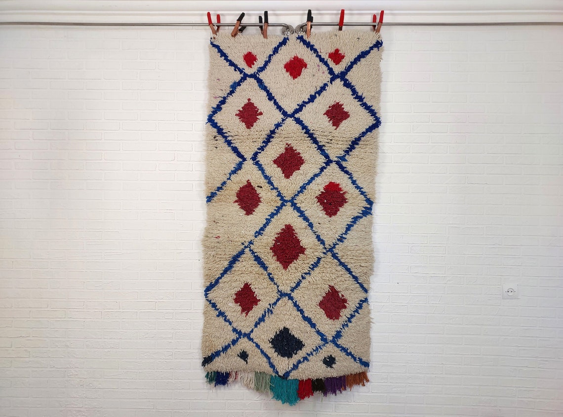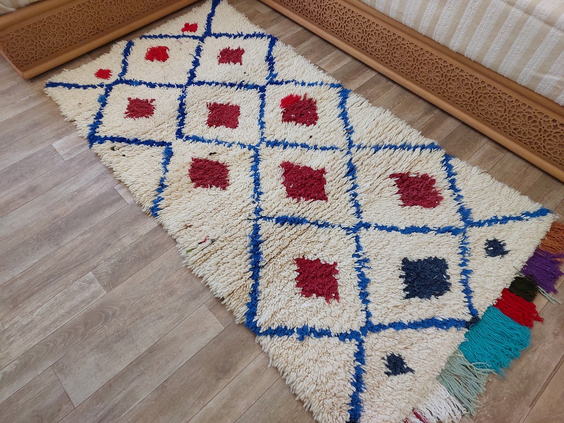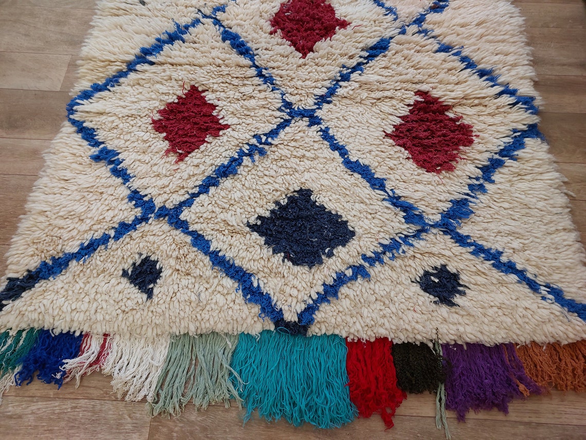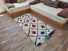 Handmade Beni Ourain Boucherouite Rug — Small, Colorful, Vintage Moroccan Design, Perfect For Bohemian Or Eclectic Interiors