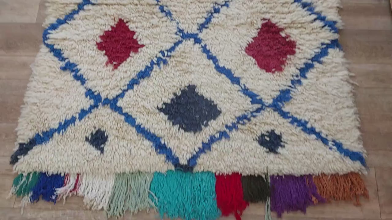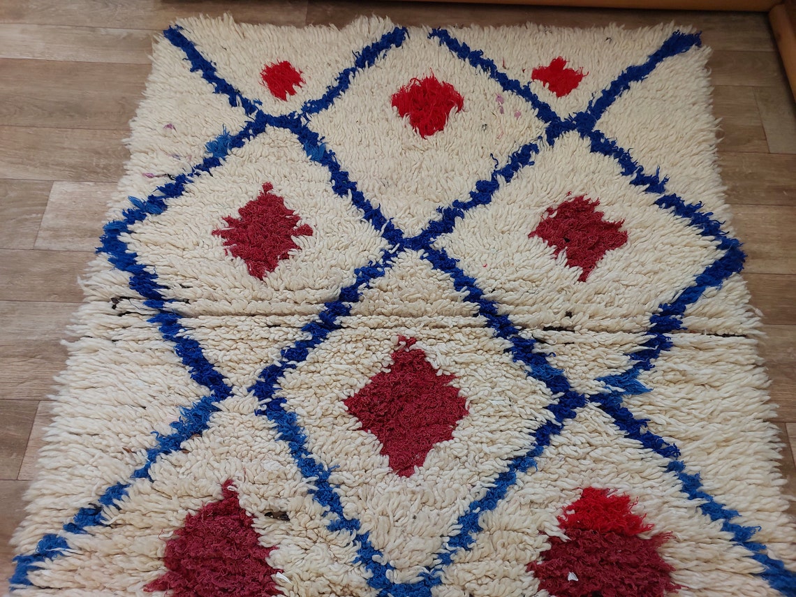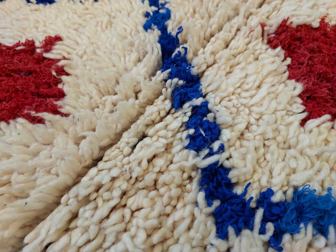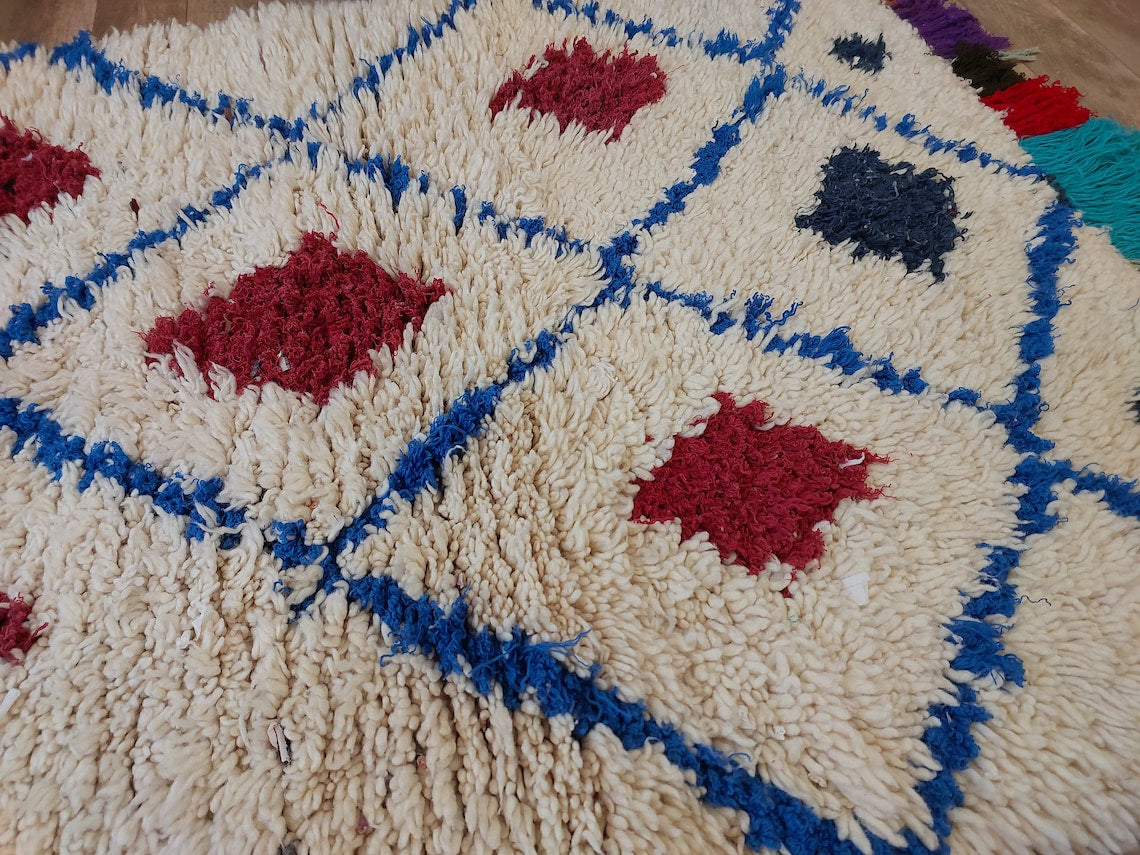 Handmade Beni Ourain Boucherouite Rug — Small, Colorful, Vintage Moroccan Design, Perfect For Bohemian Or Eclectic Interiors