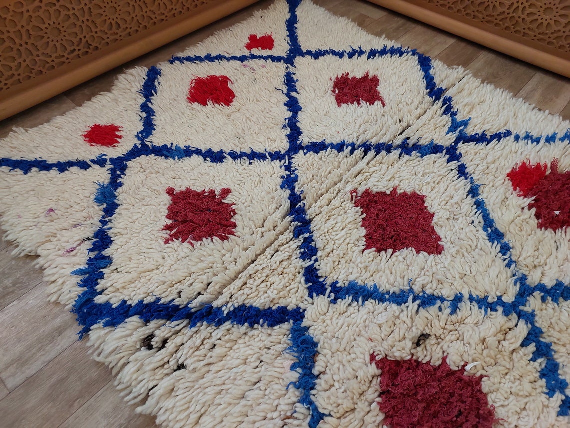Authentic Beni Ourain Small Boucherouite Rug