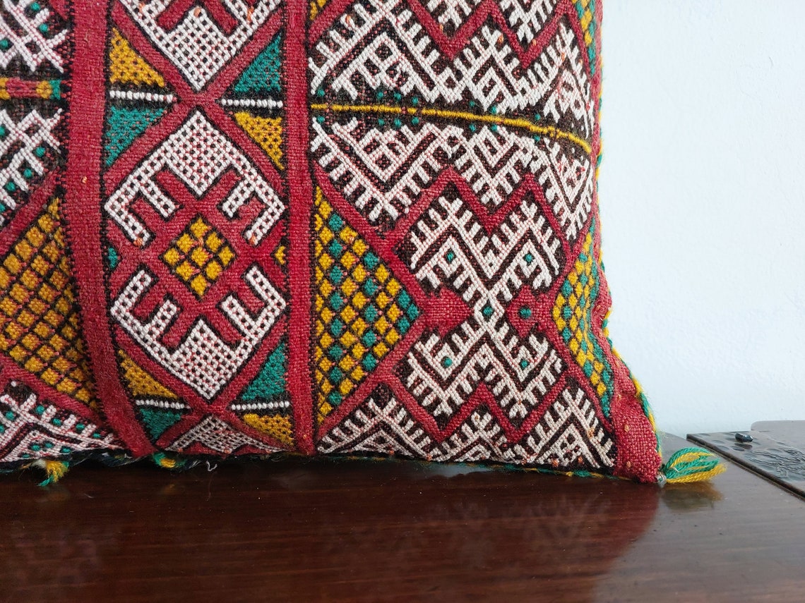 Vintage Berber Pillow - Kilim In One Side - Vintage Velvet In Other Side - Unique Moroccan Pillow - Beni Mguild Pillow - Kilim Pillow