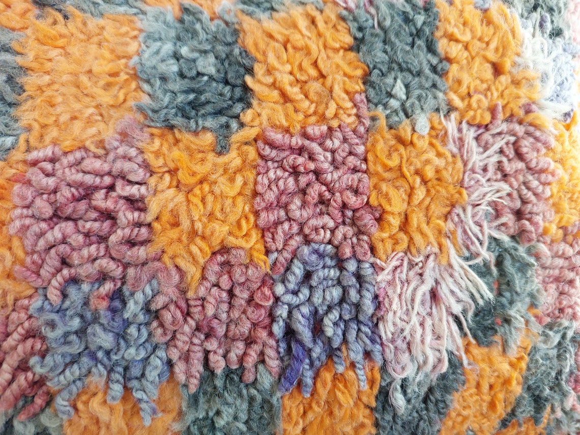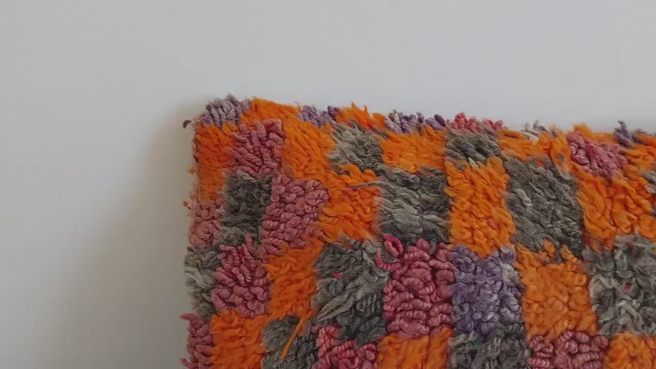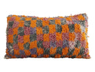 Vintage Handmade Talsint Berber Wool Pillow — Colorful Checkered, Double-Sided, Bohemian Home Accent