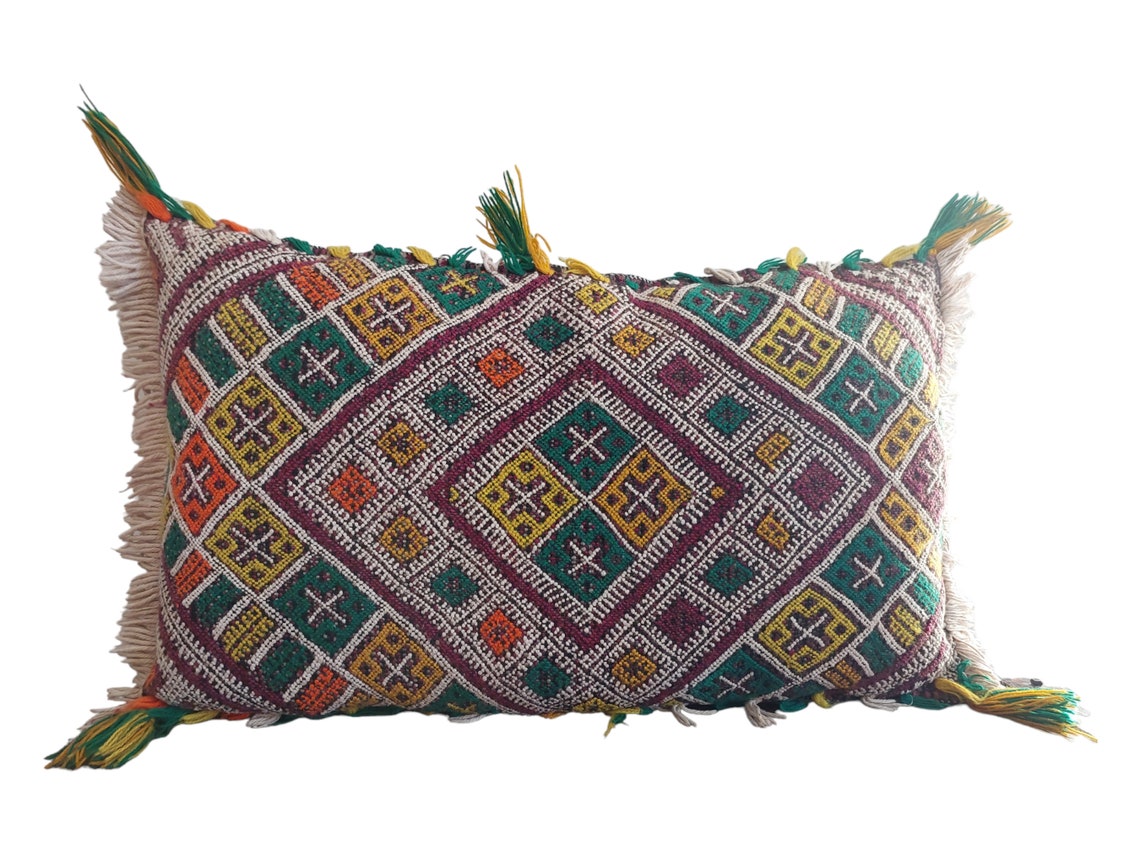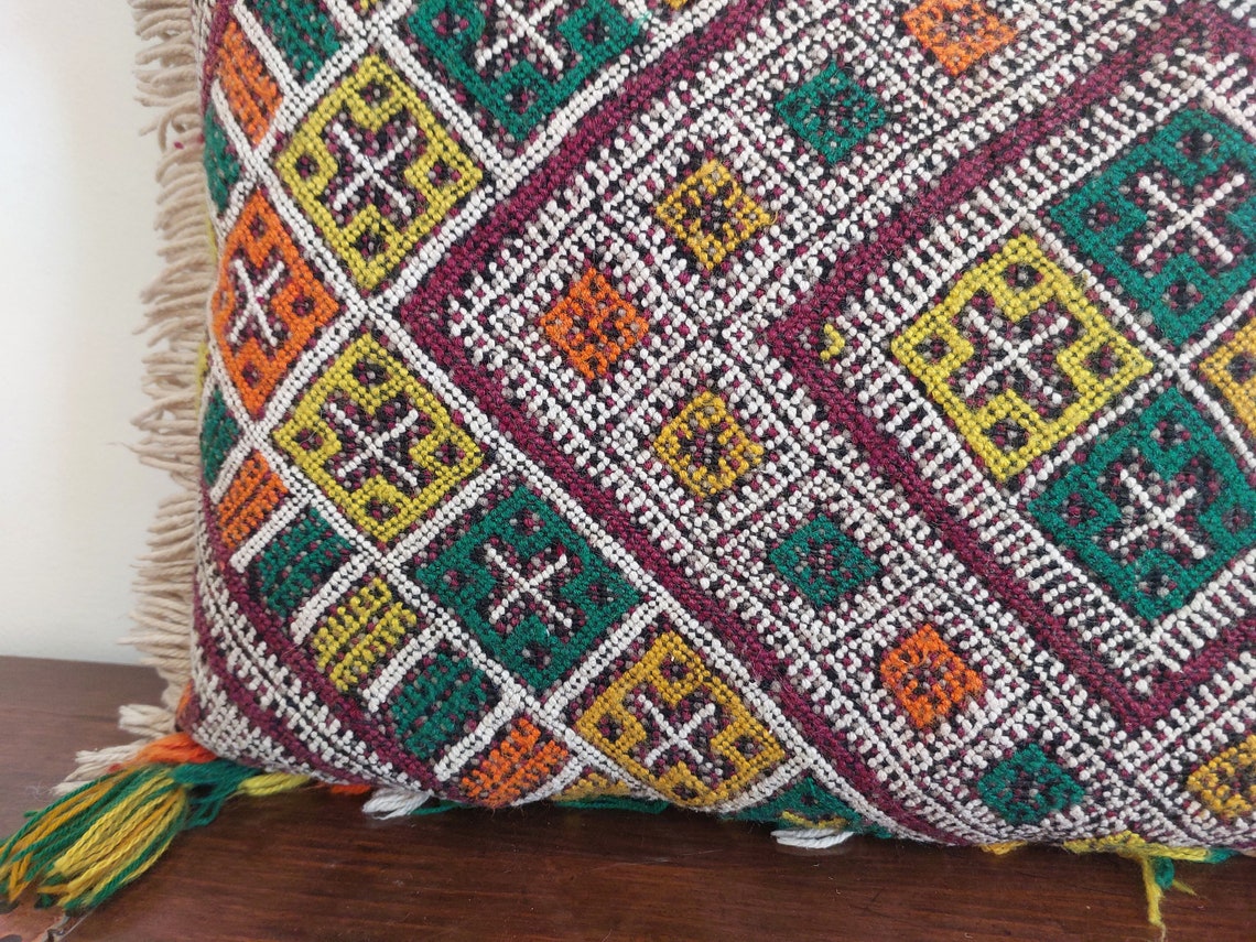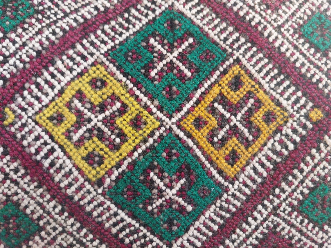 Vintage Handmade Moroccan Pillow — Kilim And Wool, Bohemian, Ethnic, Moroccan