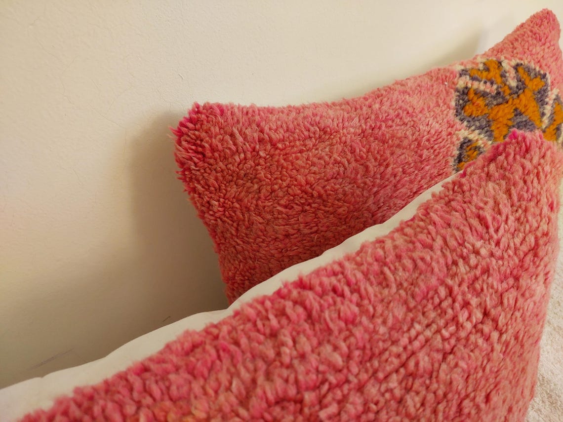 • Handmade Moroccan Pink Pillow Cover From Boujaad Tribe