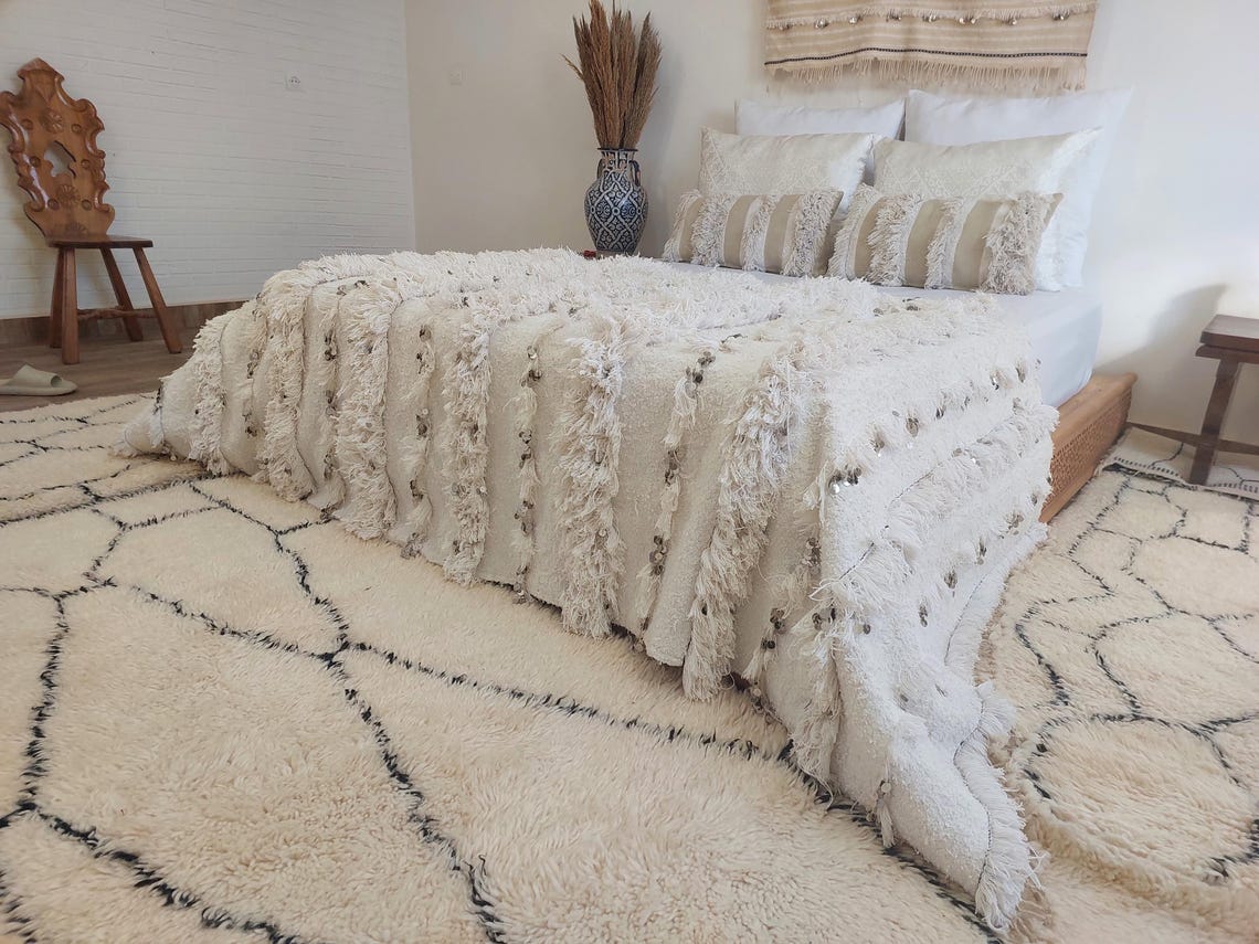 • “White Heart” Vintage Moroccan Wedding Blanket