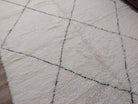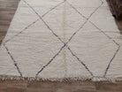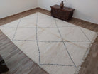Hand-Knotted Beni Ourain Rug With Classic White Lattice Pattern — Perfect For Bohemian, Minimalist, Or Cozy Terrace Interiors.
