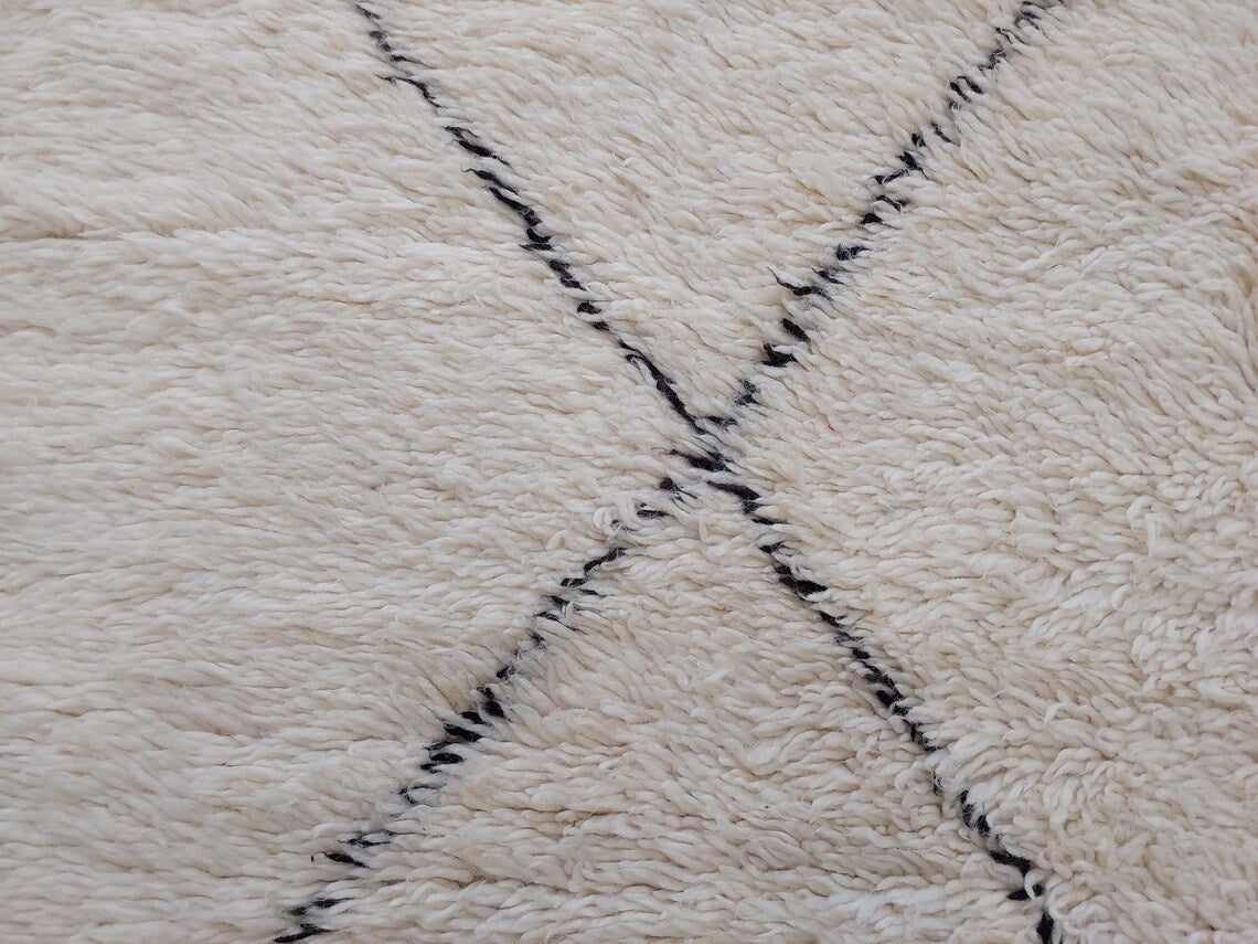 This hand-knotted Beni Ourain rug brings the luxurious essence of Moroccan decor into your home. Crafted from high-quality lambswool, it offers a plush, comfortable texture and a timeless white lattice pattern. Ideal for small spaces, cozy corners, terraces, or bohemian-inspired interiors, it combines style, tradition, and artisanal craftsmanship. Tassels can be customized or removed, and the rug is professionally cleaned before shipping.