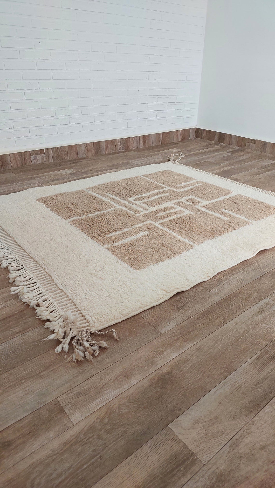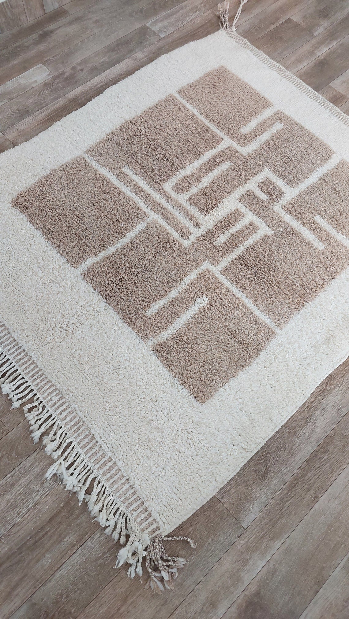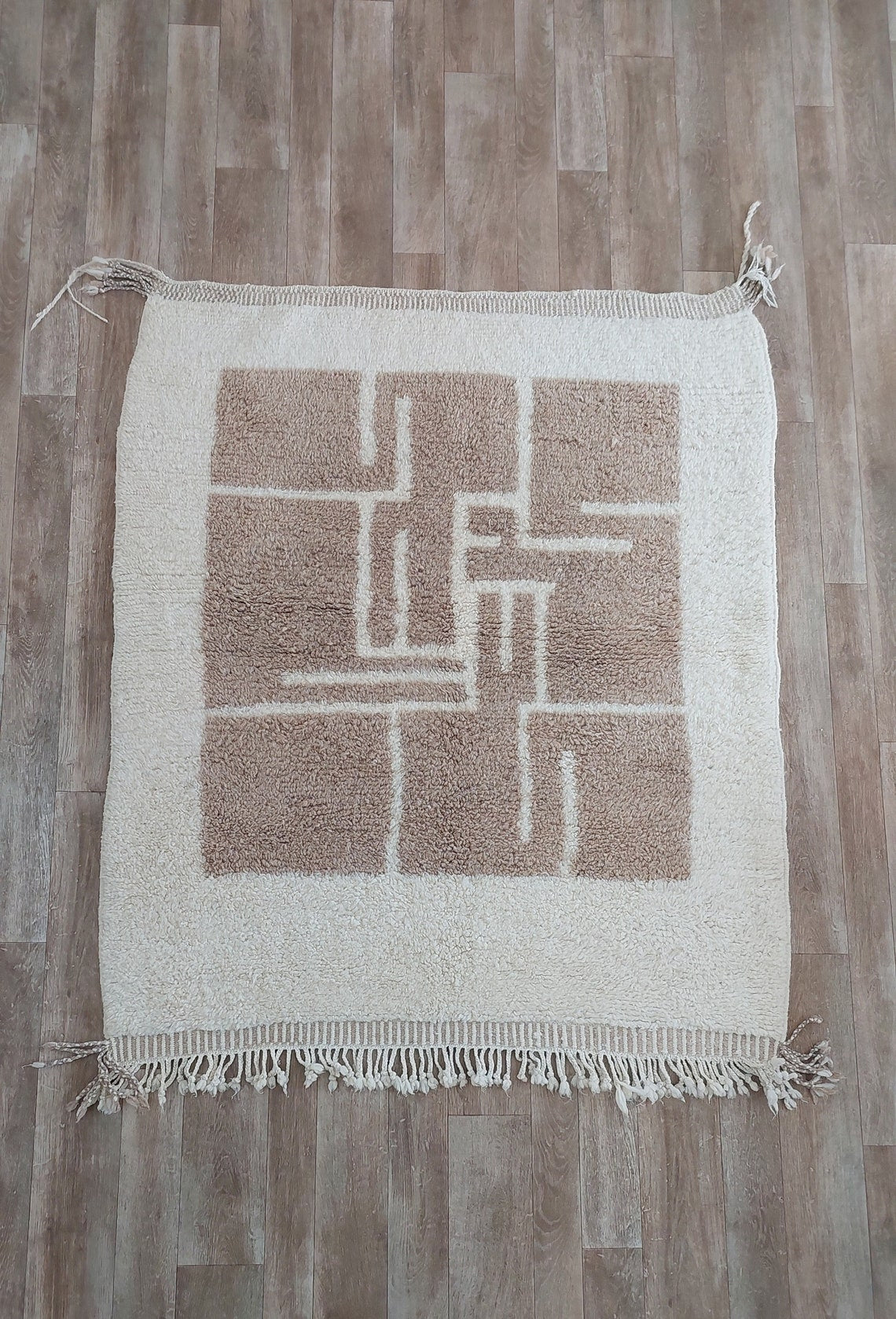 Luxurious Modern Moroccan Beni Mrirt Style Rug - neutral berber rug - Plush Pile Contemporary Art Decor for Living Room