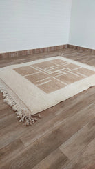 Experience the harmonious blend of modern minimalism and Art Deco elegance with this high-quality Moroccan rug. Featuring a soft neutral palette and intricate abstract design, this piece brings refinement and timeless artistry to any space.
