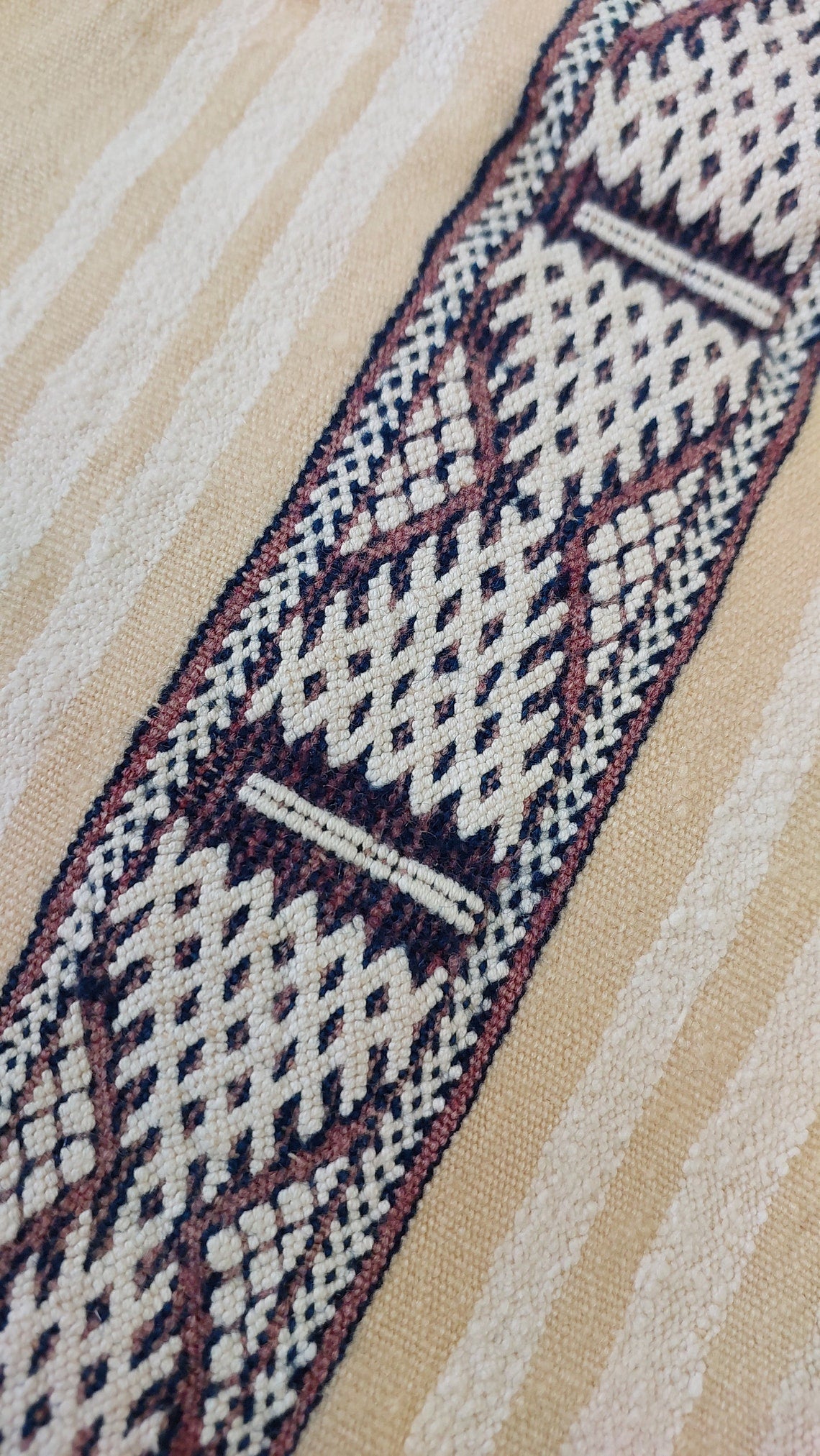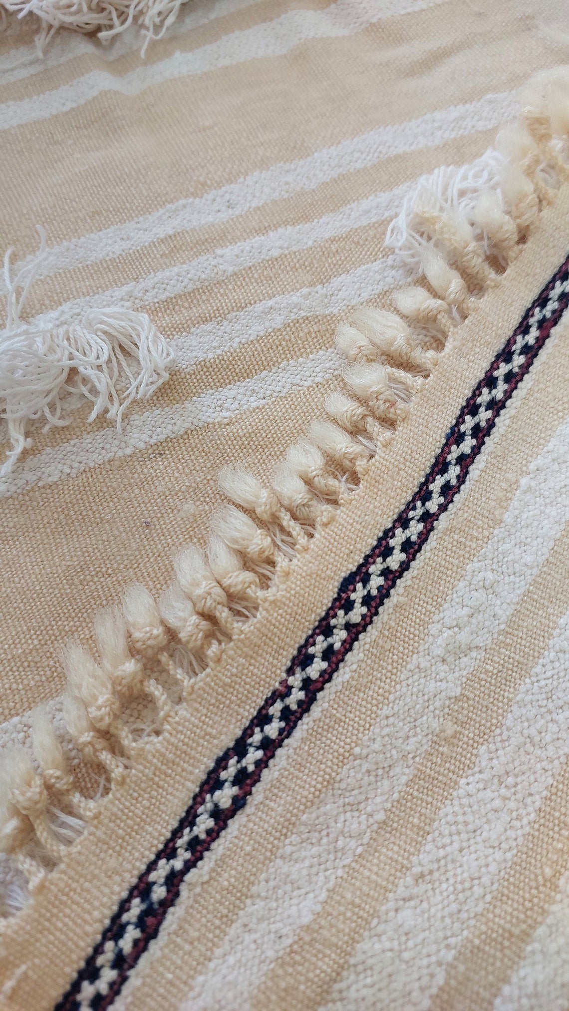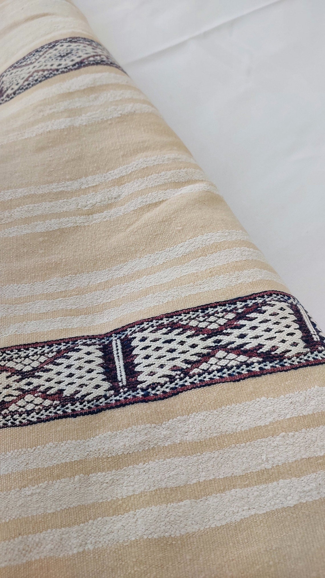 Vintage Moroccan Handira — Ivory & Cream Palette, Wool & Cotton Blend, Traditional Berber Wedding Blanket Without Sequins