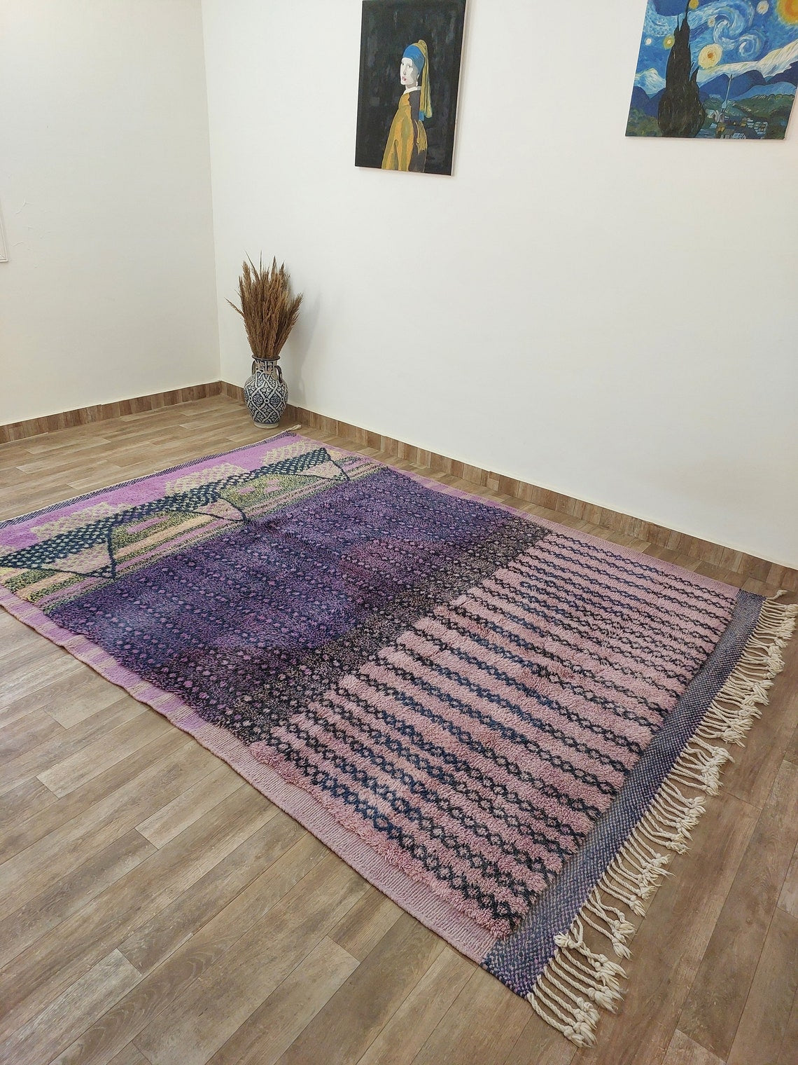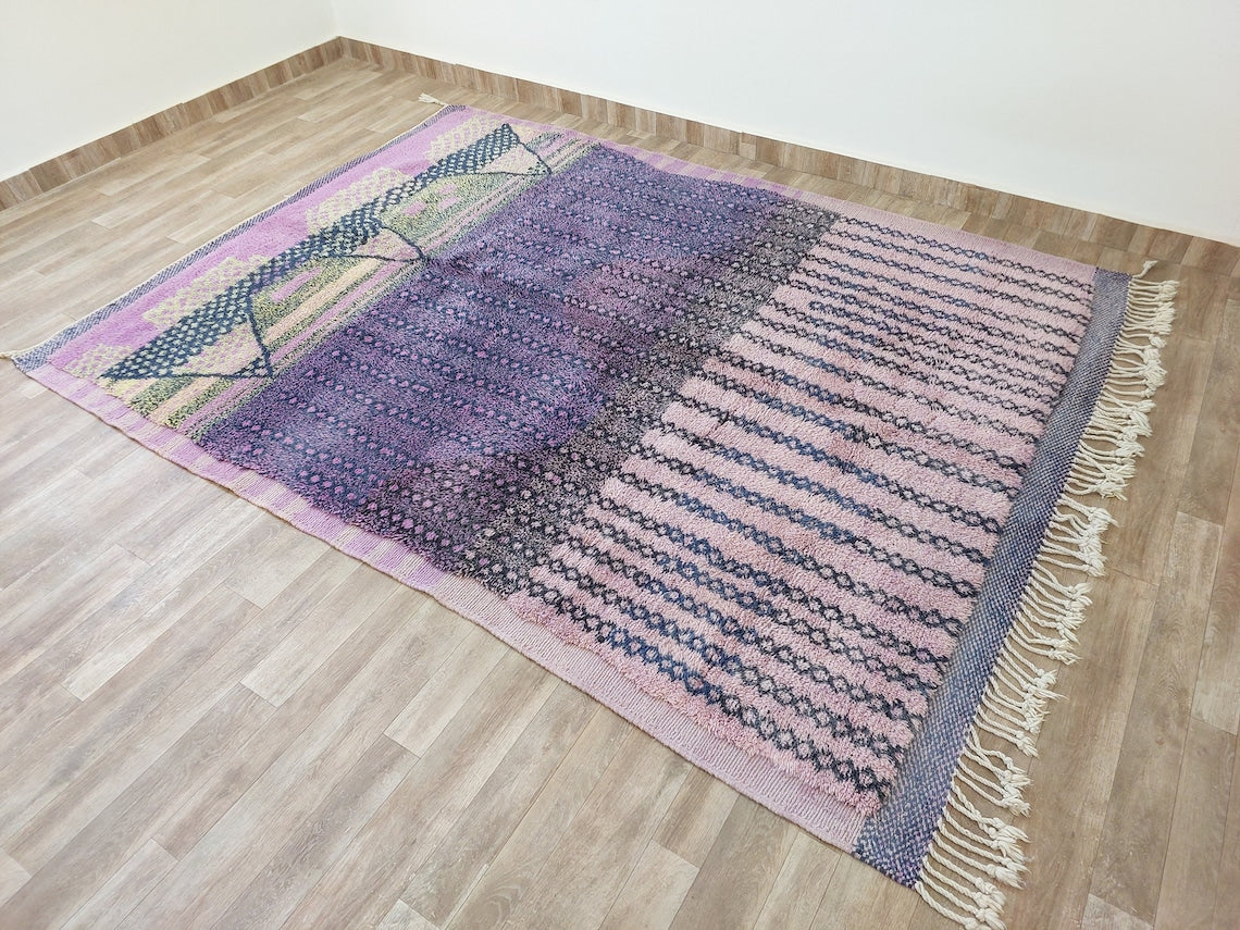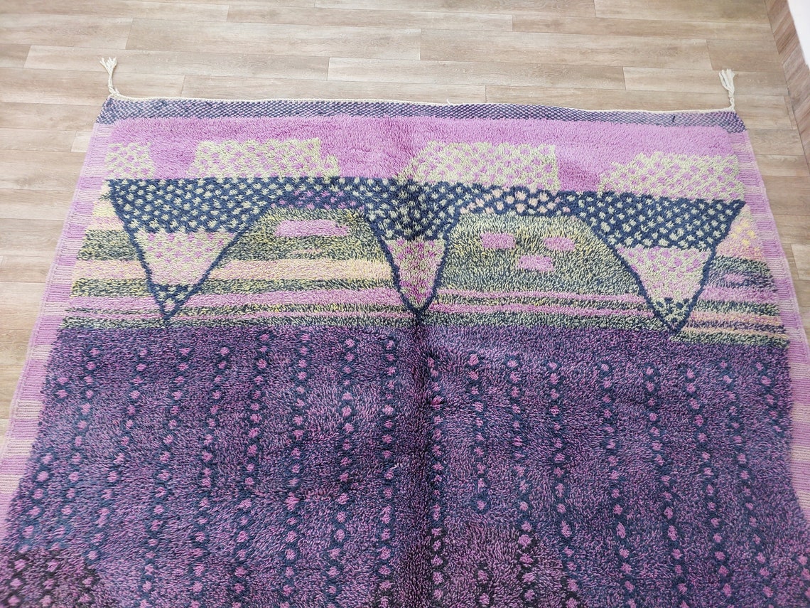Elevate your living space with the unmatched elegance of this handwoven Beni Mrirt Moroccan rug. Renowned for exceptional quality and plush texture, this contemporary art piece perfectly blends tradition with modern design.