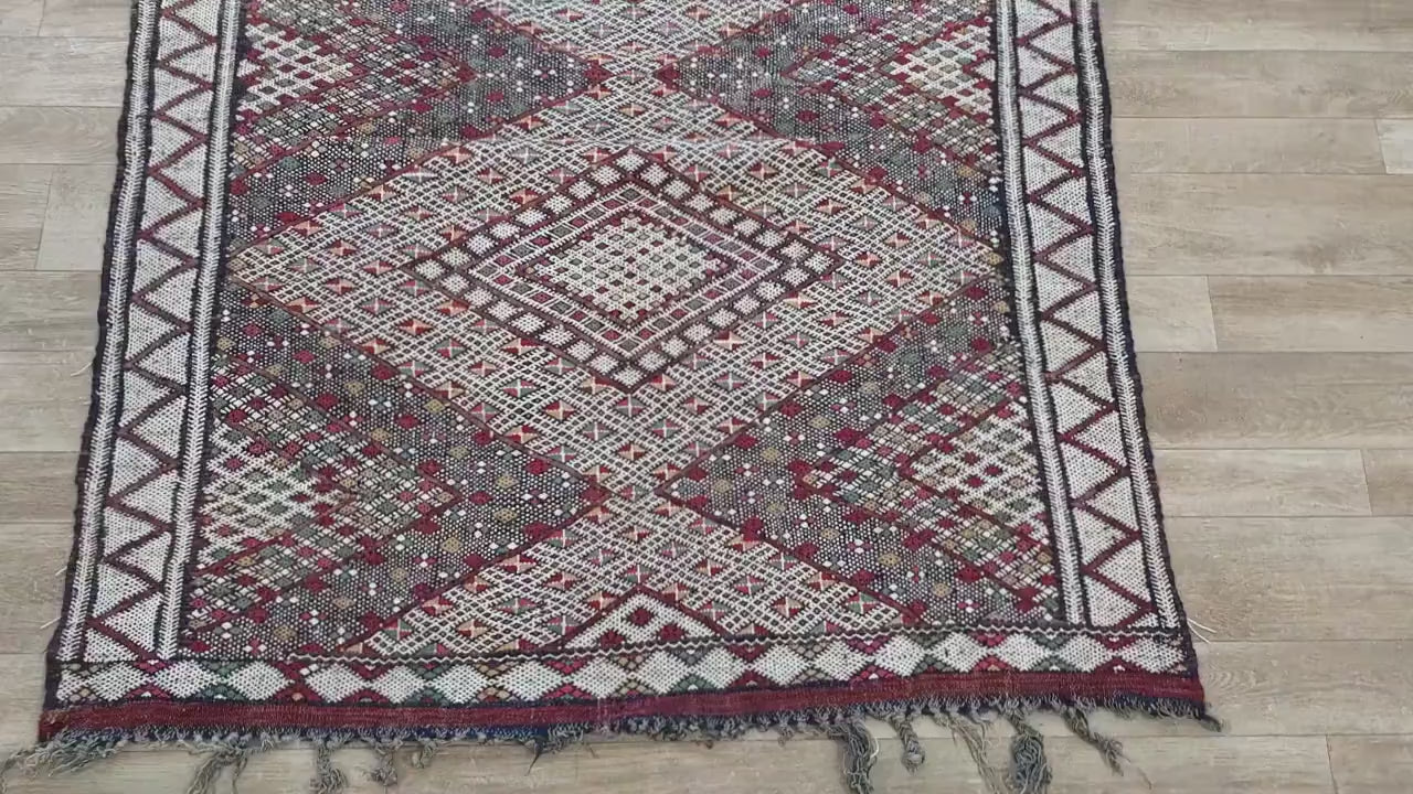 Rare Authentic Berber Beni Mguild Runner Rug: Handwoven Moroccan Kilim Tarahalt Artisan Carpet 4'1"x12'5"