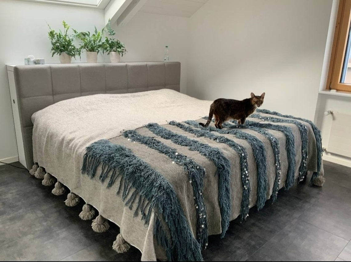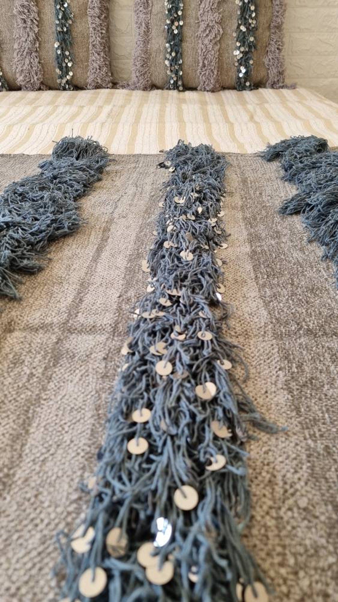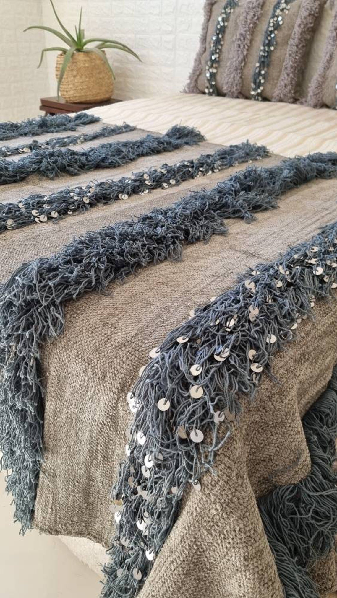 Elegant Moroccan Handira Wedding Blanket - Gray Berber Handwoven Decor for Bedroom