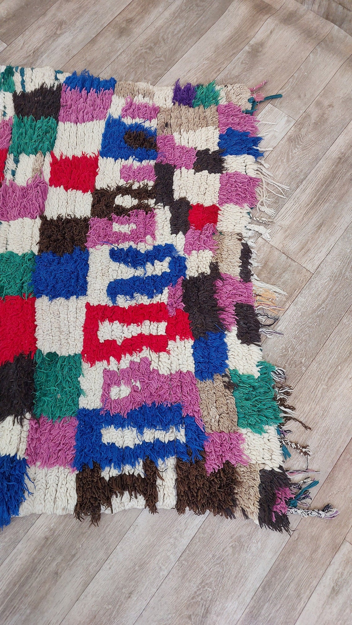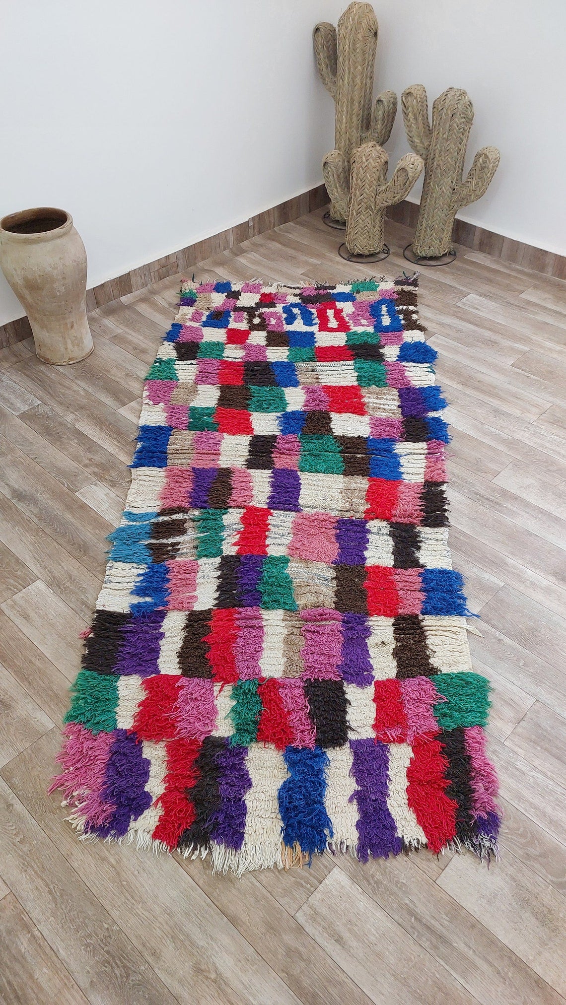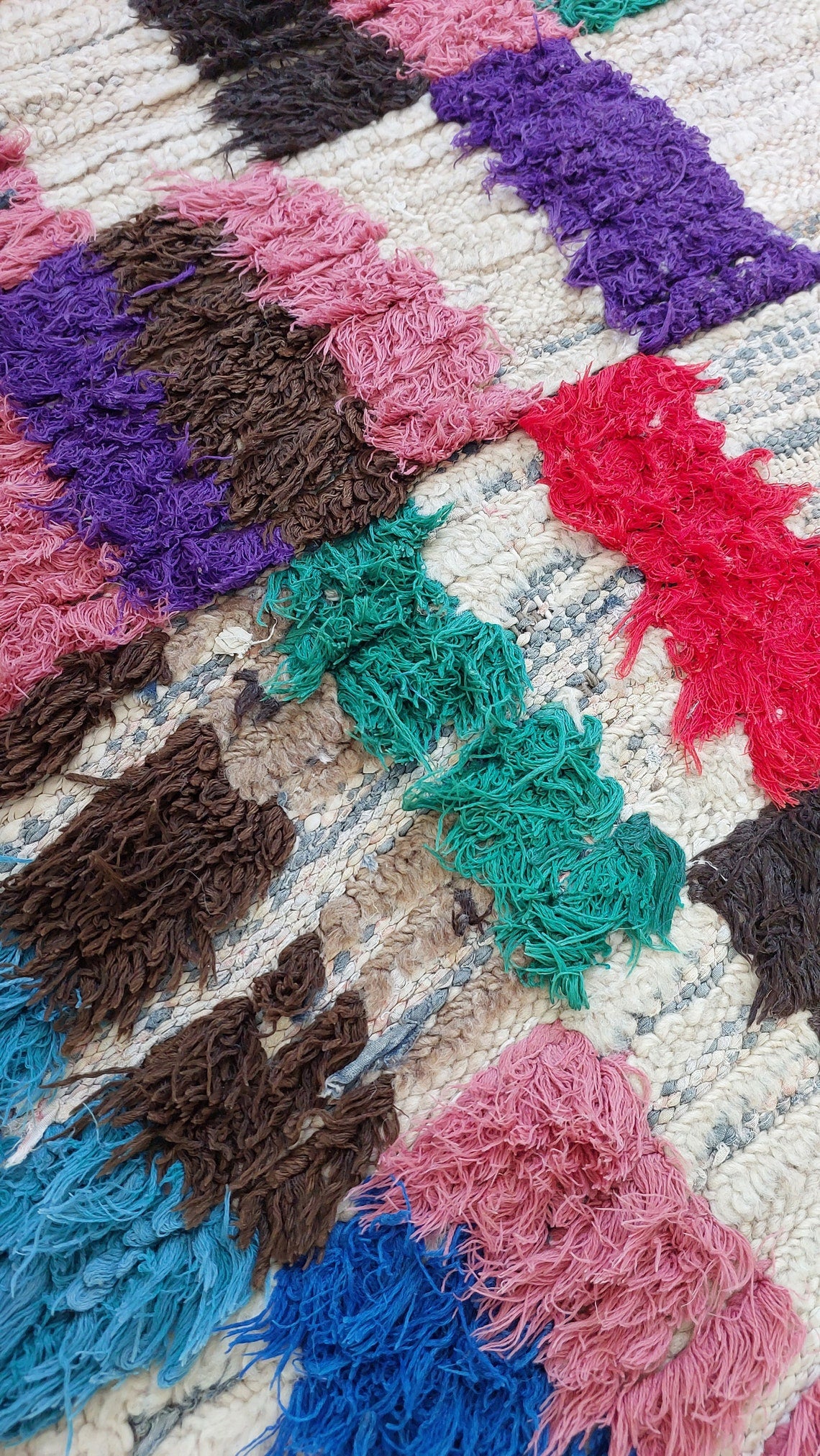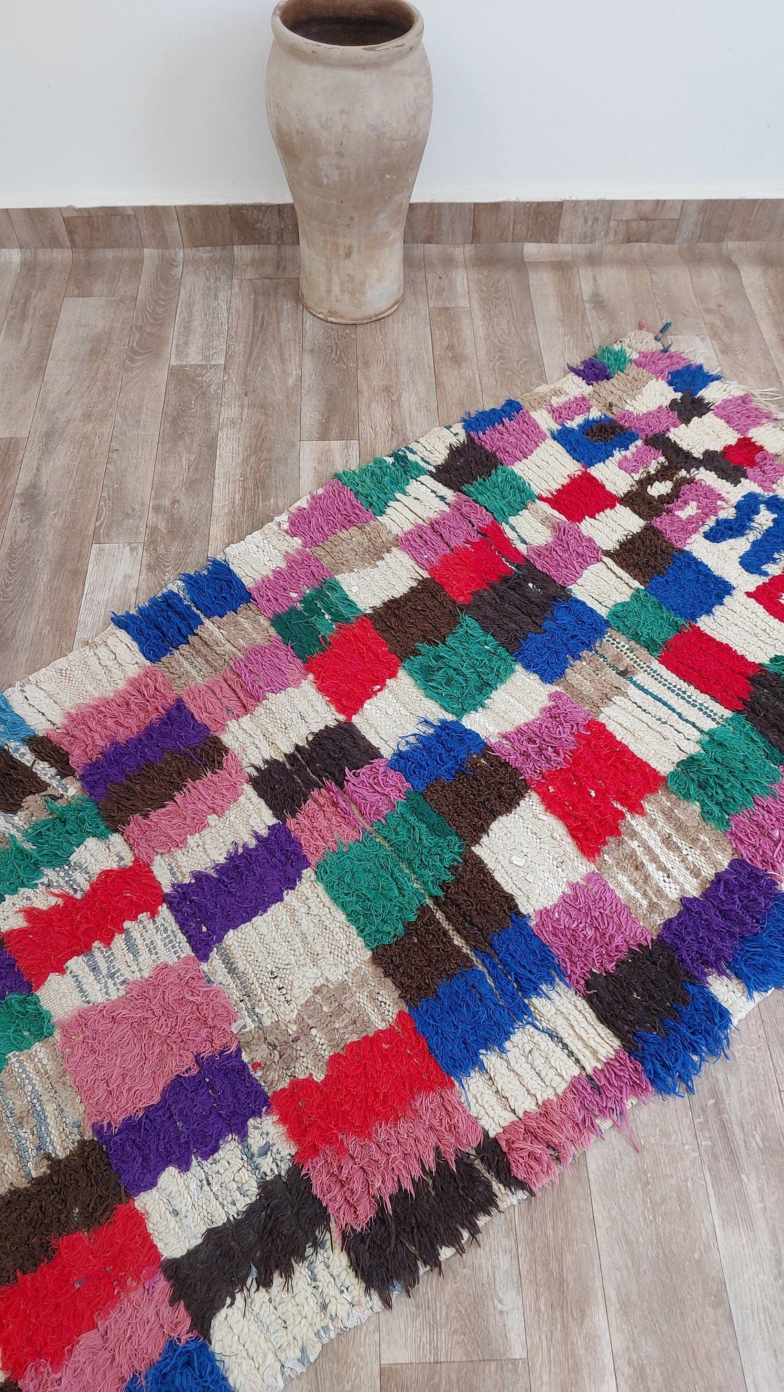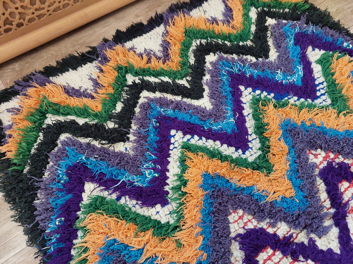 Colorful Moroccan Boucherouite Rug: Handwoven Sustainable Artisanal Berber Carpet for Home Decor