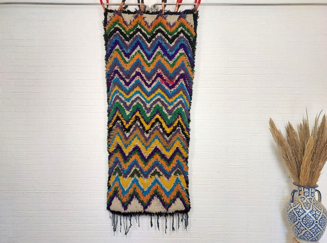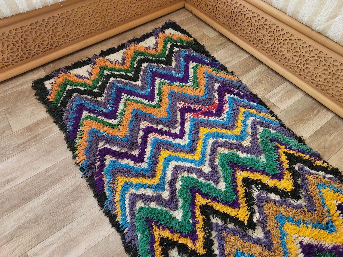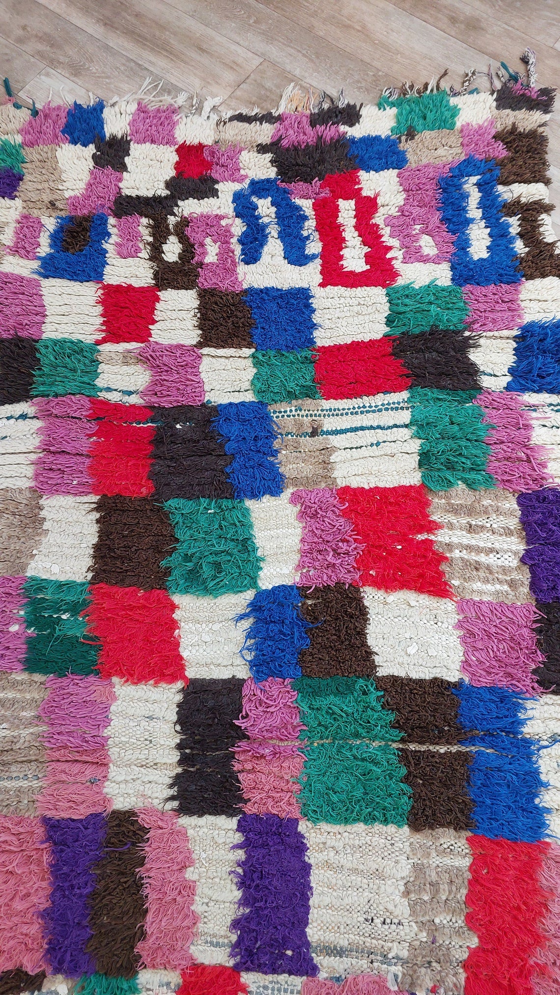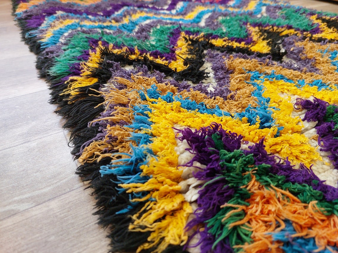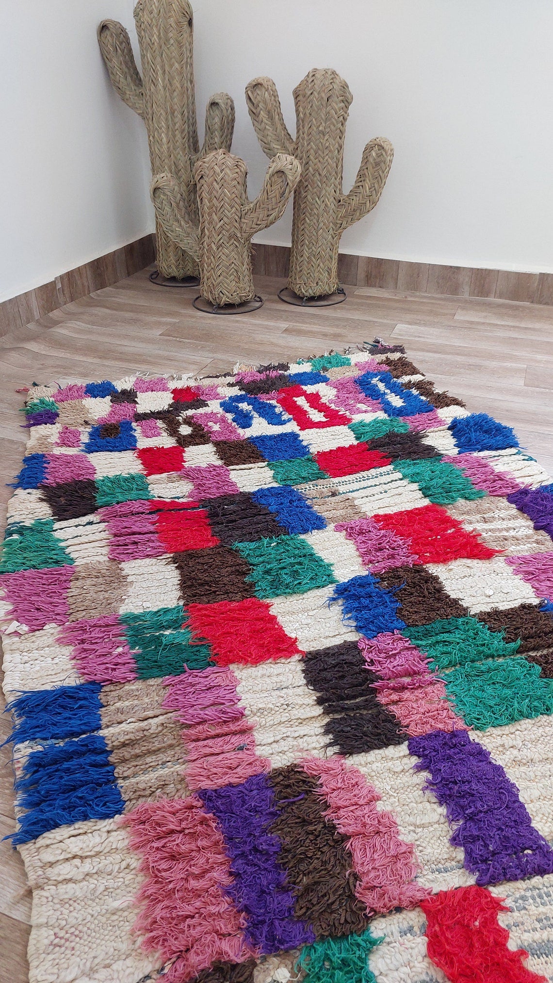 Colorful Moroccan Boucherouite Rug: Handwoven Sustainable Artisanal Berber Carpet for Home Decor