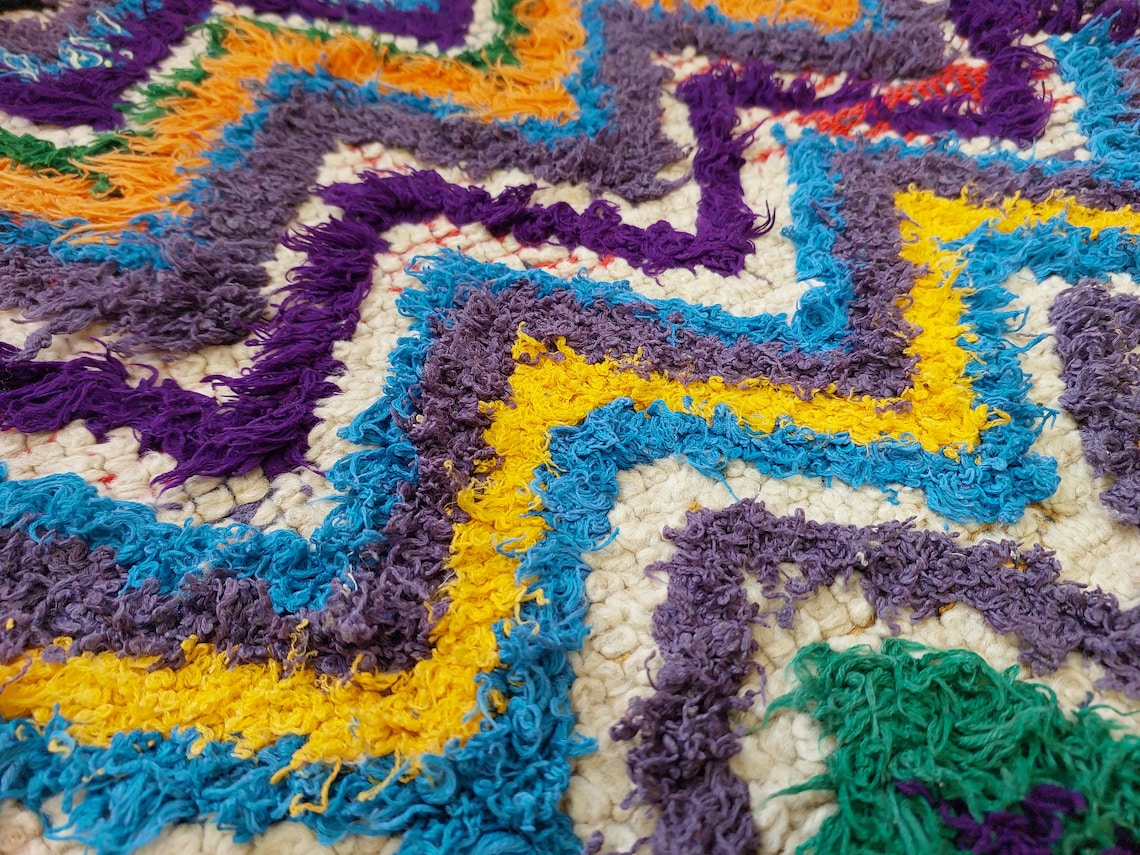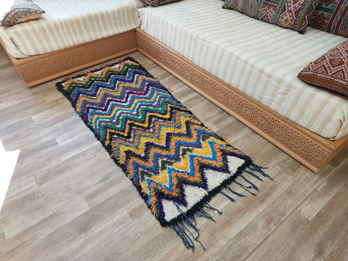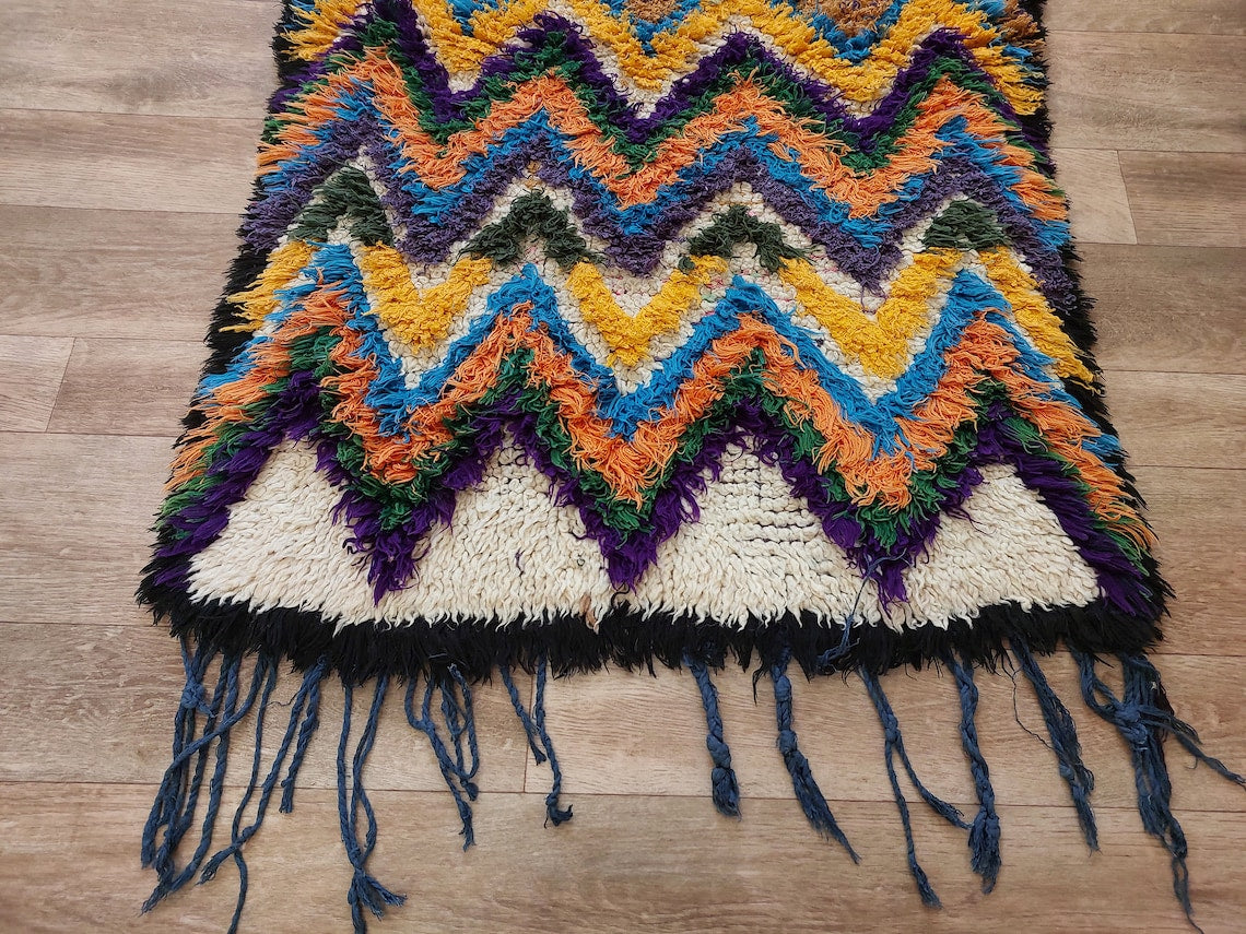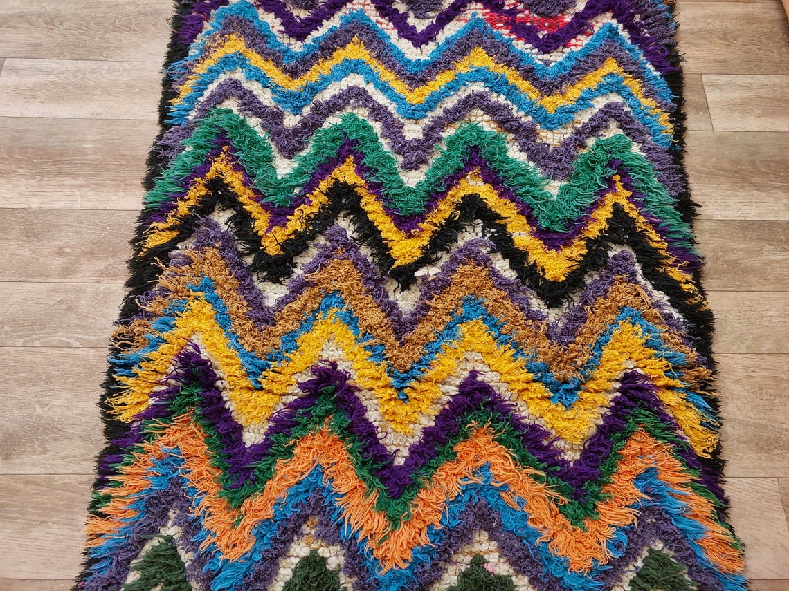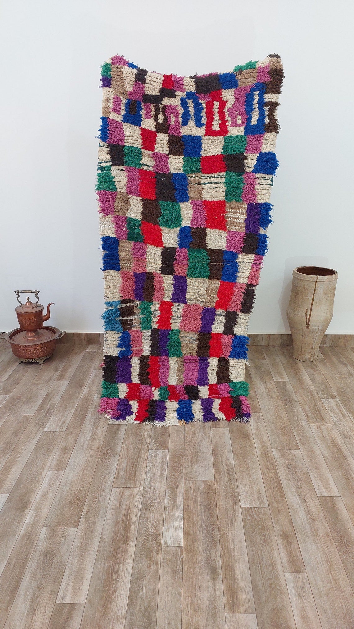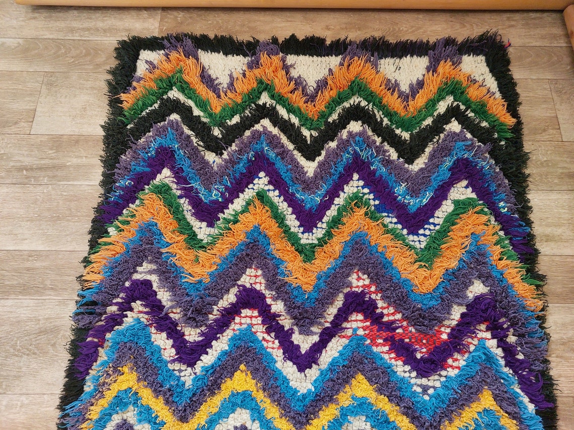 Colorful Moroccan Boucherouite Rug: Handwoven Sustainable Artisanal Berber Carpet for Home Decor
