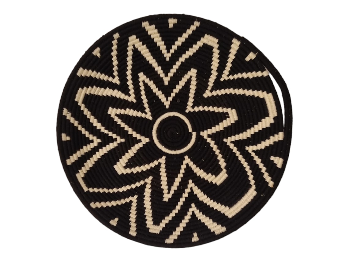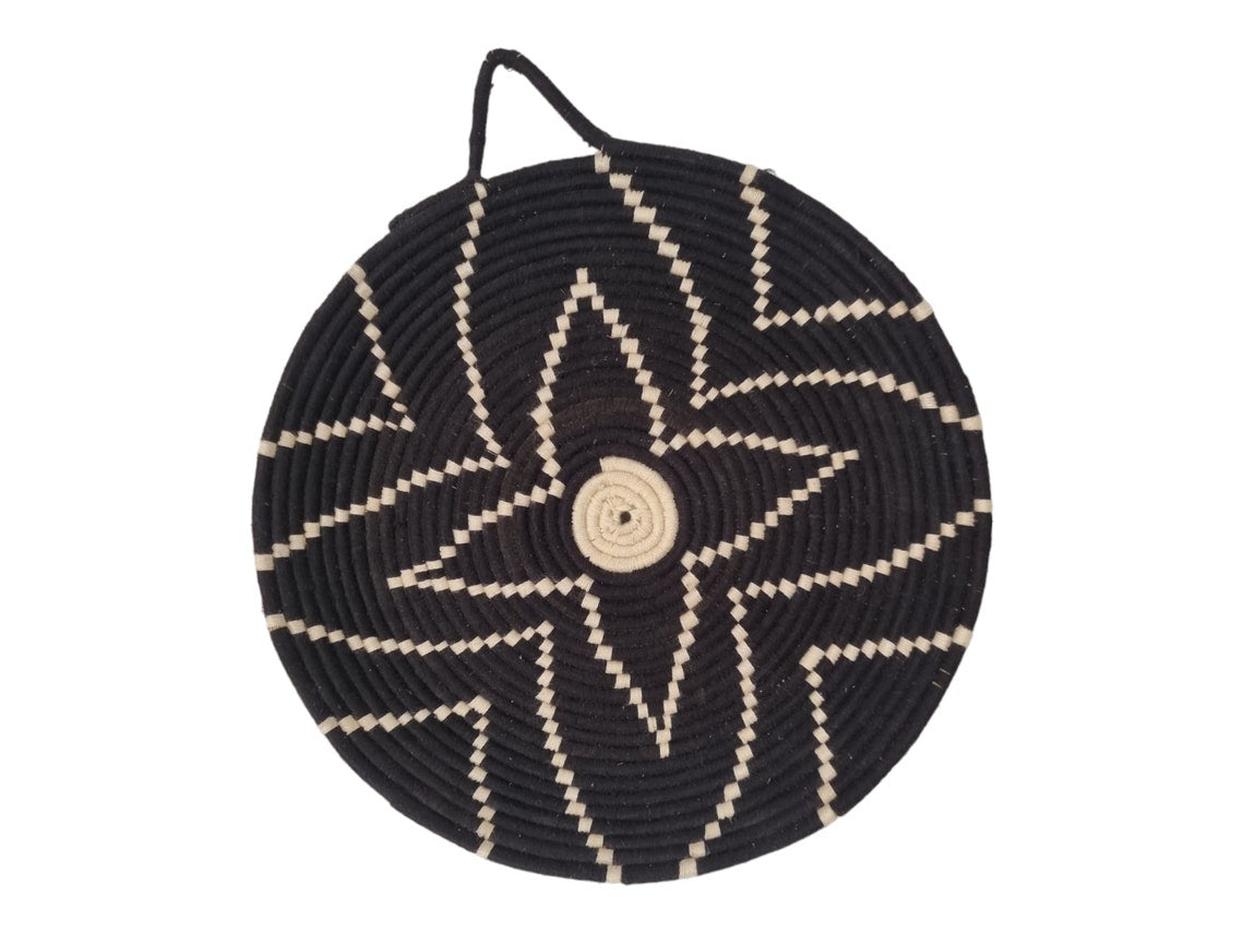 Geometric Wall Tray 17 Inch: Black White Handwoven Berber Palm Decor