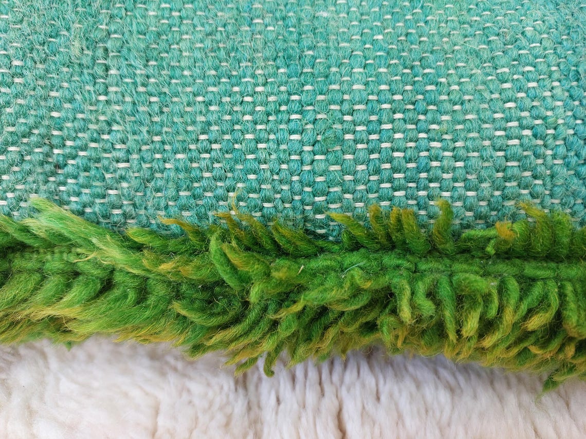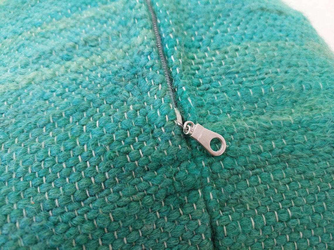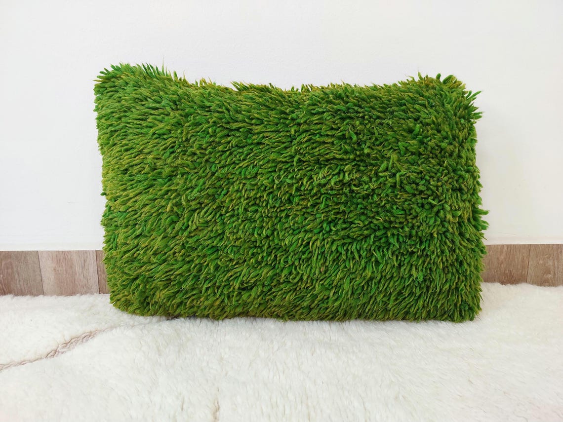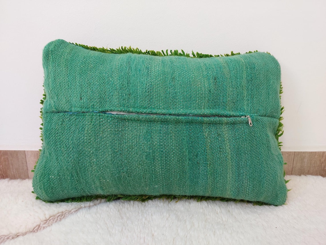 Emerald Beni Mguild Moroccan Wool Pillow - Decorative Berber Cushion, Boho Style, 24x16 Inches