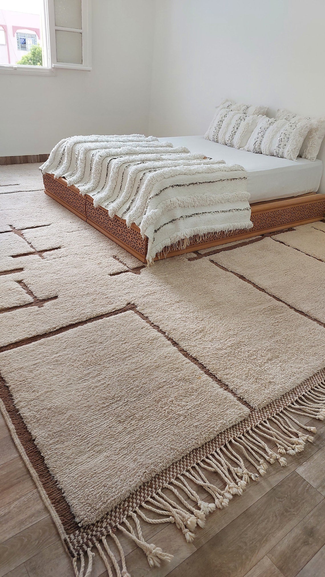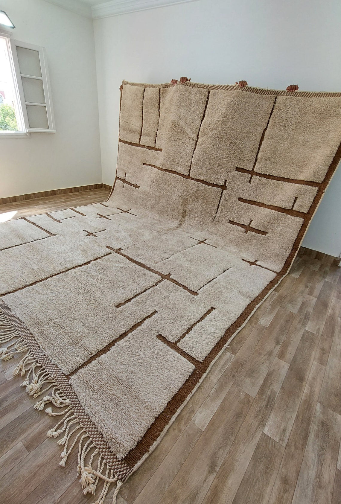 Authentic Moroccan Beni Mrirt Rug: Hand-Knotted Berber Wool Carpet for Boho Home Decor