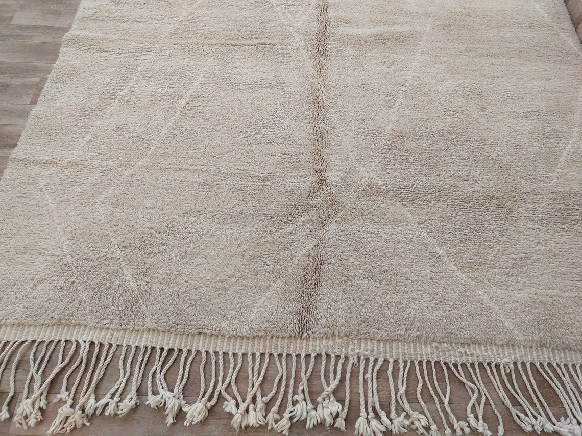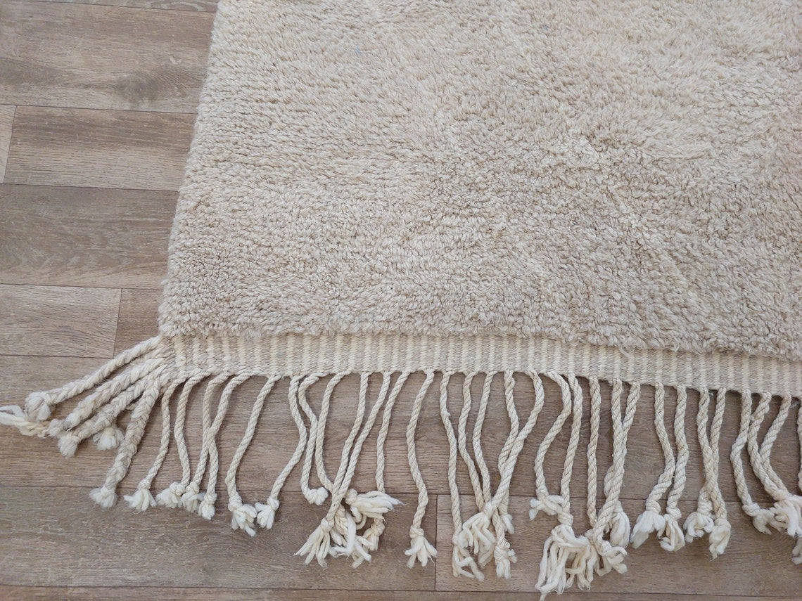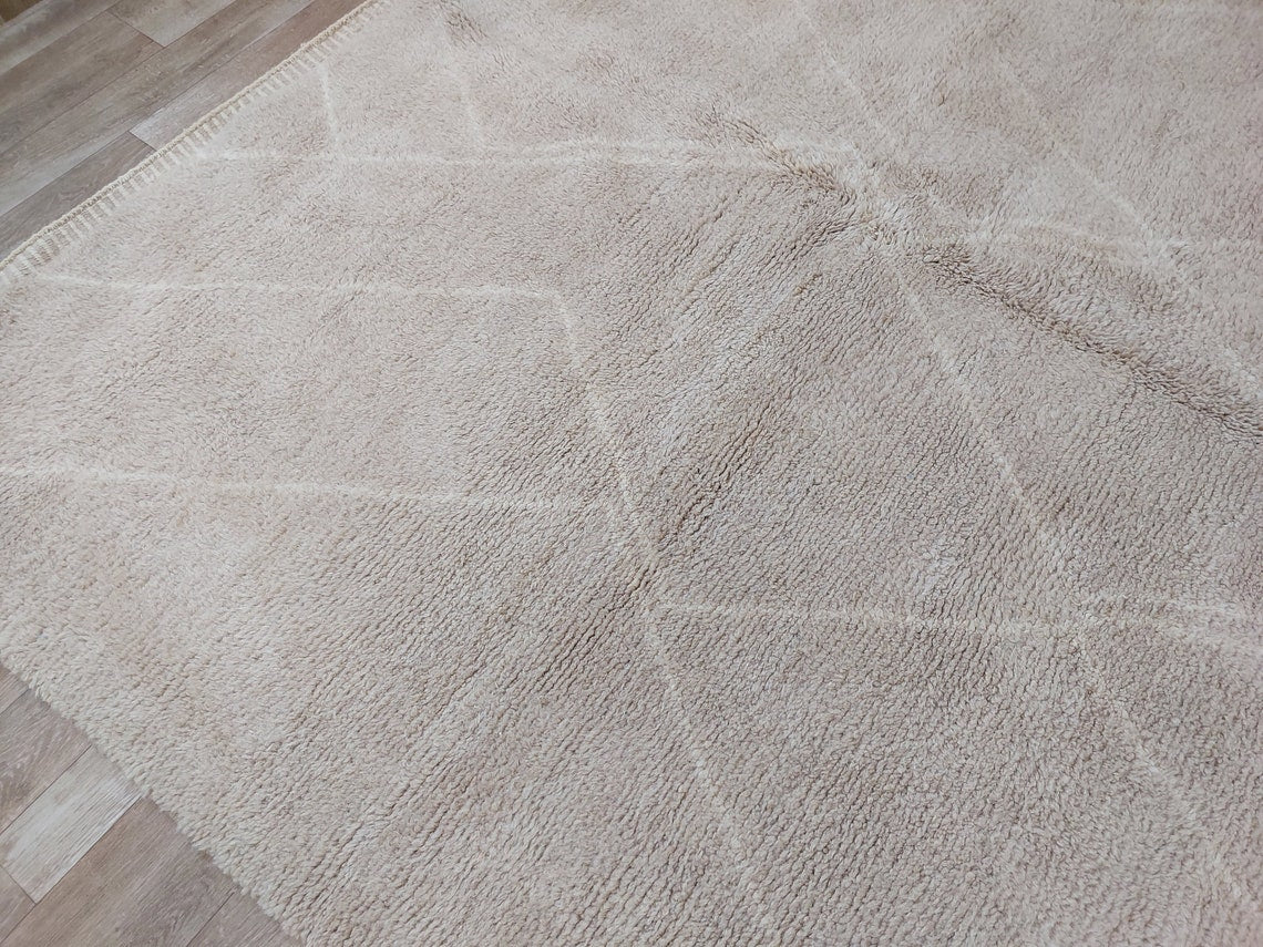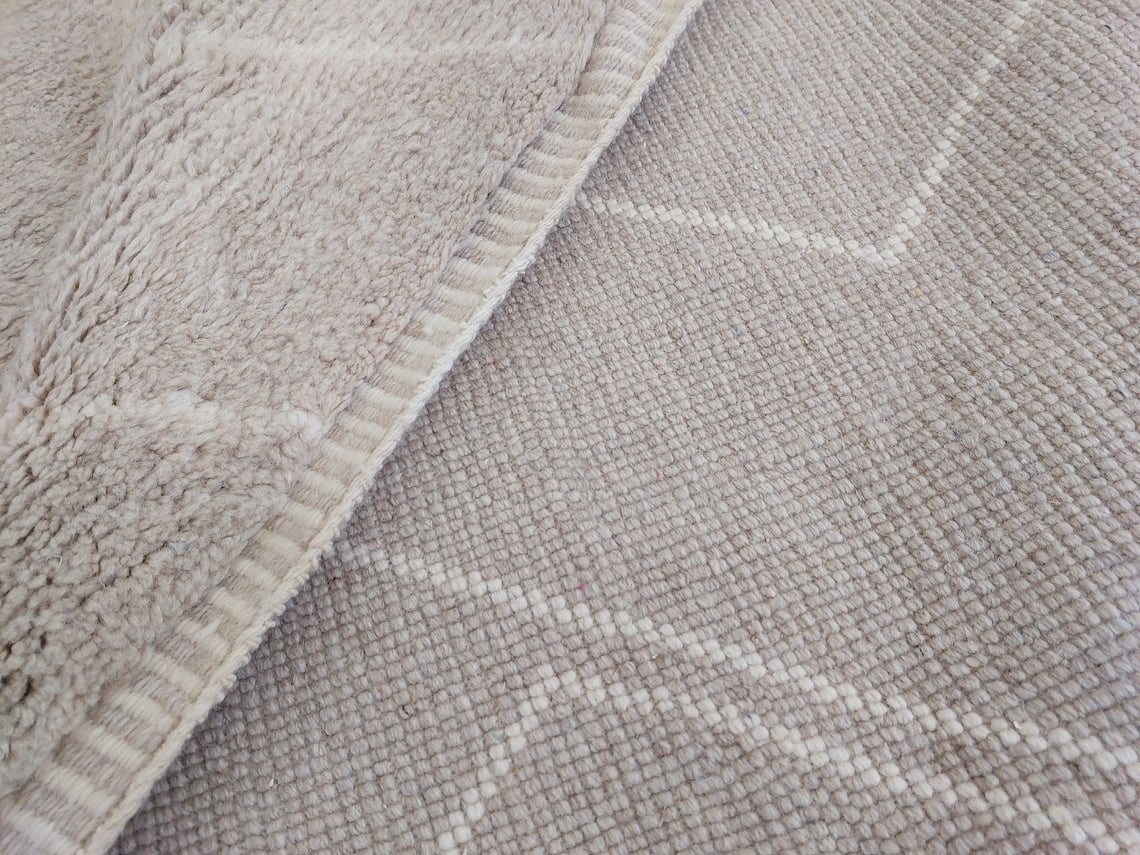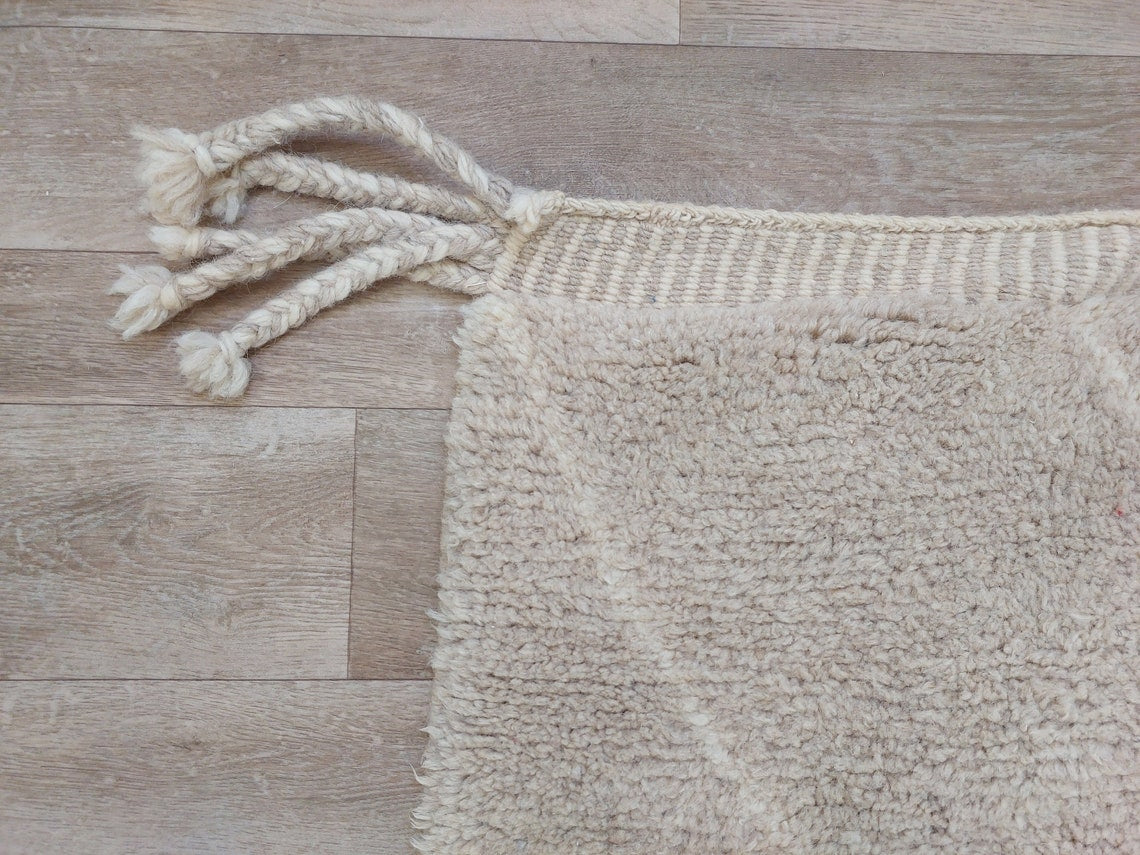 Authentic Moroccan Beni Mrirt Rug: Handmade Neutral Berber Rug In Plush Pile , Genuine Lamb Wool