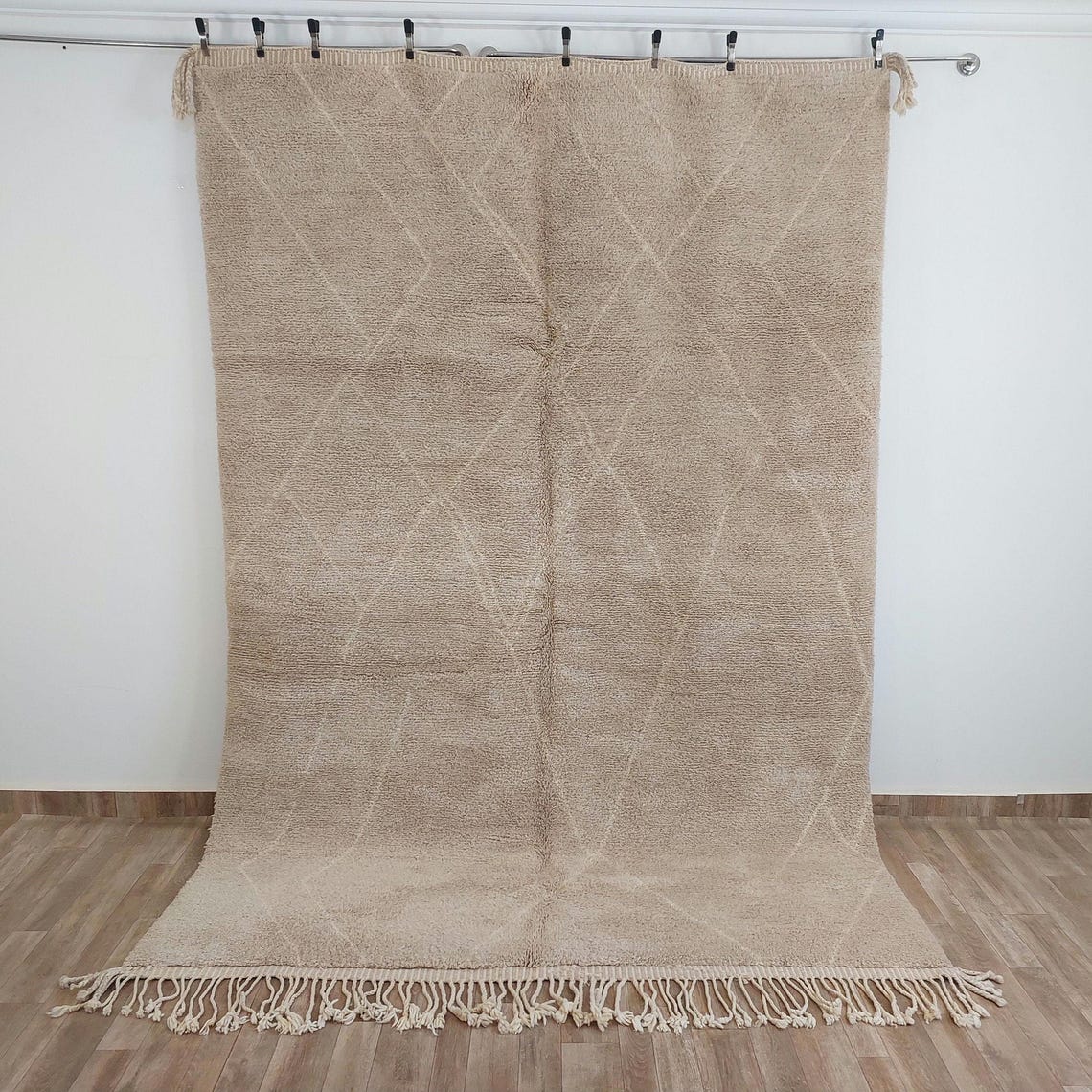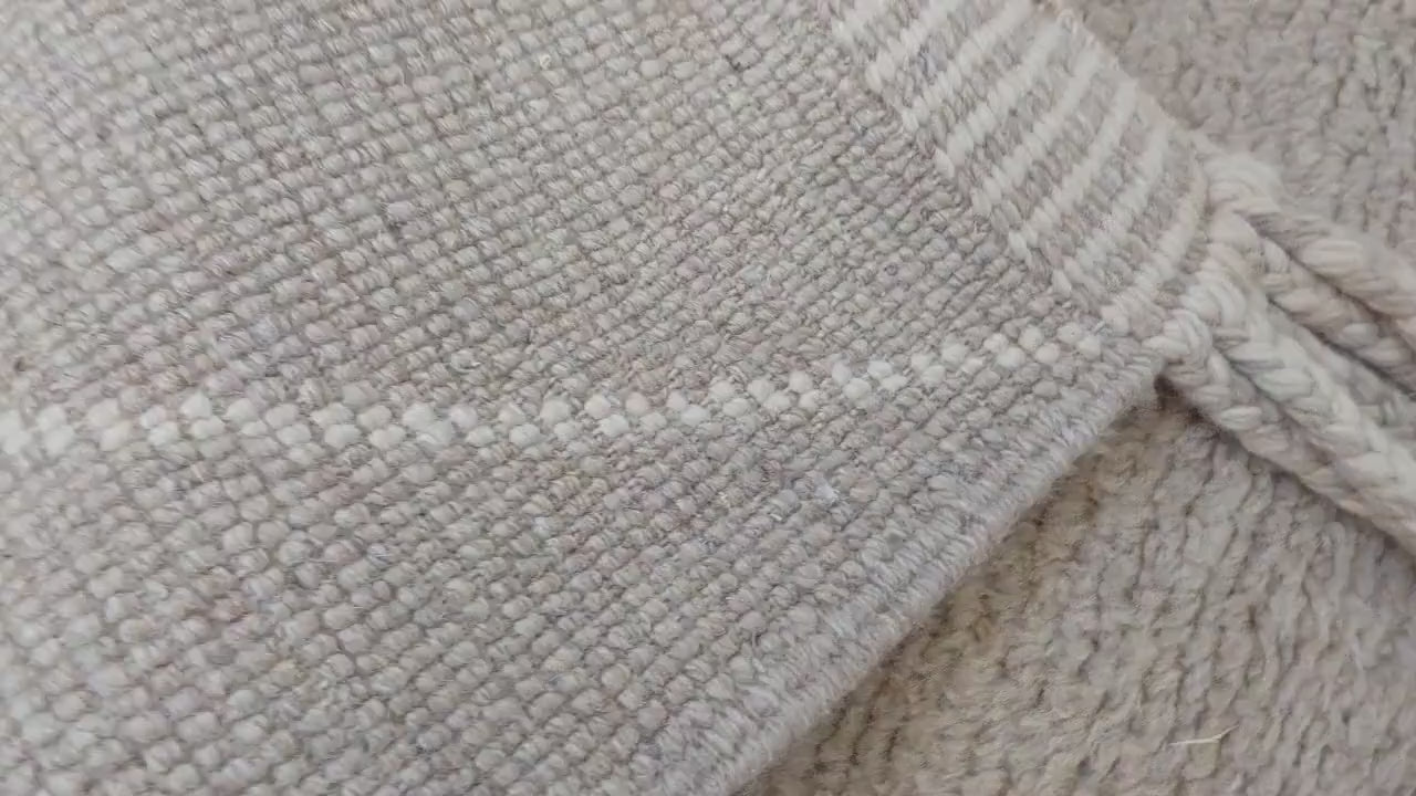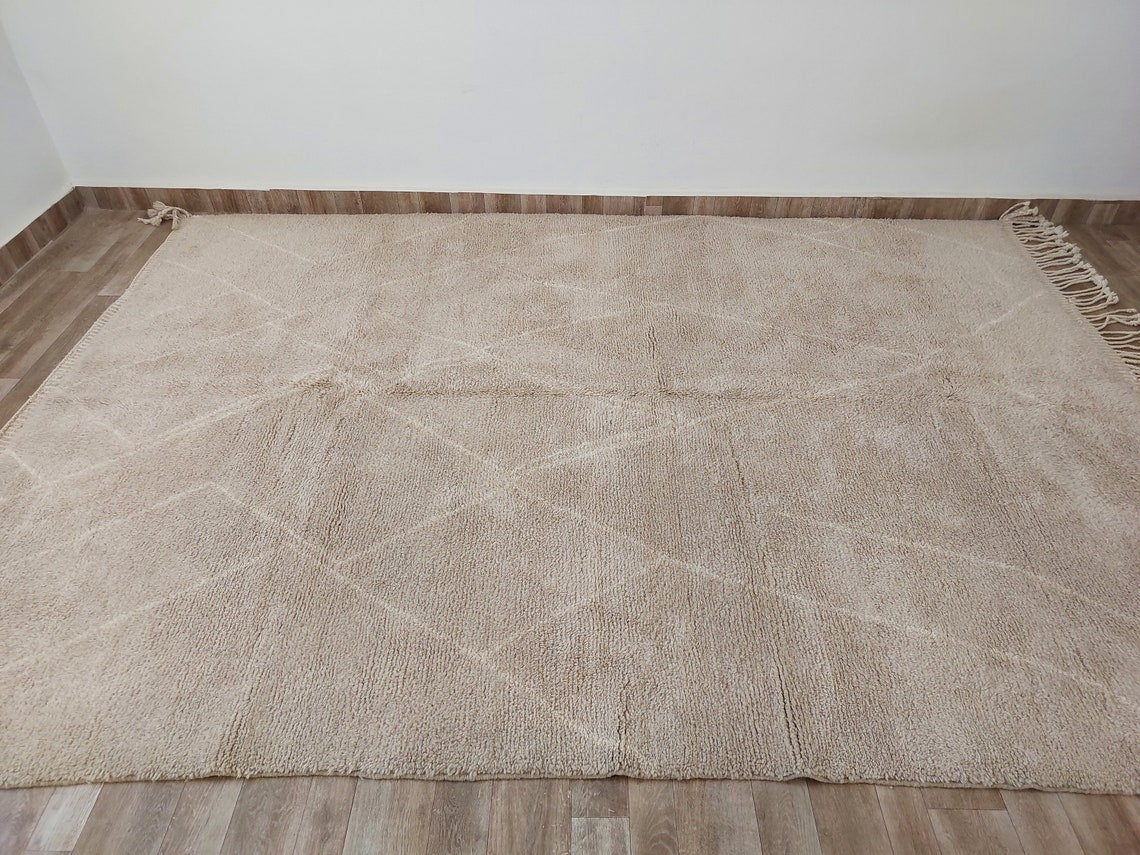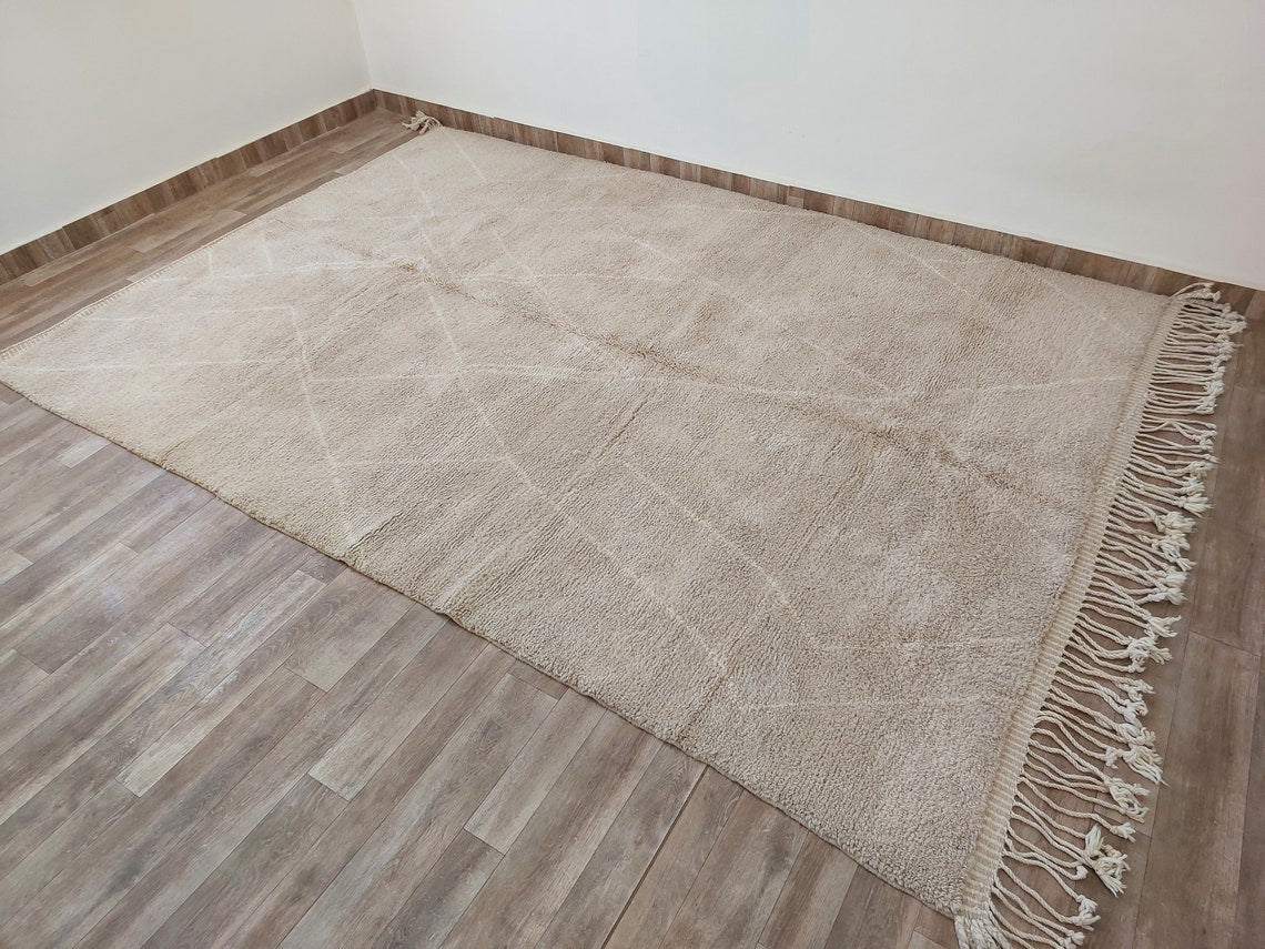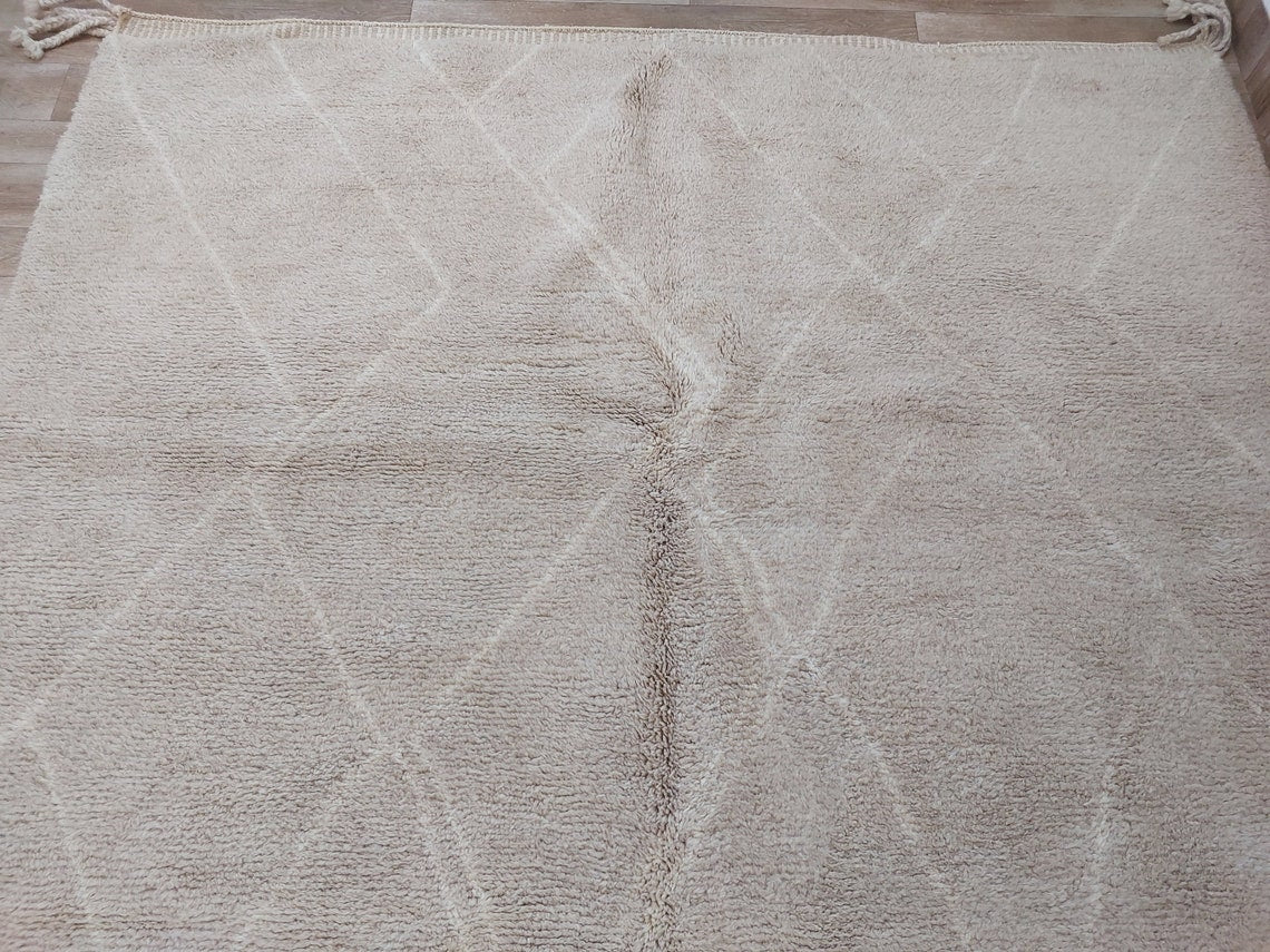 Authentic Moroccan Beni Mrirt Rug: Handmade Neutral Berber Rug In Plush Pile , Genuine Lamb Wool