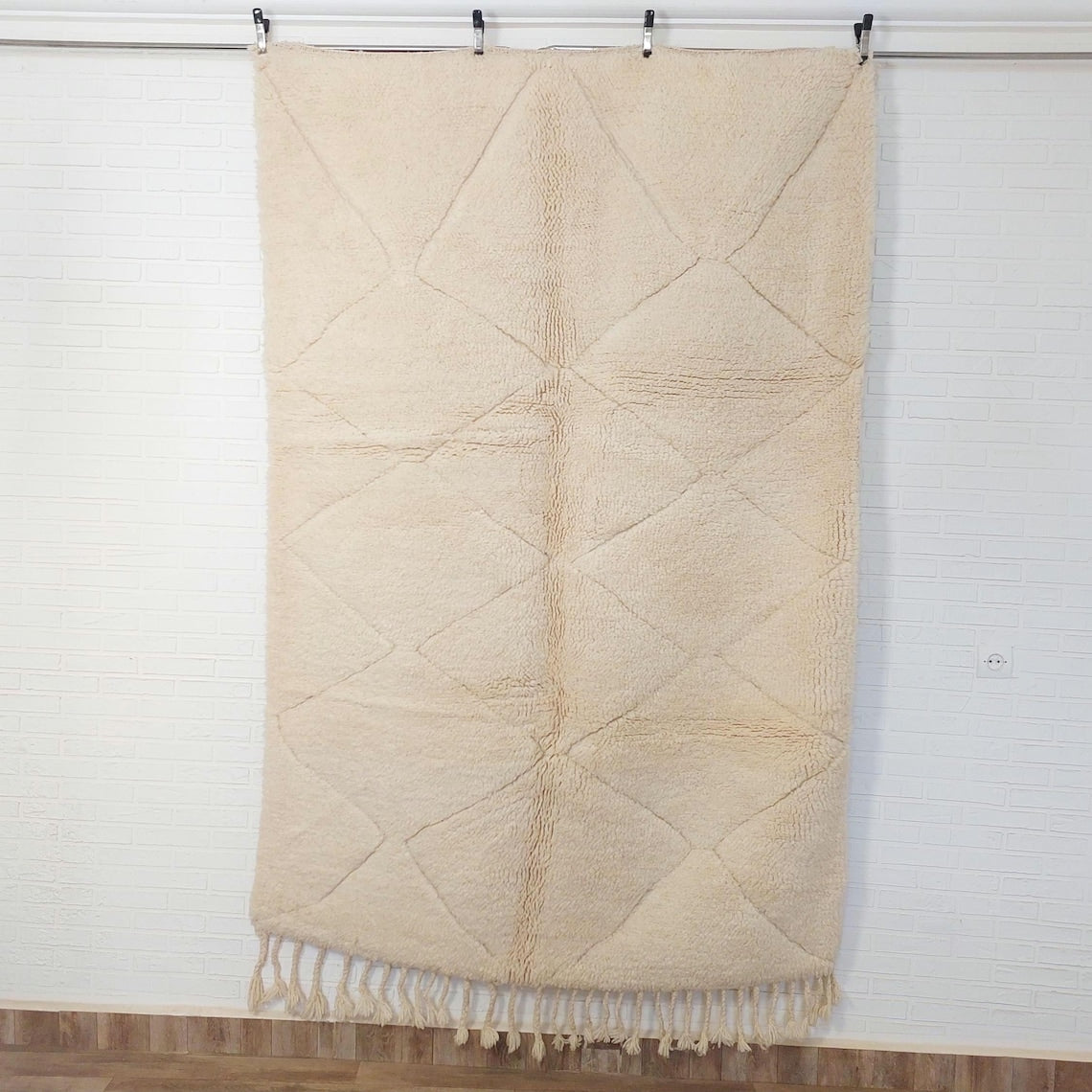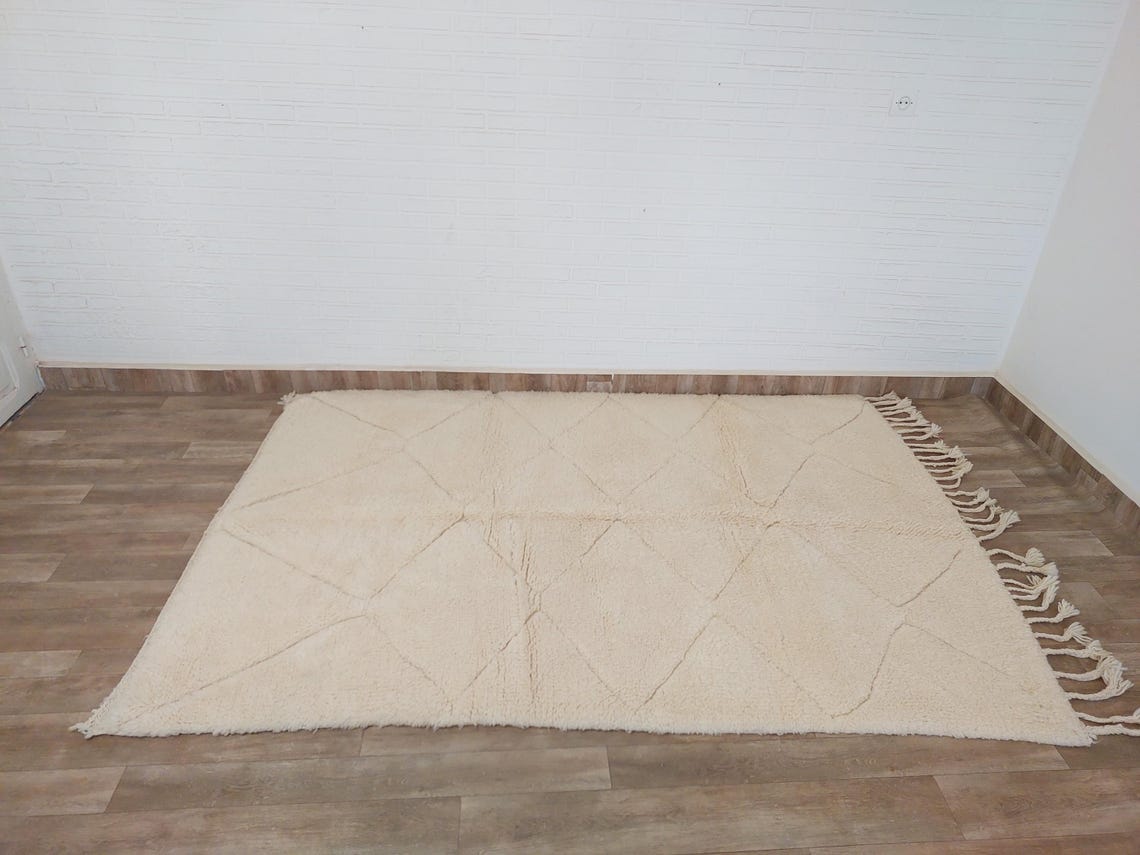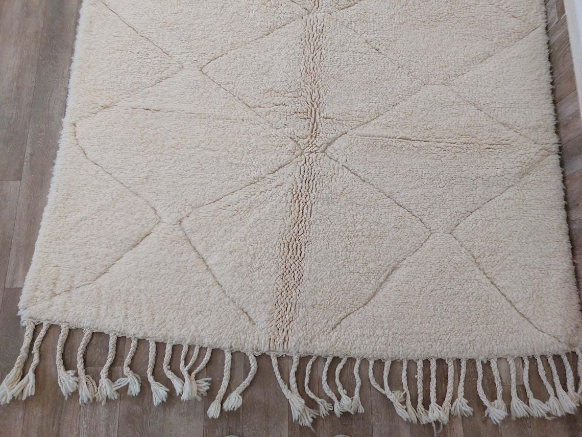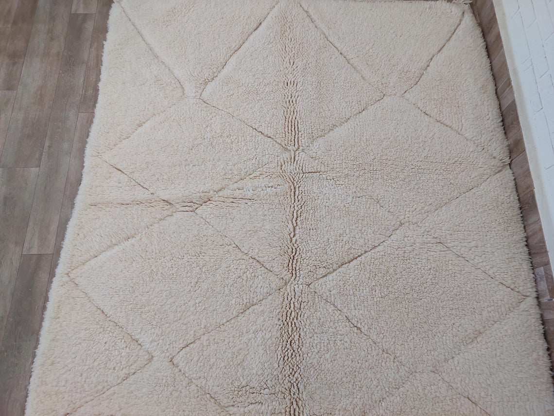 Authentic Moroccan Berber Beni Ourain Handwoven Wool Area Rug - Neutral Berber Rug - Contemporary Living Room Decor 4.11x7.4 Ft