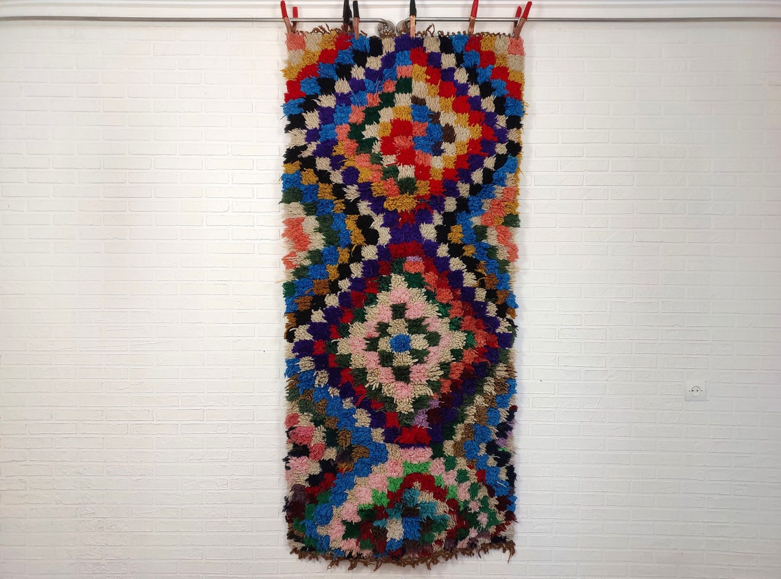 Moroccan Boucherouite Rug, 90 X 197cm, Authentic Berber Runner, Handmade Colorful Small Rug, Recycled Textile Rug