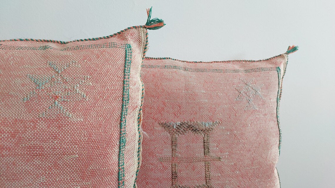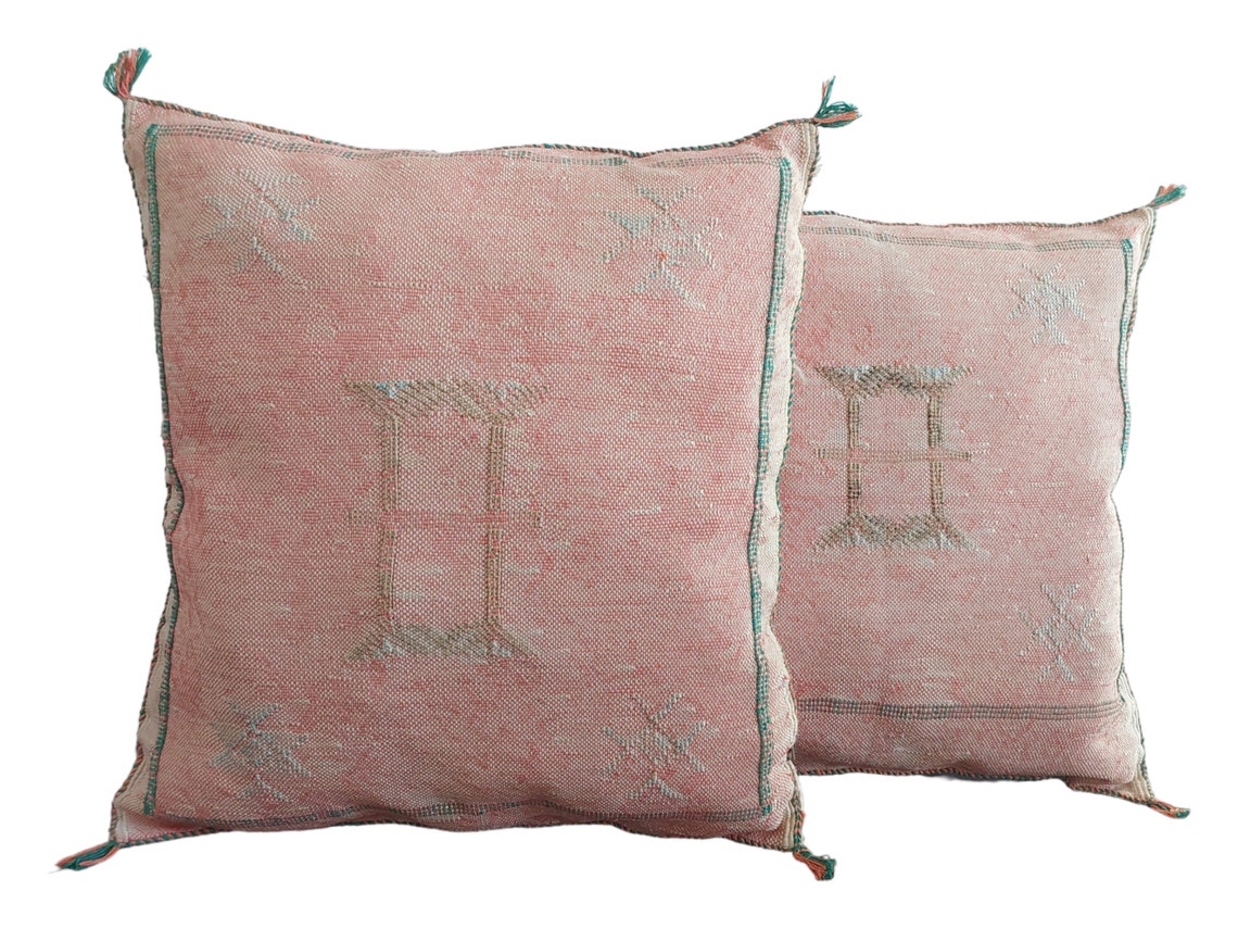 These Moroccan Cactus silk pillows are handcrafted with interlaced braiding on all four sides and tassels on each corner. Each pillow is unique, with a rich texture and vintage-inspired tones that make a statement in any space. Ideal for layering on sofas, beds, or adding color and charm to a nursery. Cleaned, washed, and ready to use.