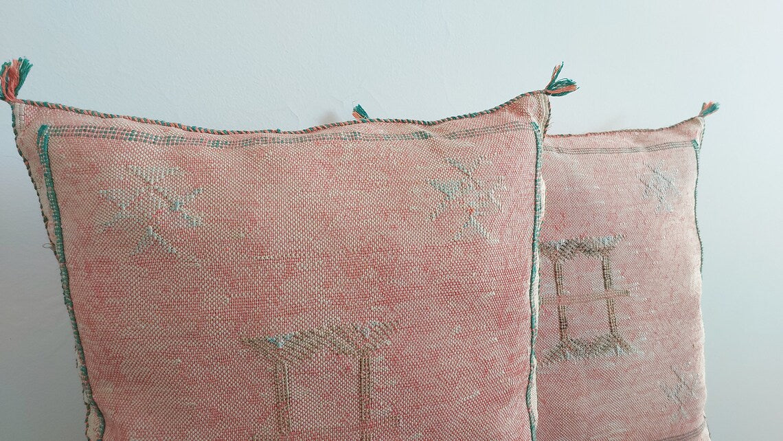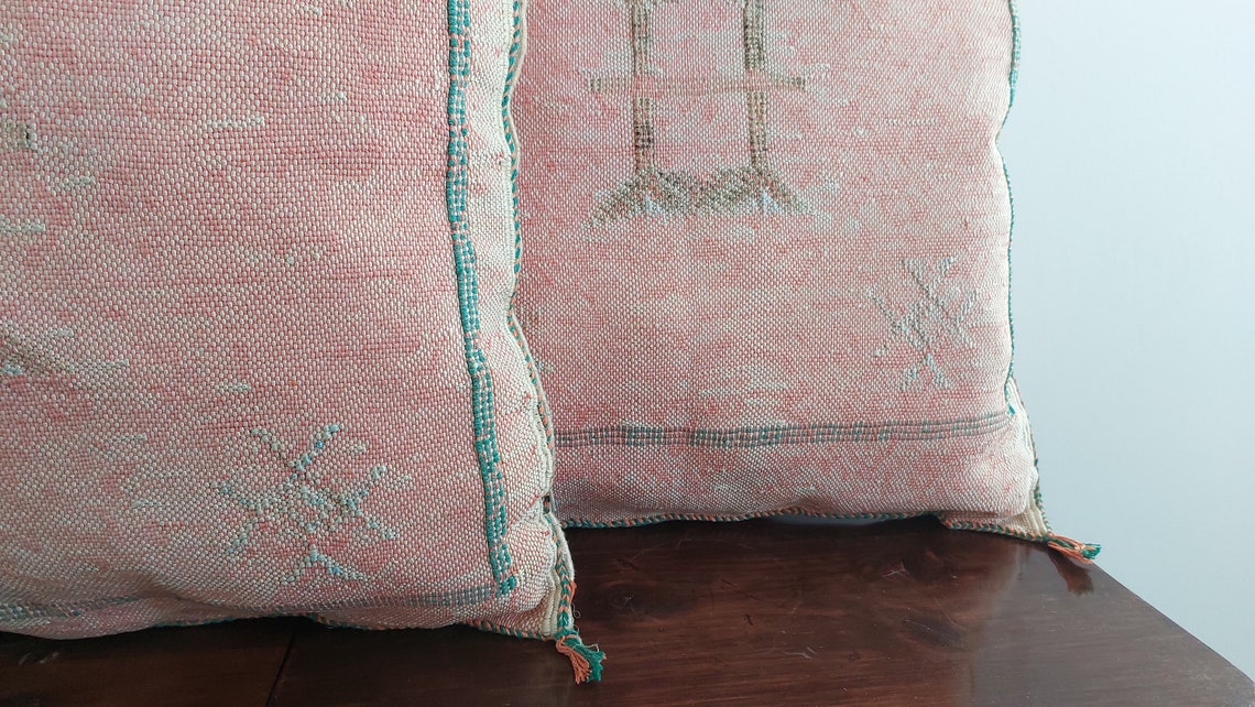 Set Of Two Moroccan Pillows - Handmade Cactus Silk Pillows Cases - Decorative Berber Pillows.