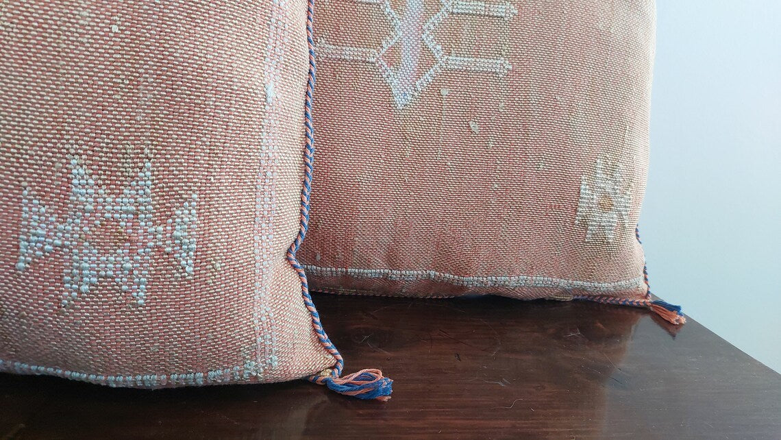 Set Of Two Moroccan Pillows - Handmade Cactus Silk Pillows Cases - Decorative Berber Pillows
