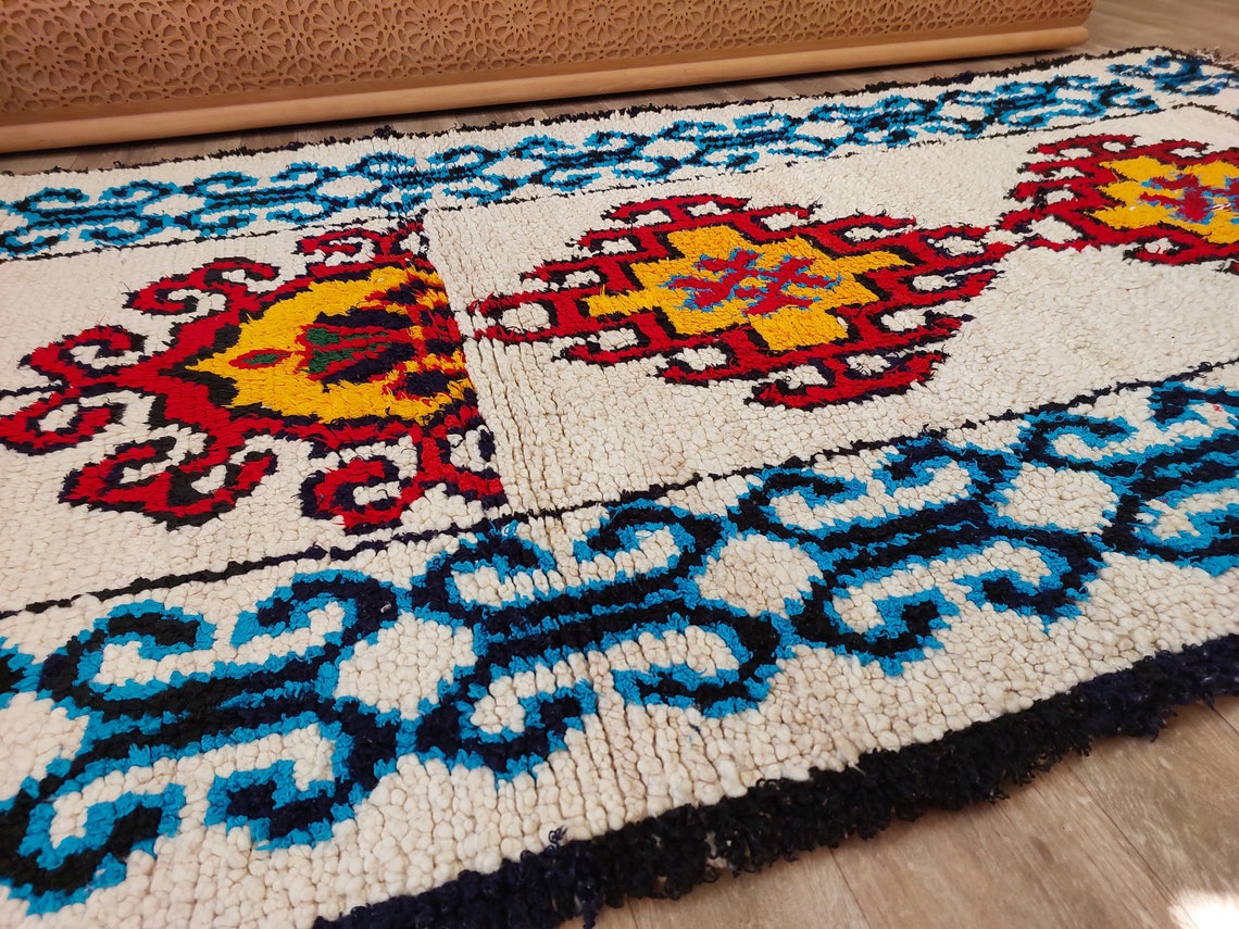 Handmade Azilal & Beni Ourain Boucherouite Rug — Colorful Patchwork Design, Perfect For Bohemian, Moroccan, Or Eclectic Interiors