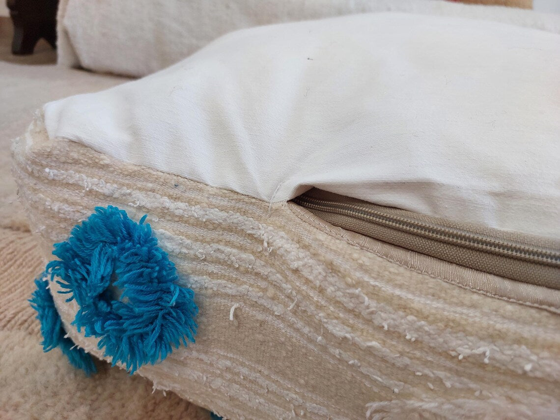 Handmade Moroccan Berber Blanket Pouf: Boho Chic Floor Ottoman, Unique Ethnic Home Decor, 70x60x20cm