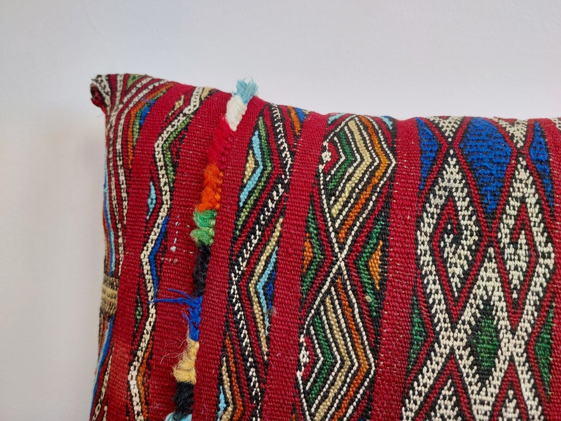 Authentic 13x31 Moroccan Kilim Lumbar Cushion - Vintage Berber Pillow Case