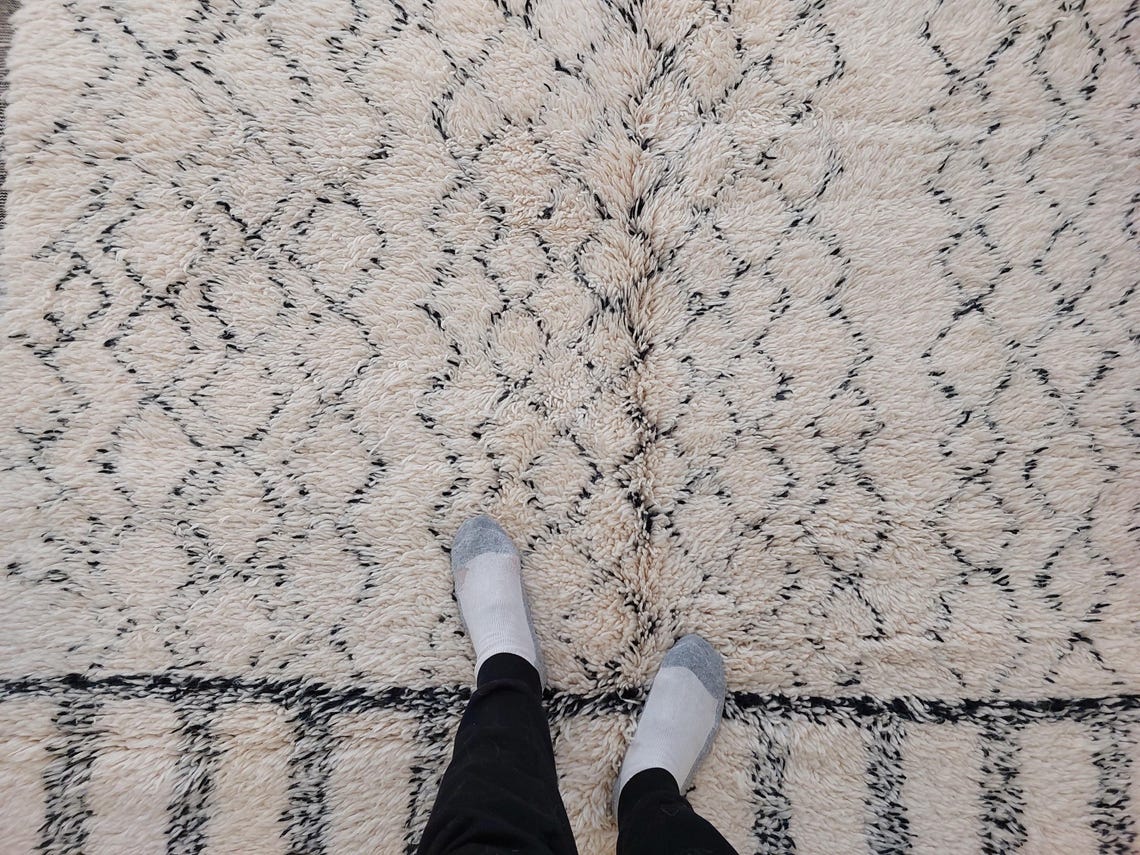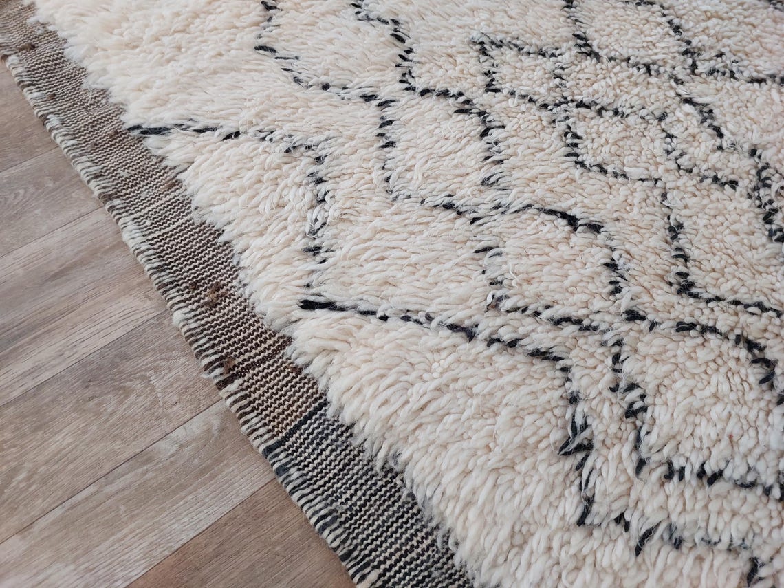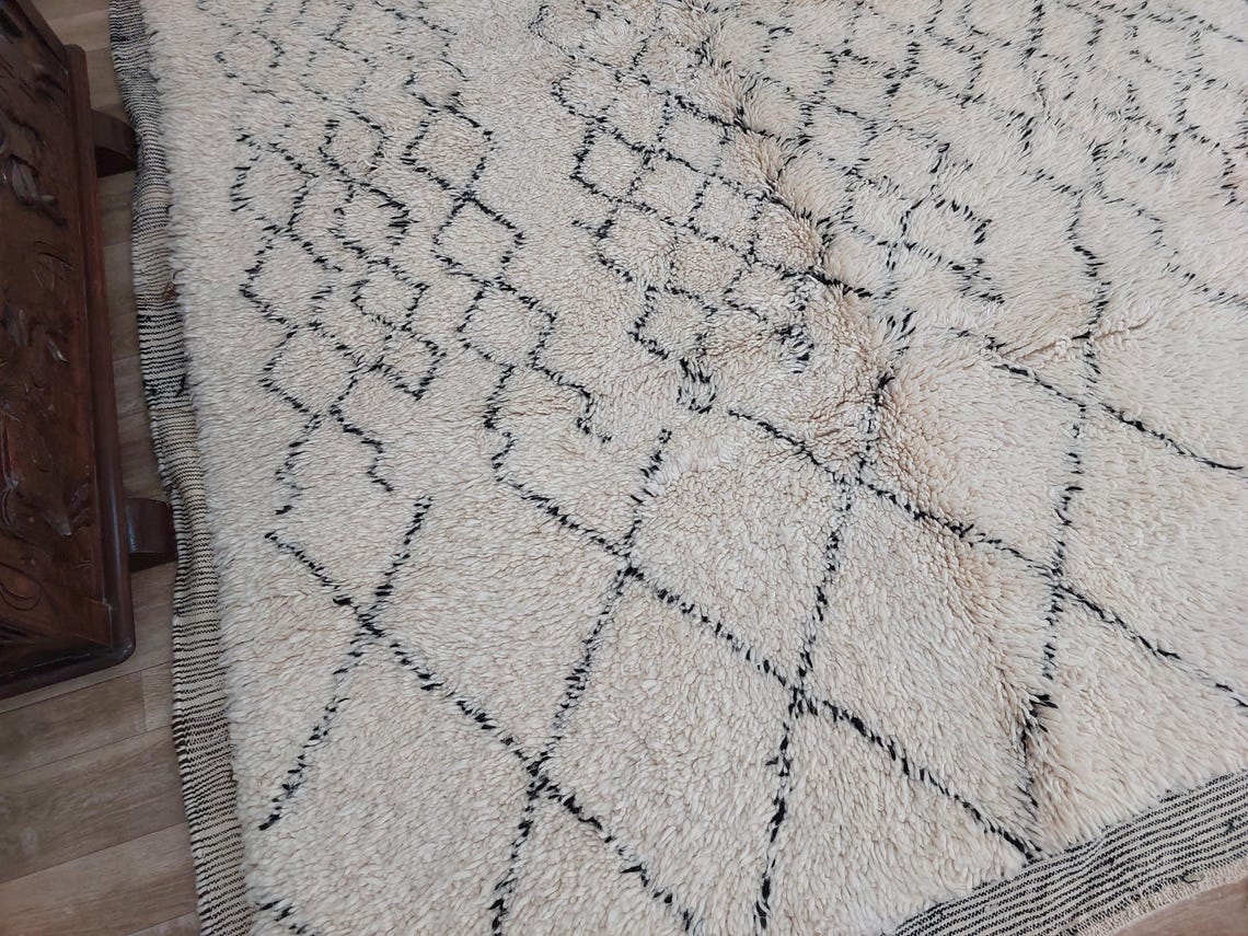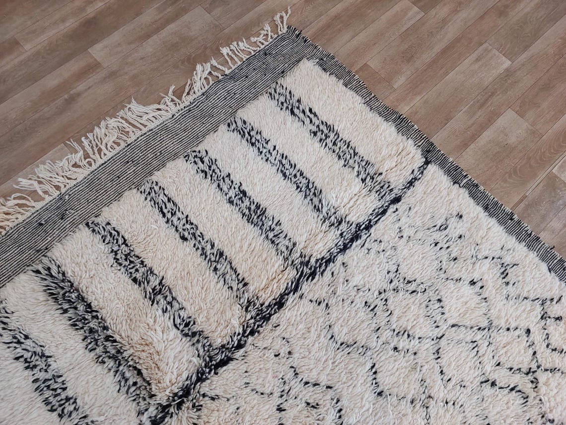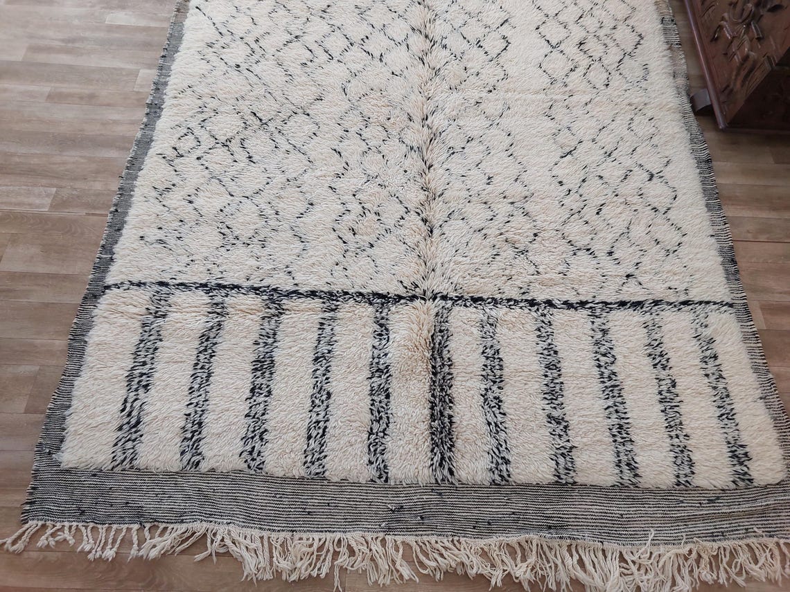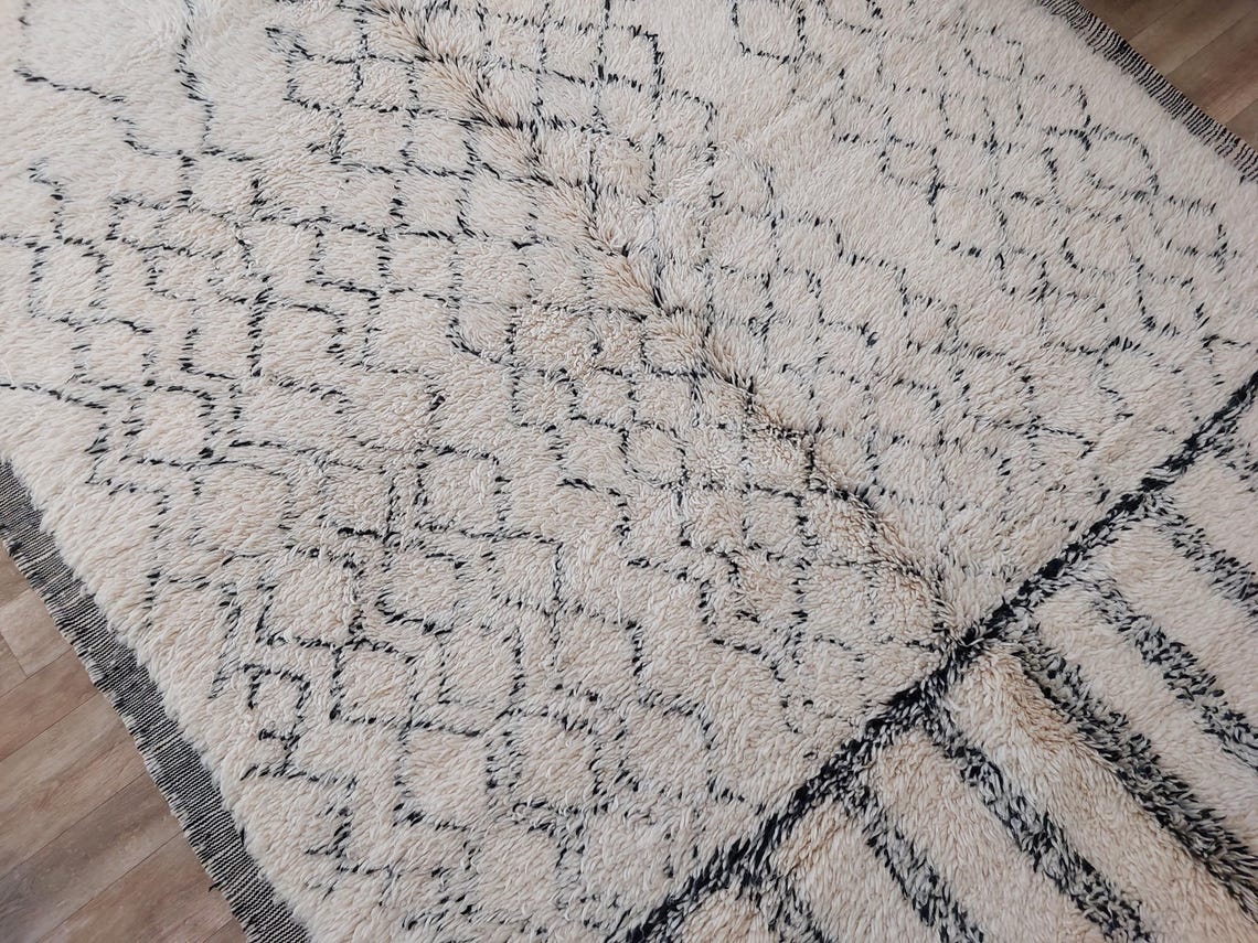 Authentic Beni Ourain Handmade Ivory Moroccan Rug - Soft 6.11x10ft Living Room Rug