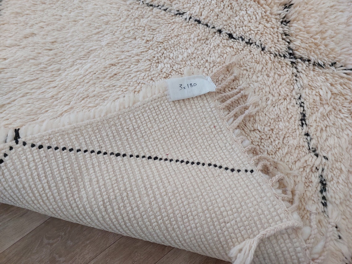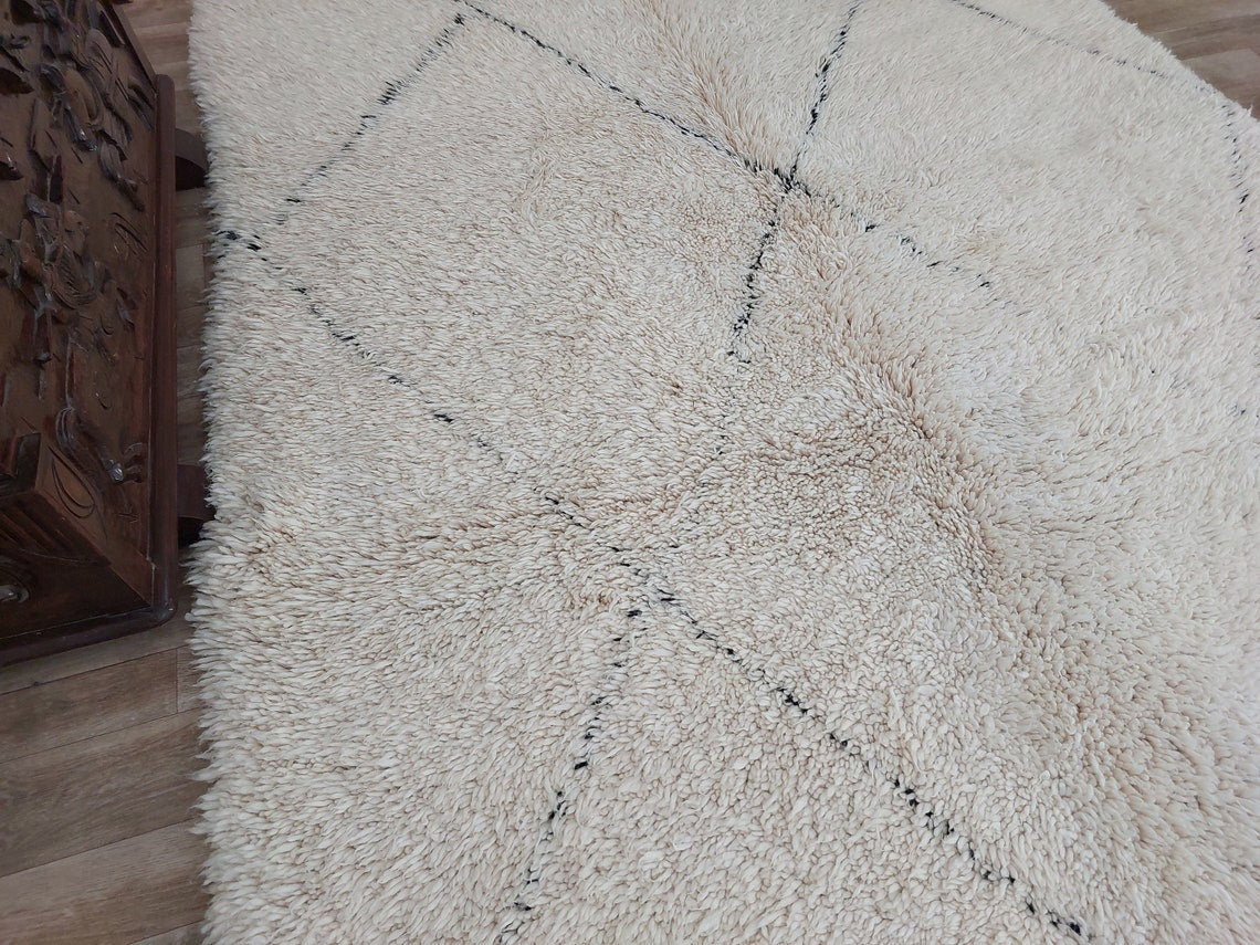 This Handmade Beni Ourain Rug Delivers Authentic Moroccan Craftsmanship And Timeless Charm. Made From Premium Wool, It Features Soft Texture And Exceptional Durability. The Geometric Patterns Enhance Any Modern Or Traditional Space. Naturally Dyed And Eco-Friendly, It Brings Warmth, Comfort, And Cultural Value To Your Home. A Beautiful Statement Piece That Elevates Any Interior Effortlessly.