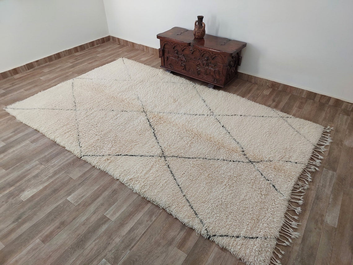 Authentic Beni Ourain Moroccan Rug - Handmade Lamb Wool Berber Carpet (5.10x9.9 Ft)