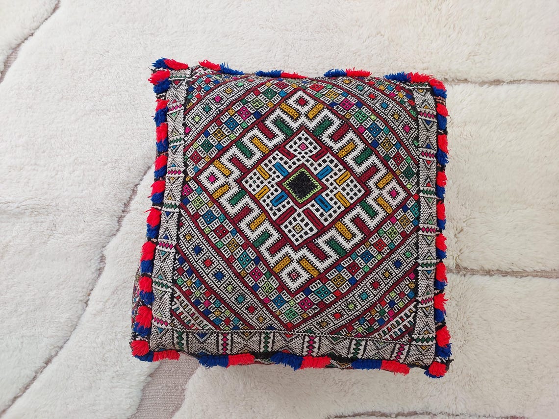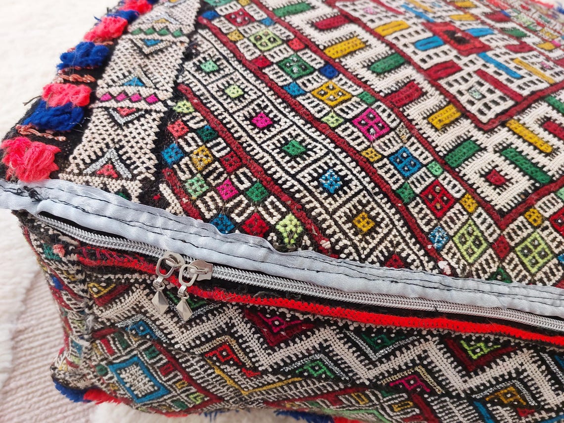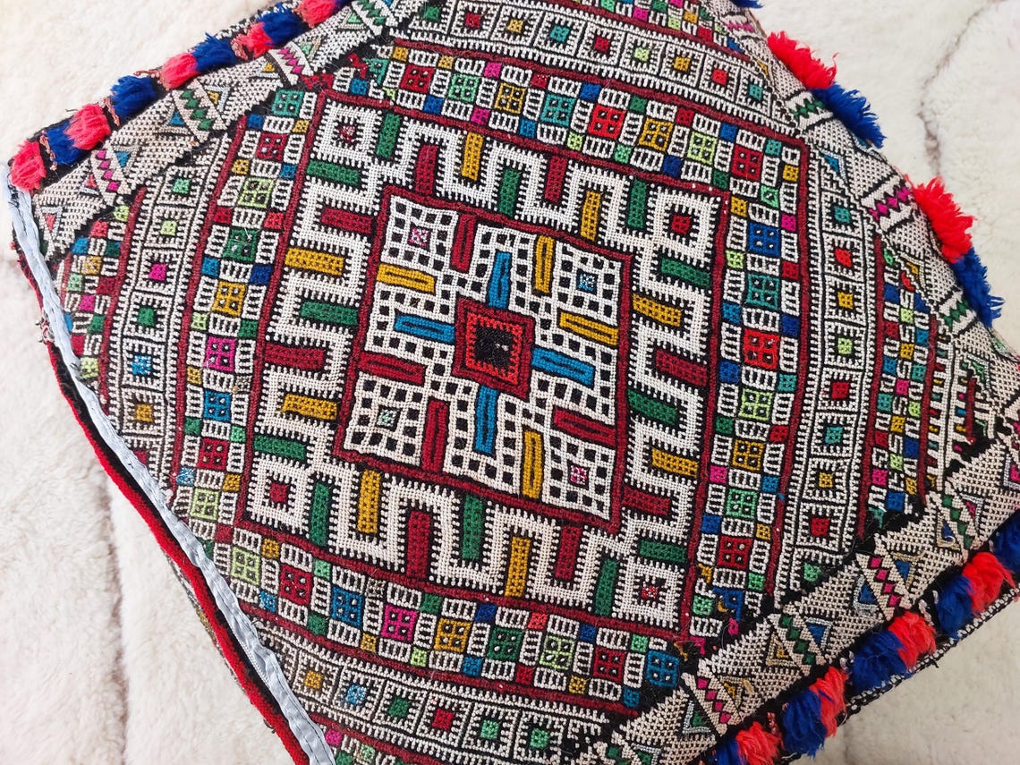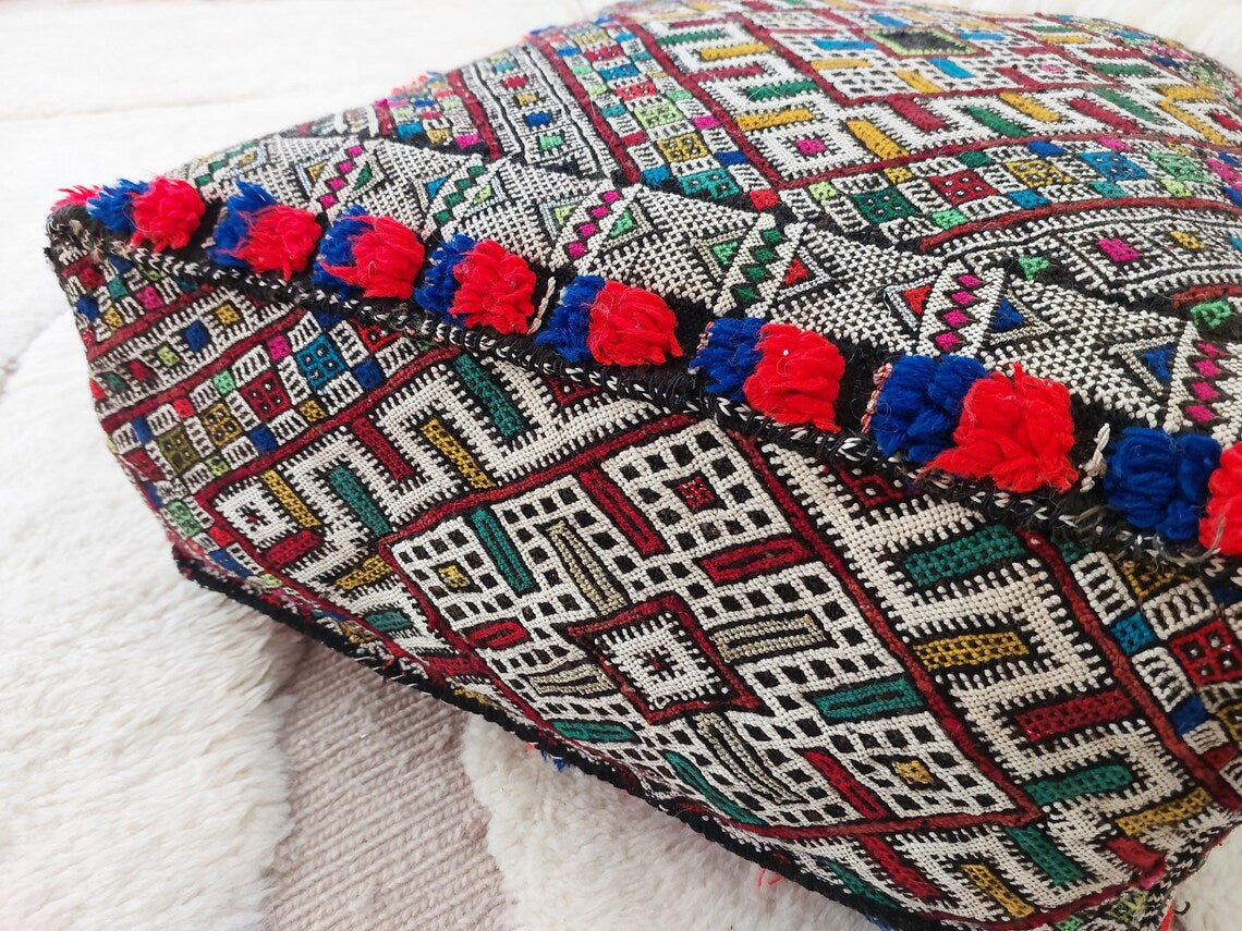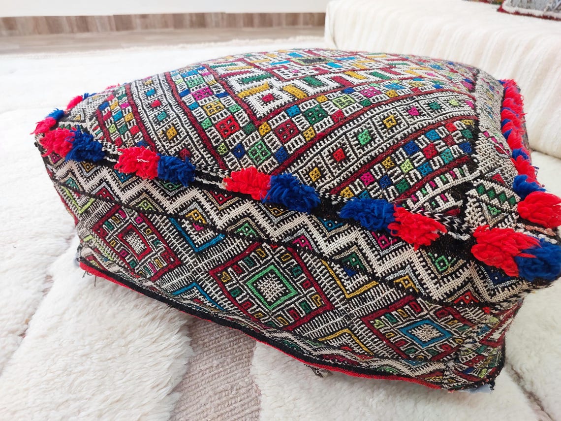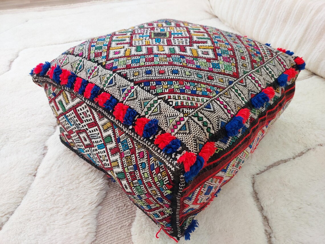 Authentic Handmade Berber Bridal Suitcase - Vintage Moroccan Kilim Pouf Ottoman Floor Cushion