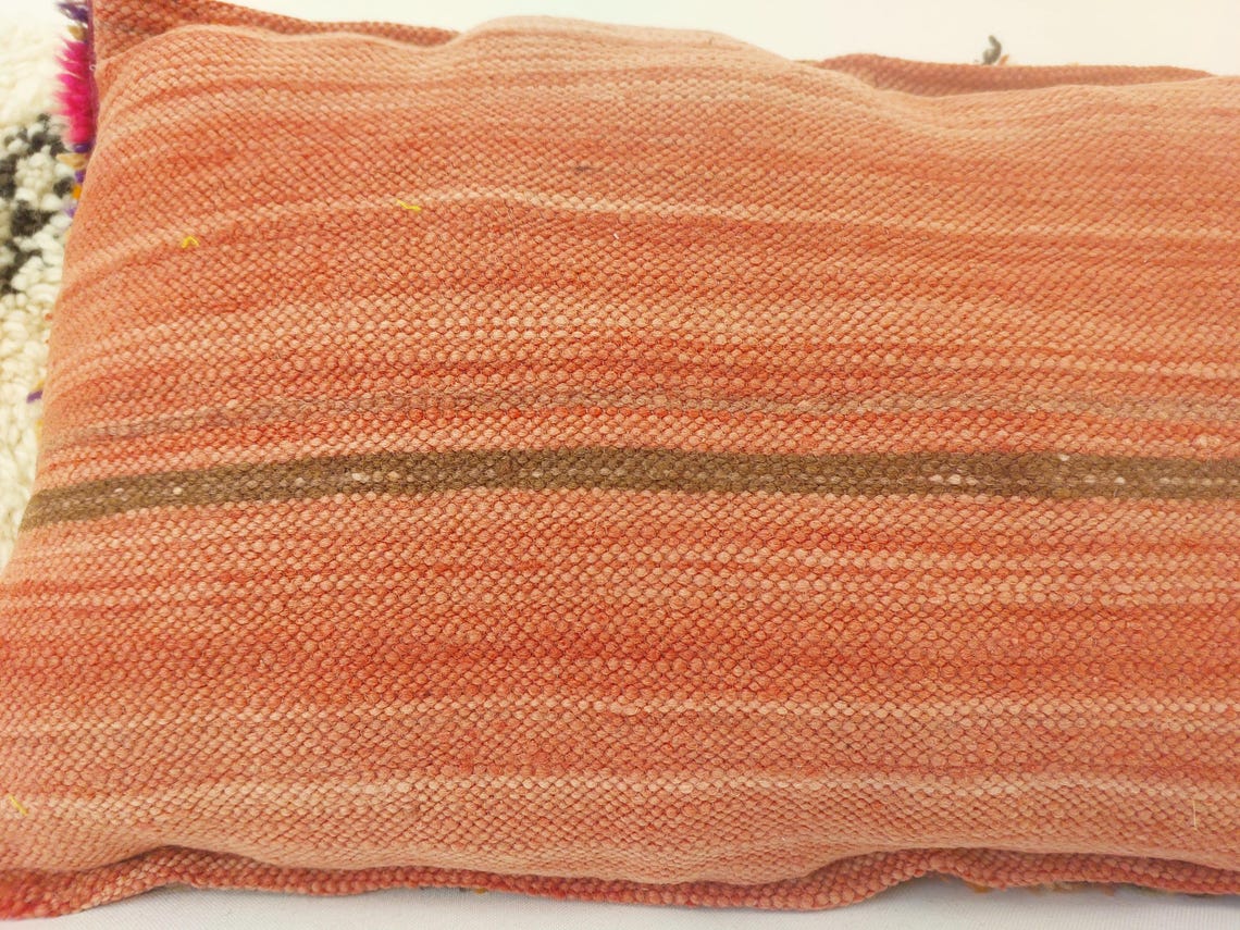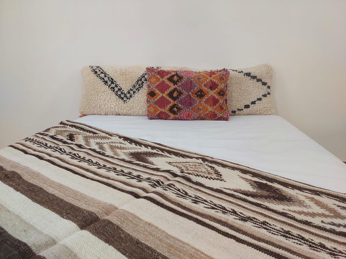 Authentic handmade Berber wool pillow, double-sided and originally crafted as a cushion, not cut from a vintage rug. Ships unstuffed with a small opening for easy stuffing and hand-stitched closure. Perfect for adding a Bohemian touch to sofas or beds.