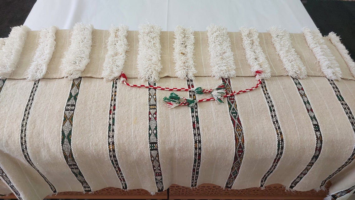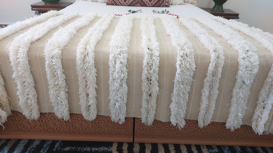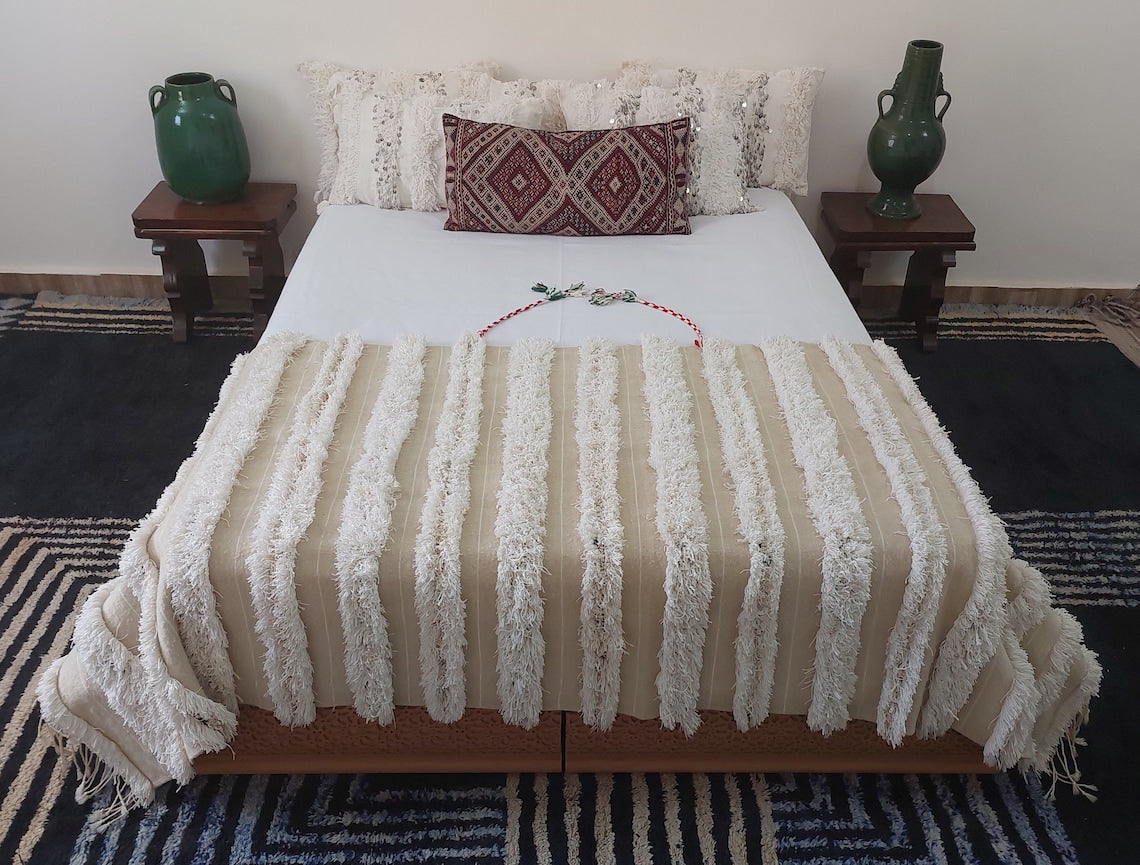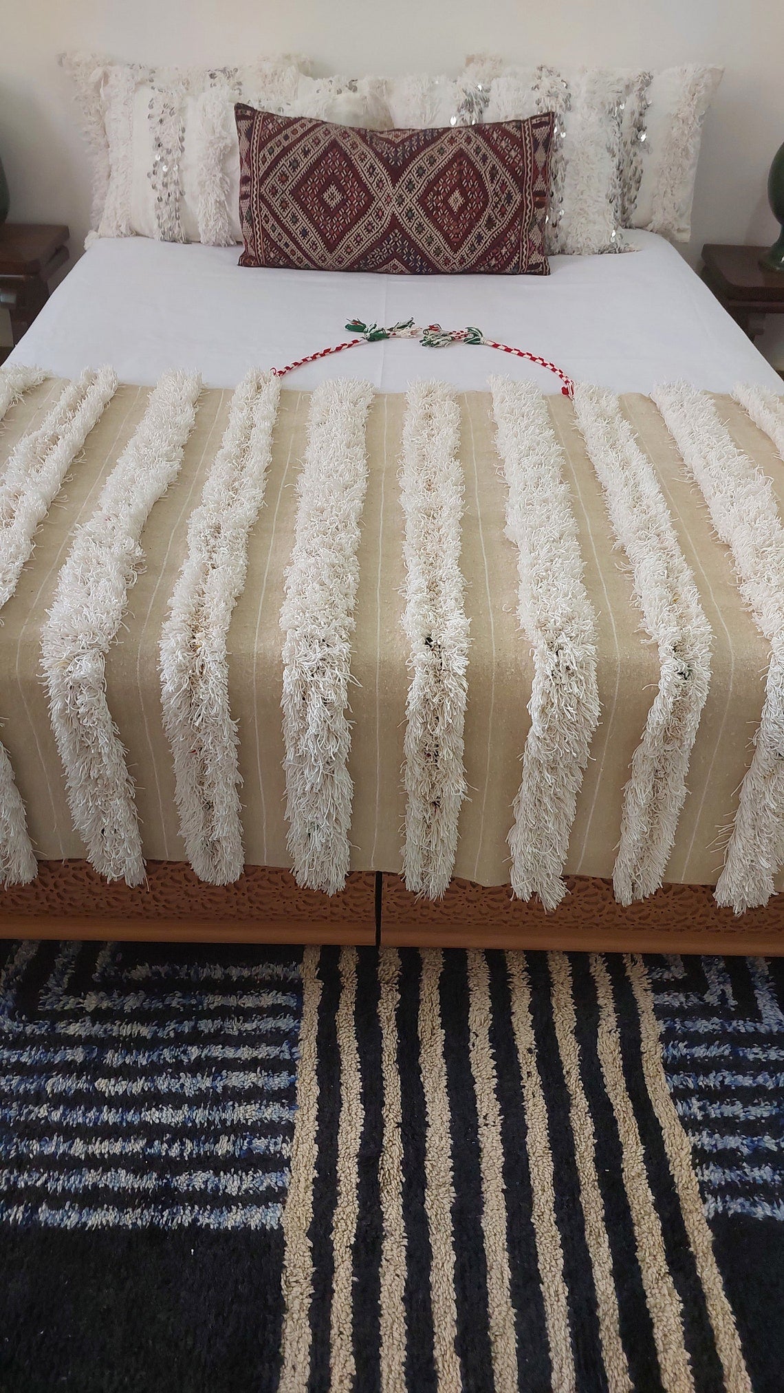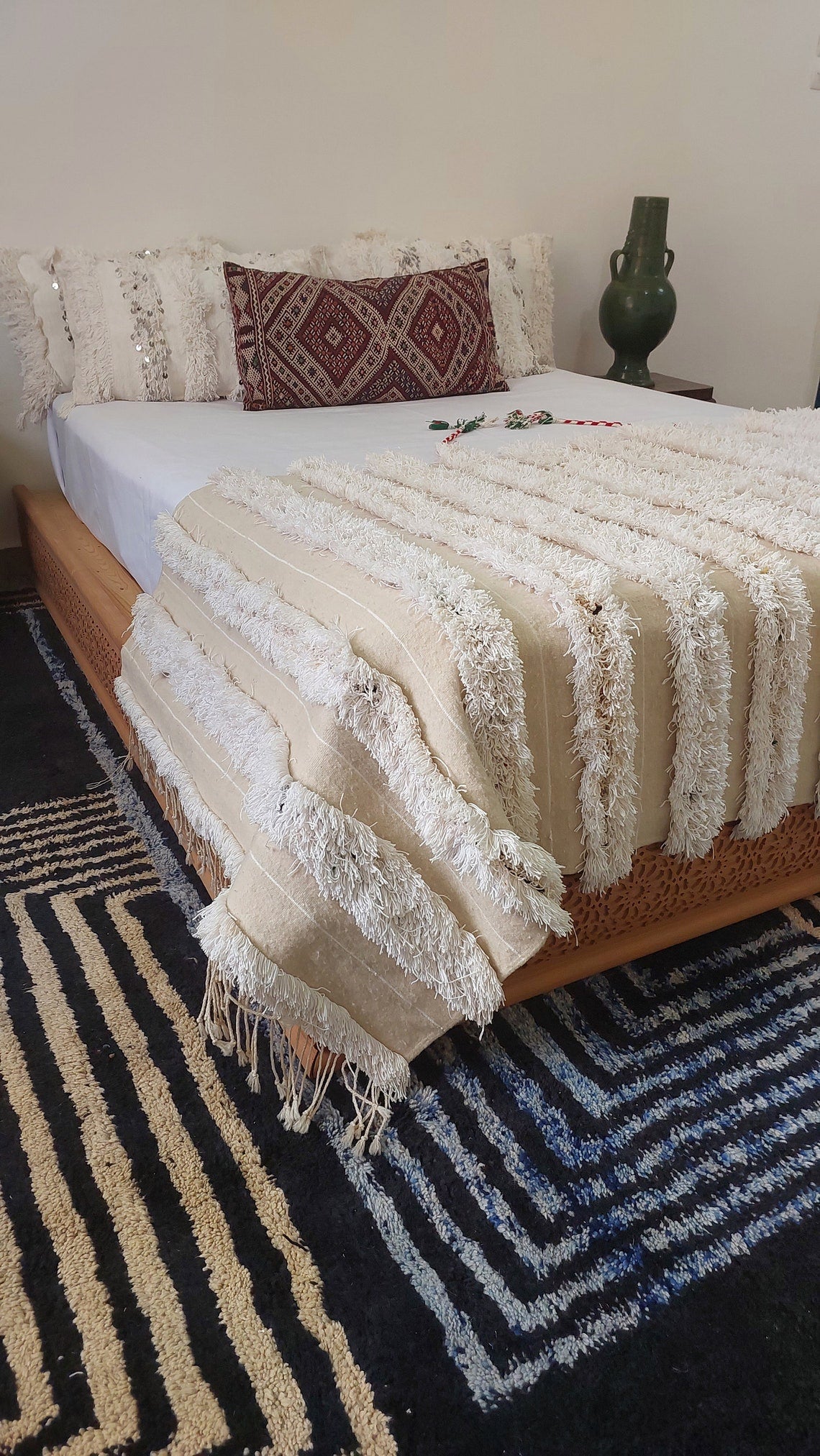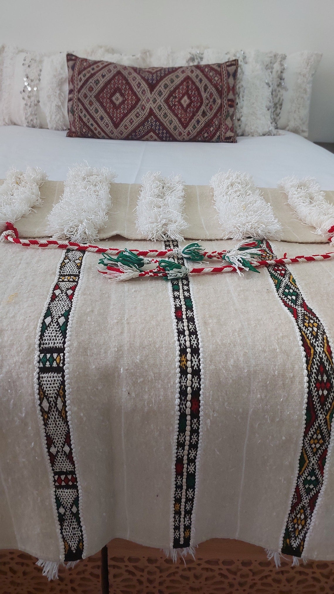 Authentic Moroccan Handira: Artisan-Crafted Wedding Blanket for Bohemian-Inspired Home Decor