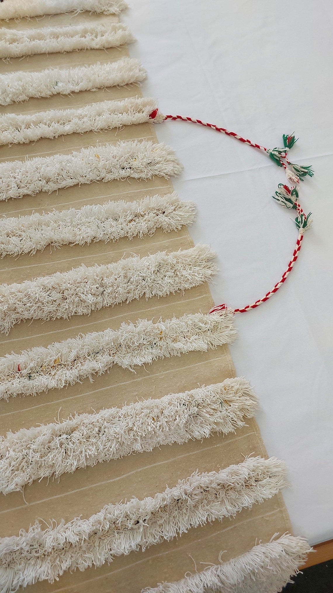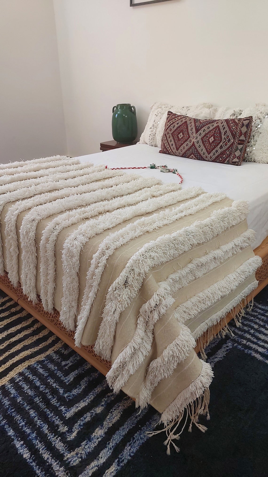 Vintage Moroccan Handira — Neutral Cotton & Wool Blend, Traditional Berber Wedding Blanket, Boho Chic Design
