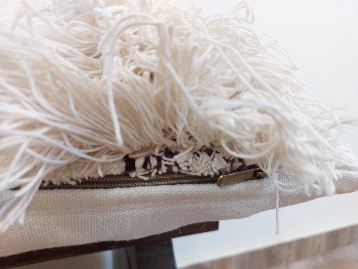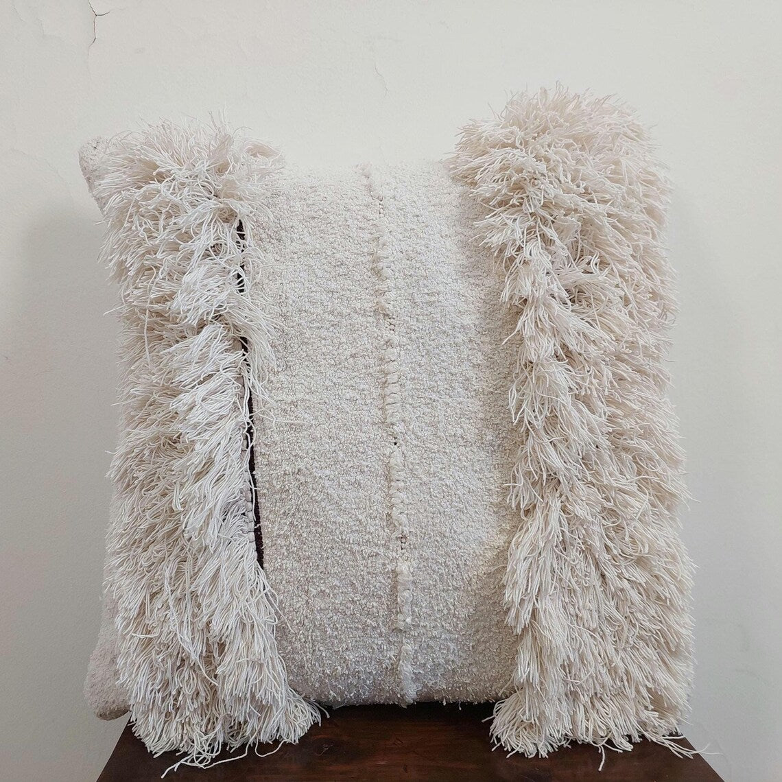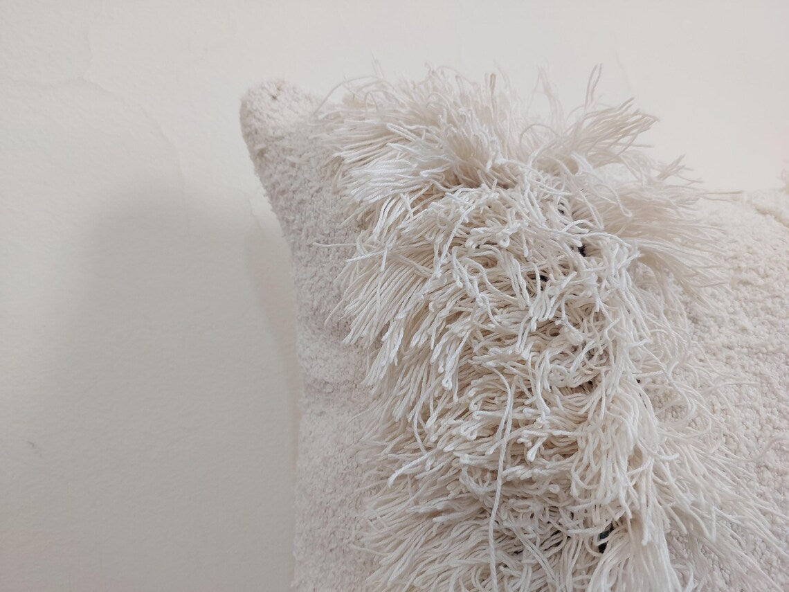 Authentic Vintage Berber Handira Wedding Blanket Pillow Case - Handmade Moroccan White Square Cushion