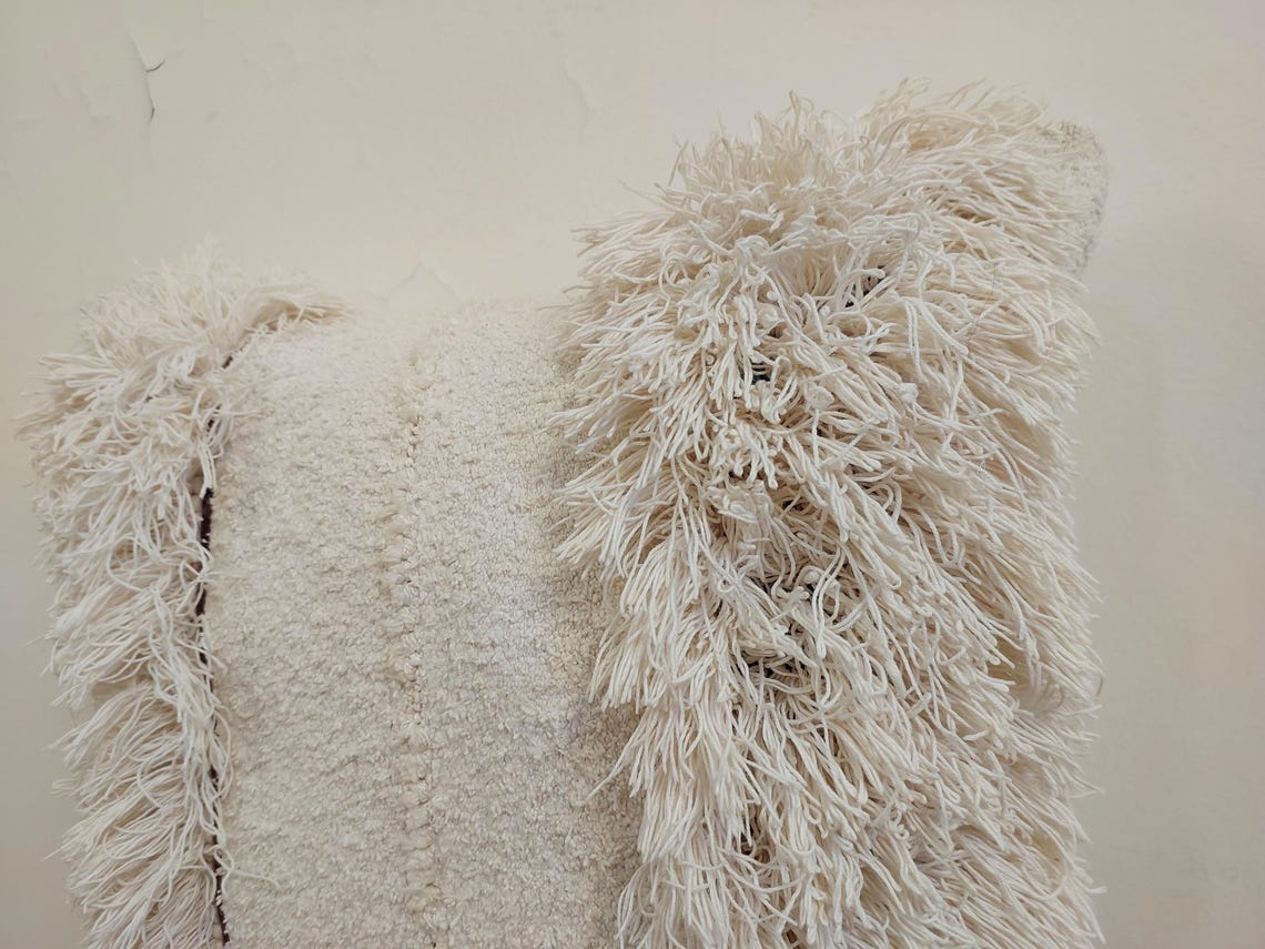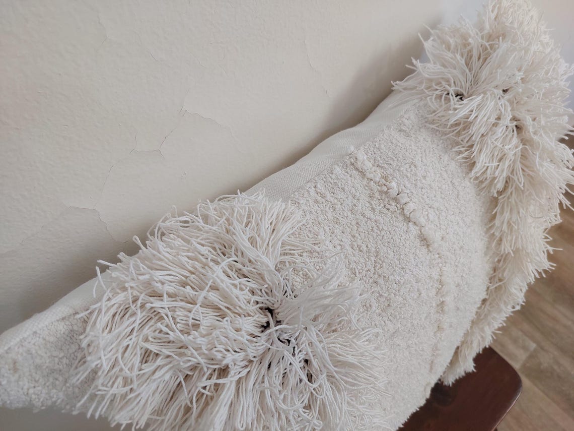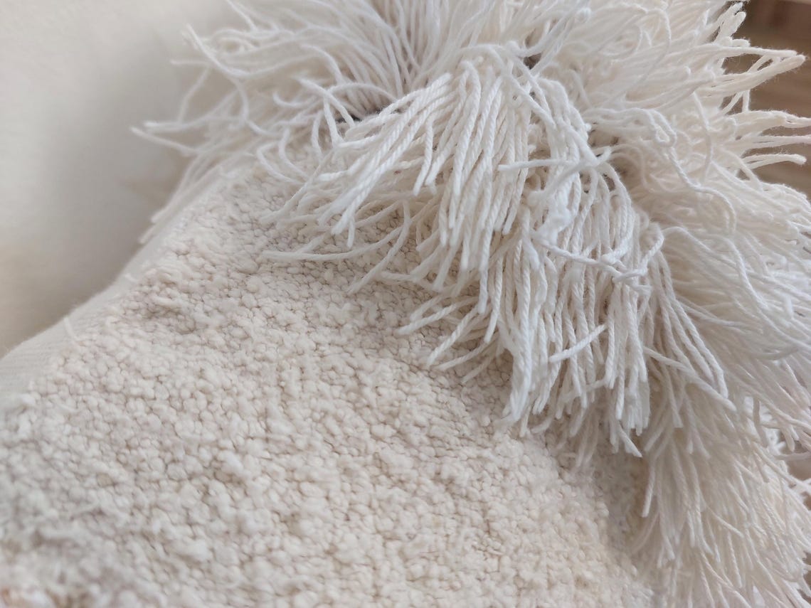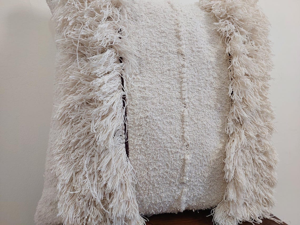 Authentic Vintage Berber Handira Wedding Blanket Pillow Case - Handmade Moroccan White Square Cushion