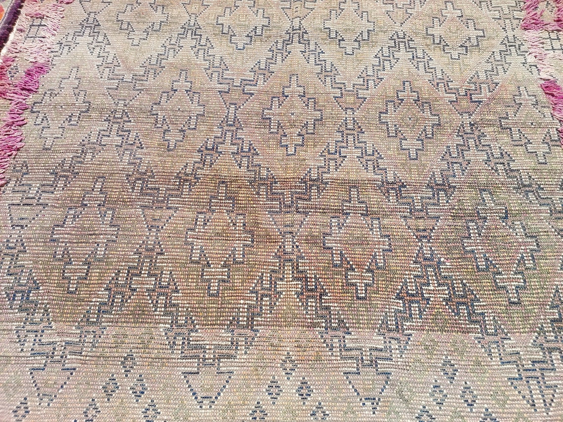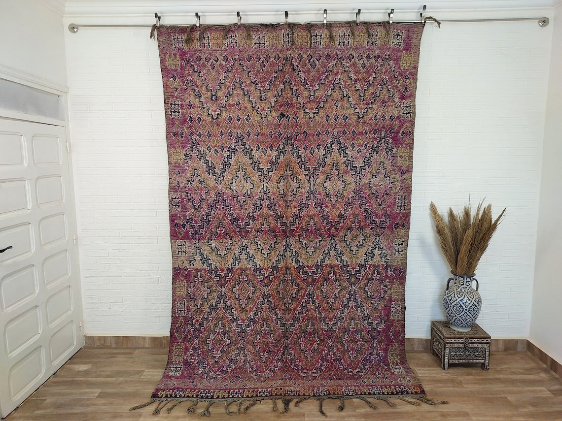A classic vintage Berber rug with bold geometric motifs, reversible design, and cultural storytelling woven into every fiber.